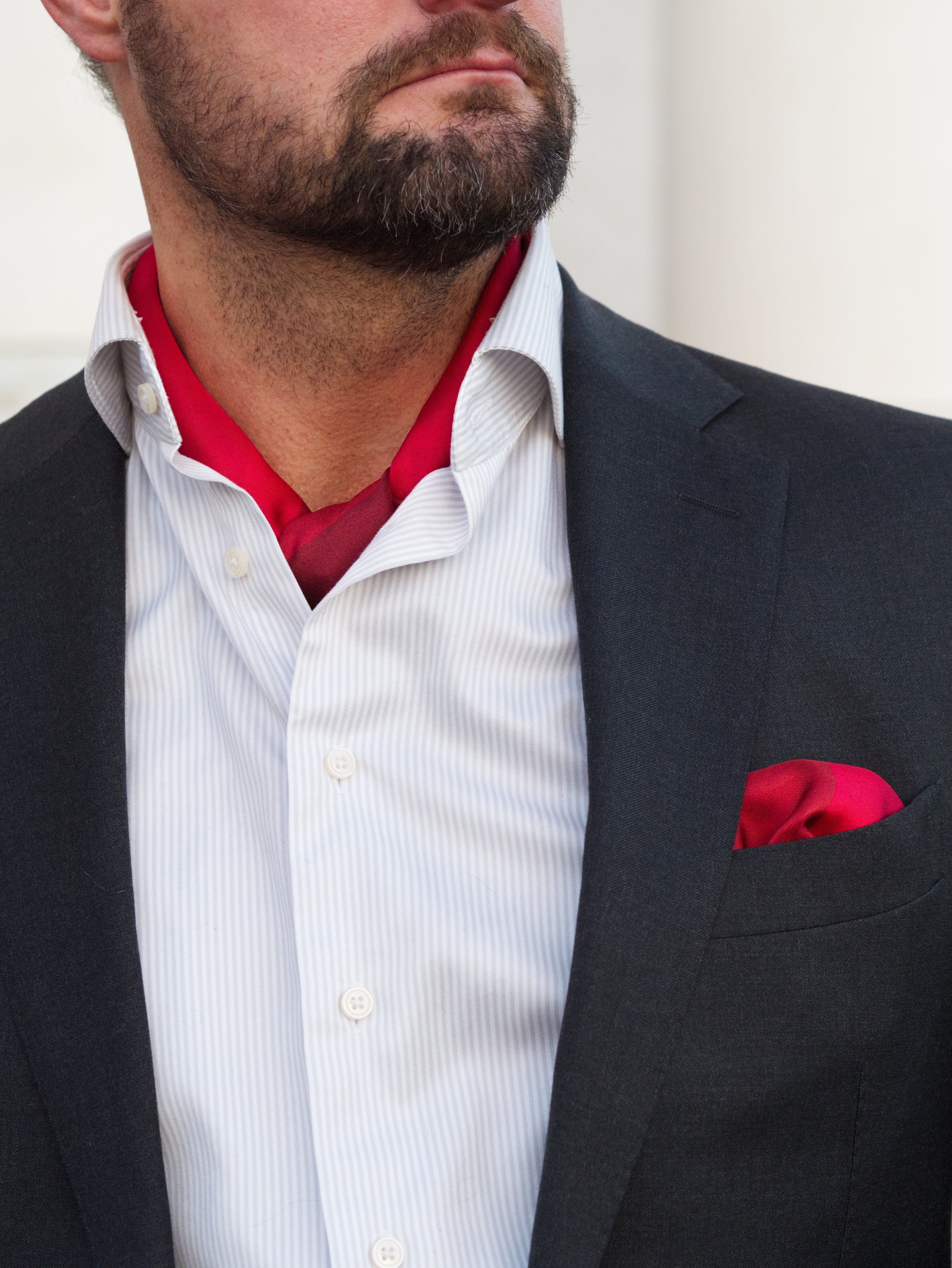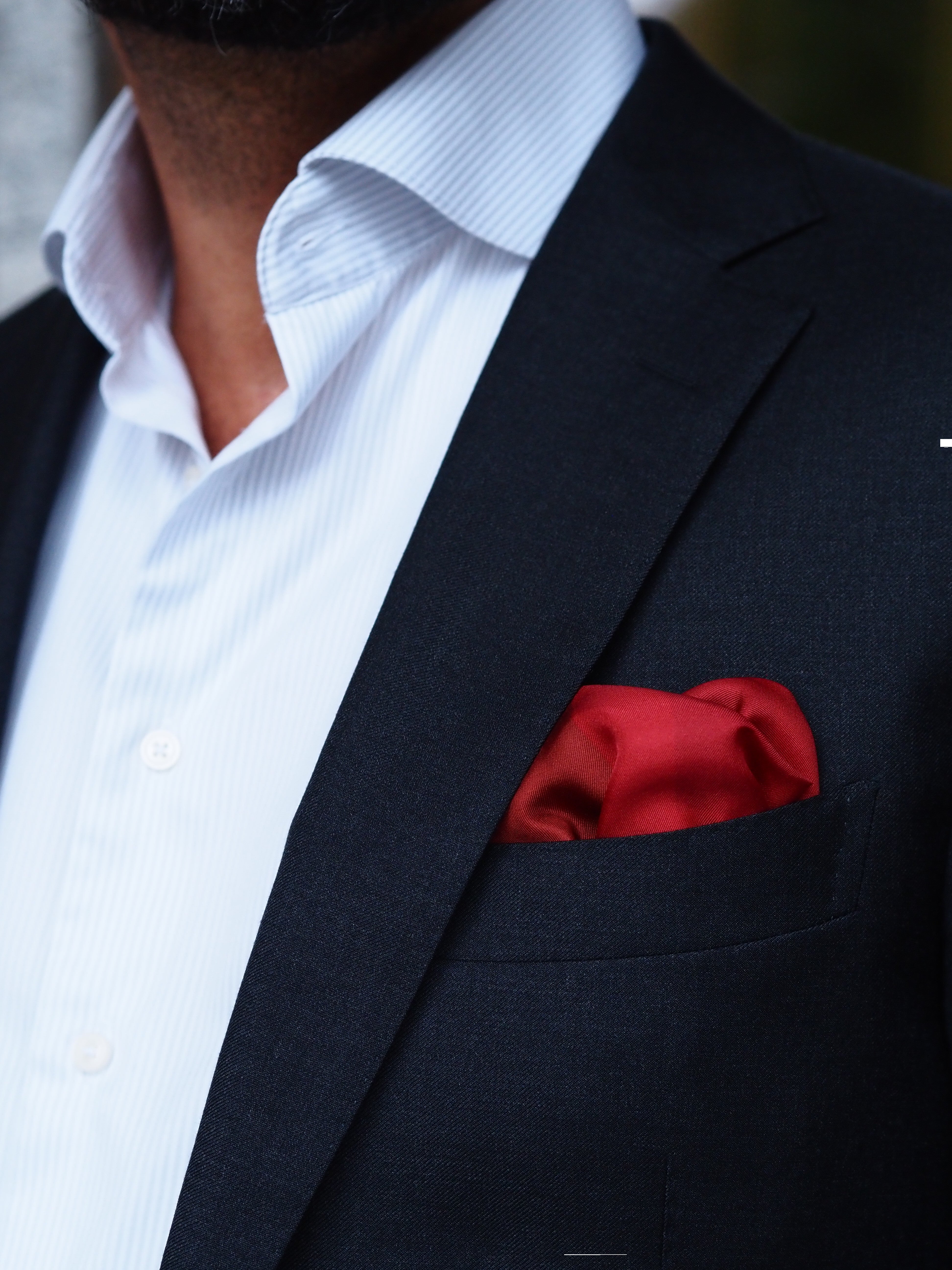 Punainen taskuliina silkkiä. Ylellisessä silkkitwillissä on helmeilevä hohde. 100% silkkiä. Valmistettu Italiassa.