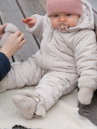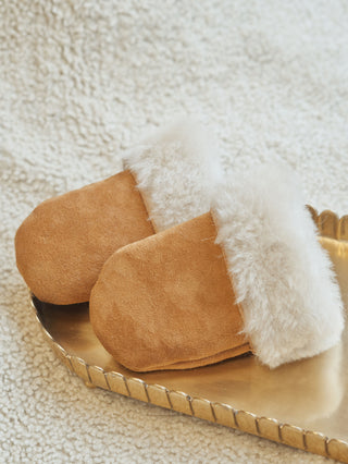 Käsinvalmistetut nahkatuotteet lapsille. Turkisrukkaset ja turkistossut pitävät pienet raajat lämpiminä tyylikkäästi.