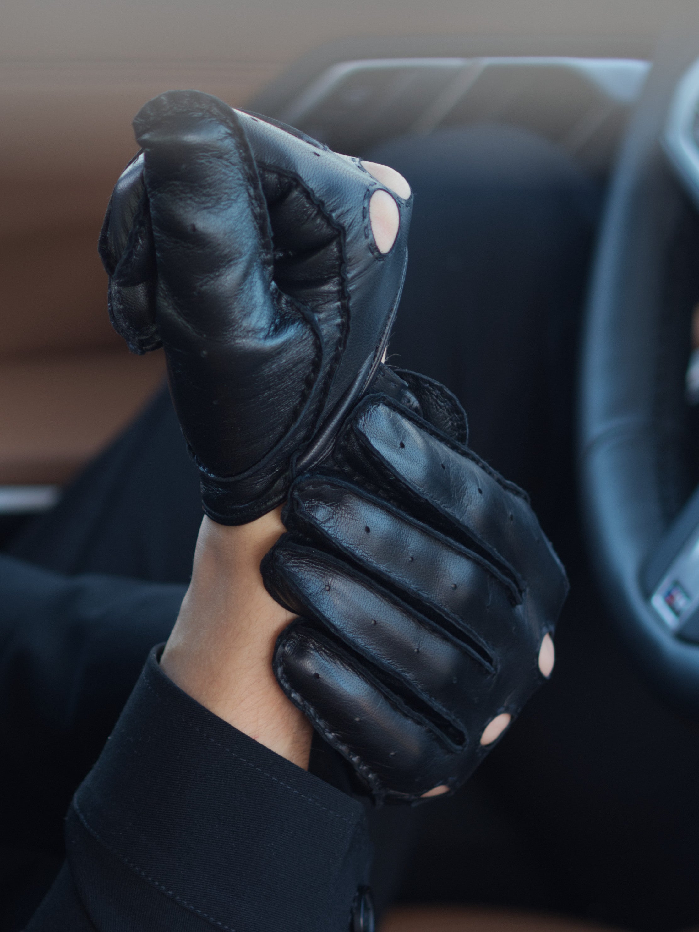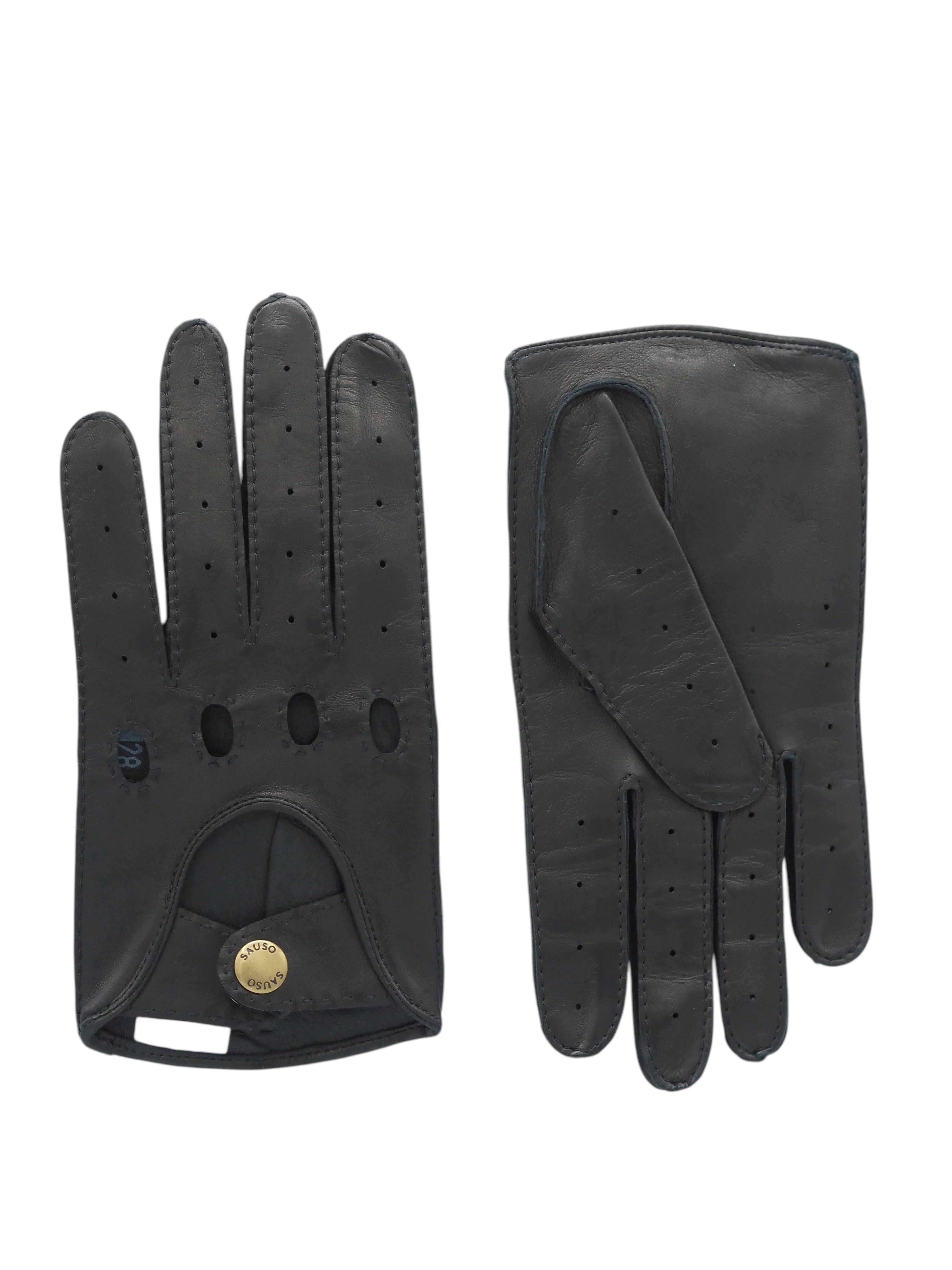 The classic design of the driving glove inherently includes knuckle openings. The gloves are unlined, making them feel very light on the hand. The thin leather is soft and breathable, providing a good grip on the steering wheel. Additionally, the leather has small decorative perforations that further enhance the glove's breathability.