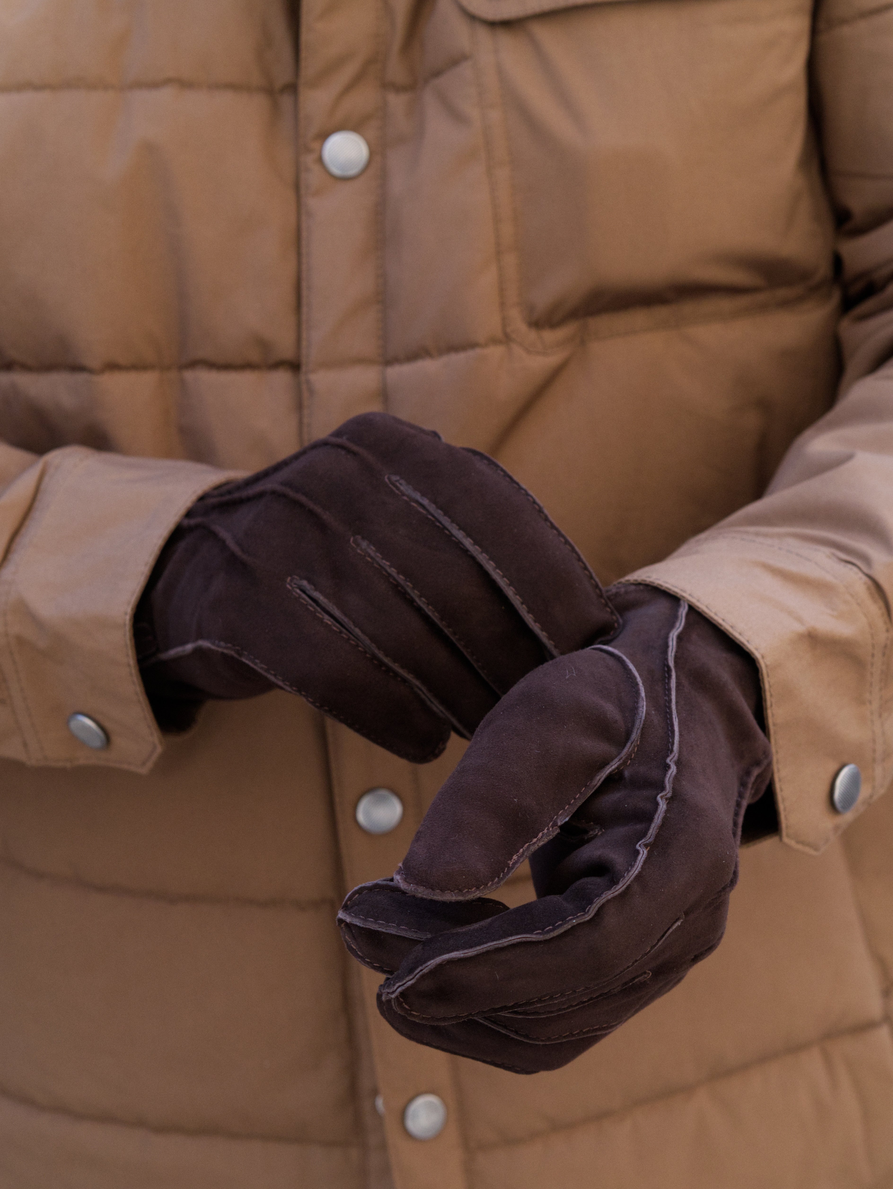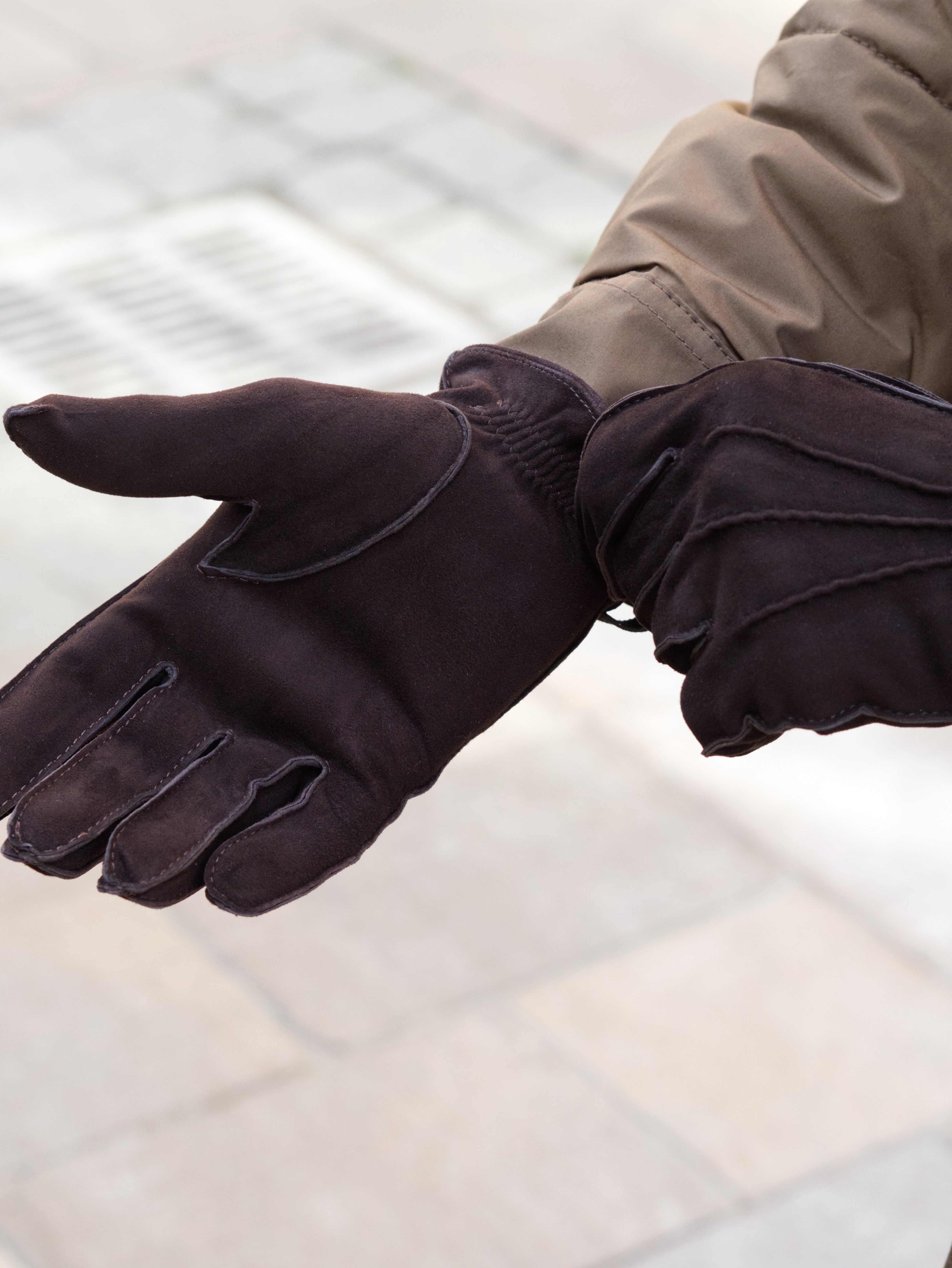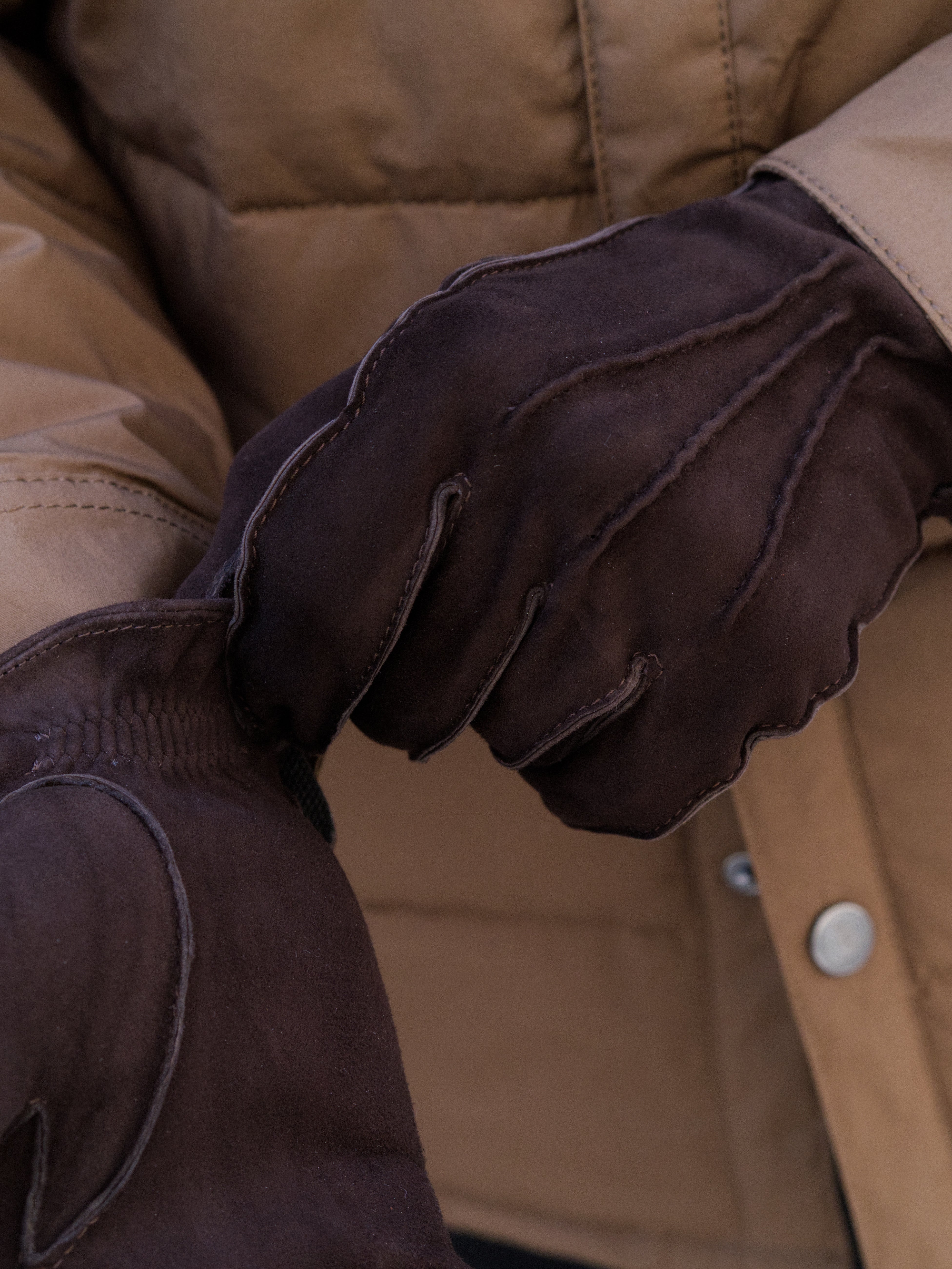 Men's brown suede gloves. Handcrafted gloves suitable for year-round use, but especially for the variable weather of spring and autumn.