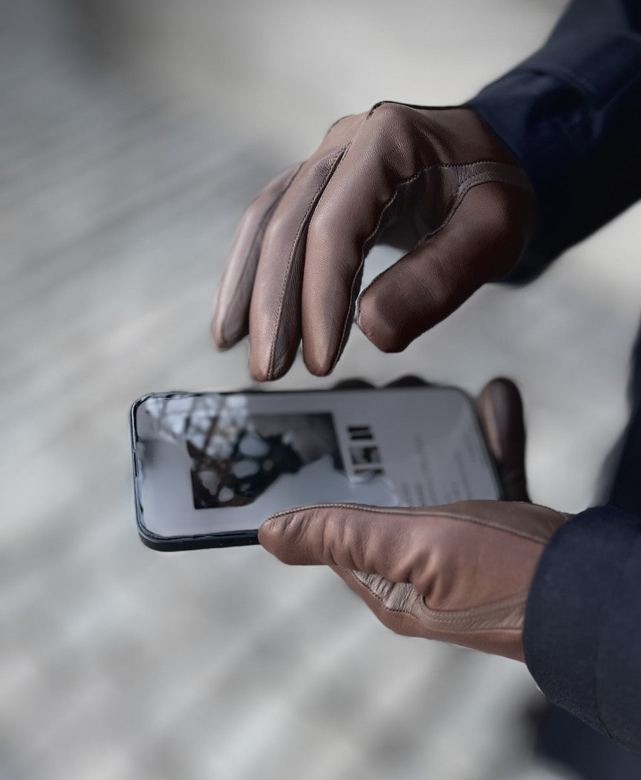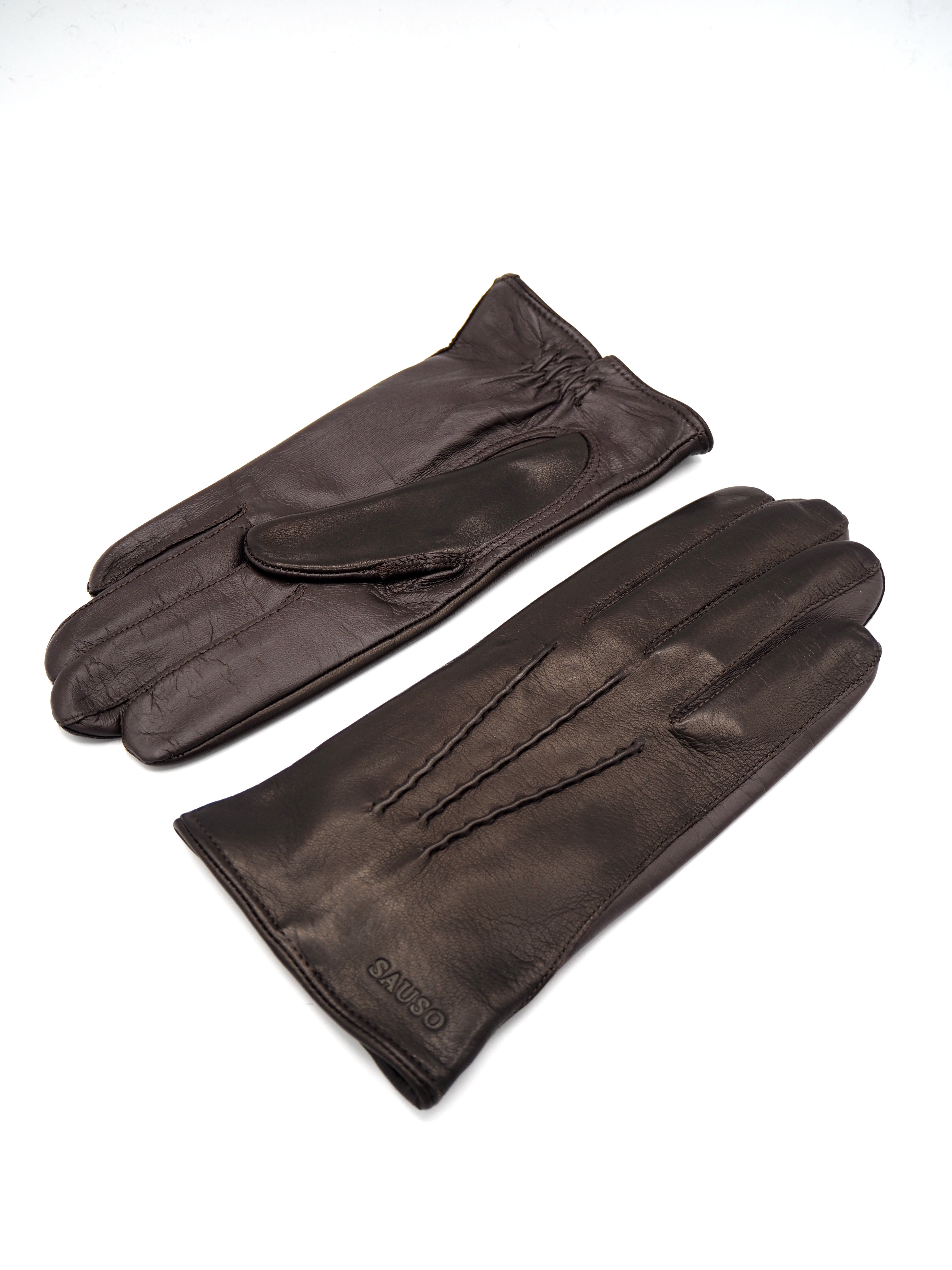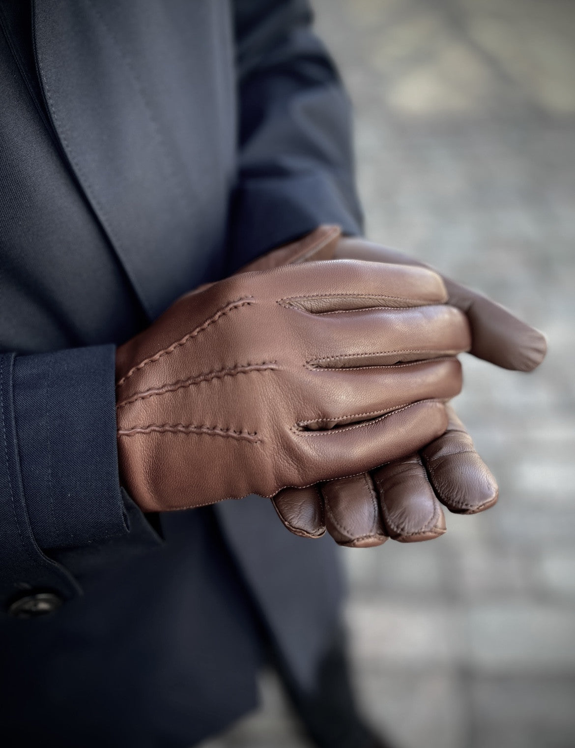 Men's brown leather glove with silk lining. The classic glove with three hand-stitched decorative seams is timeless.