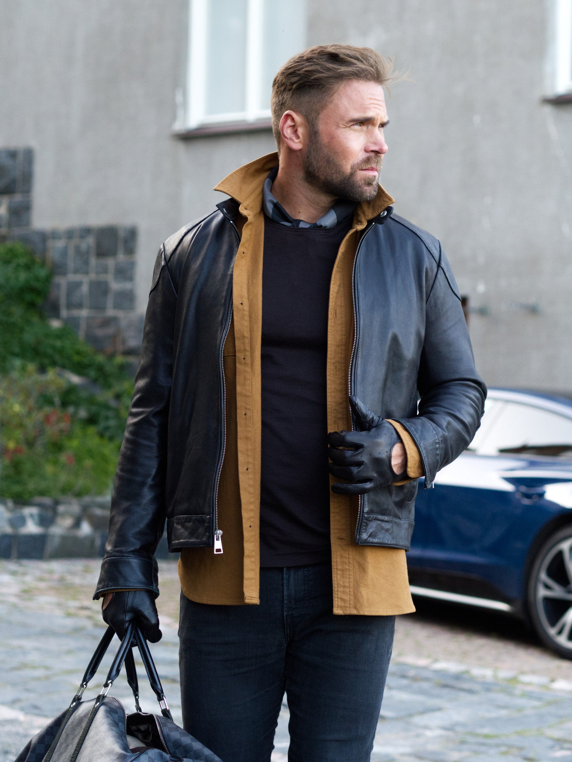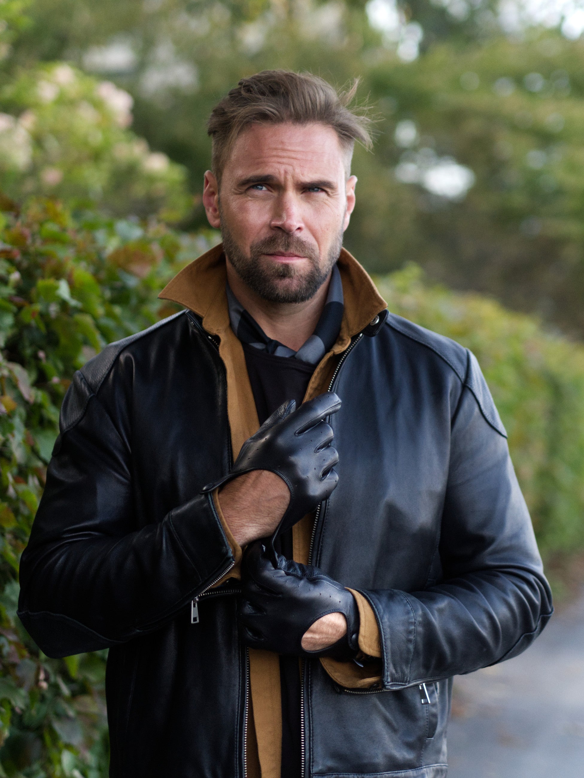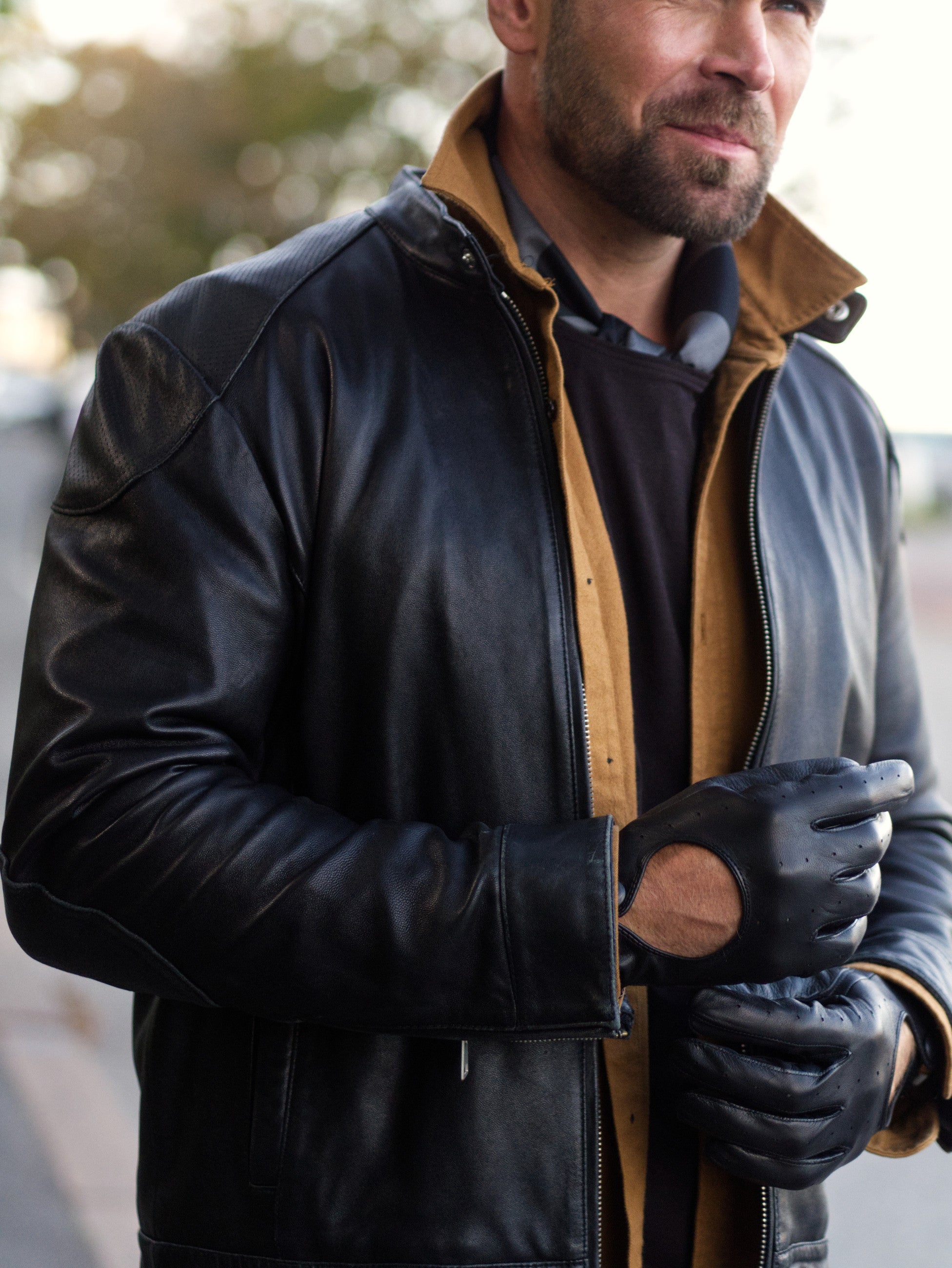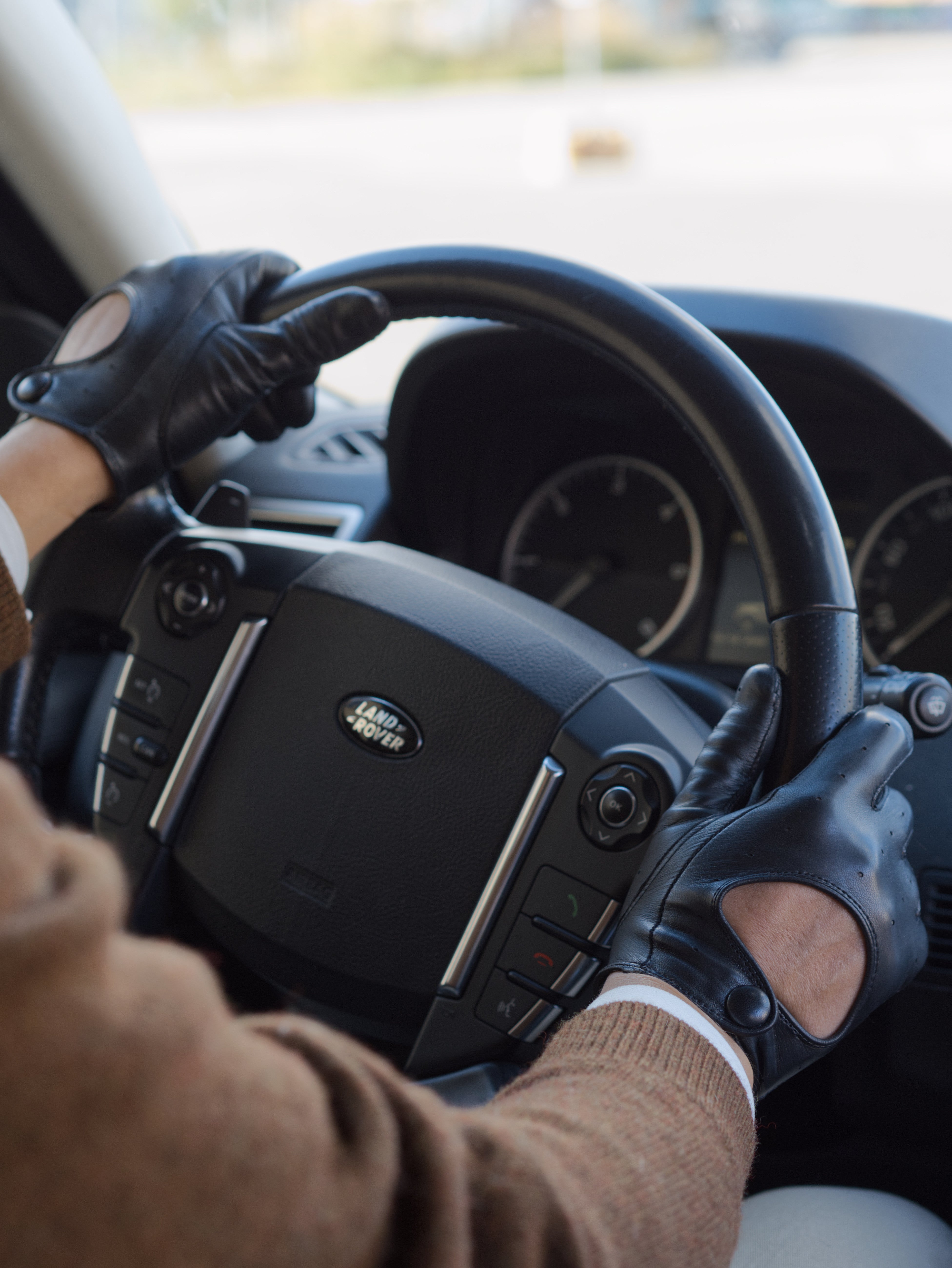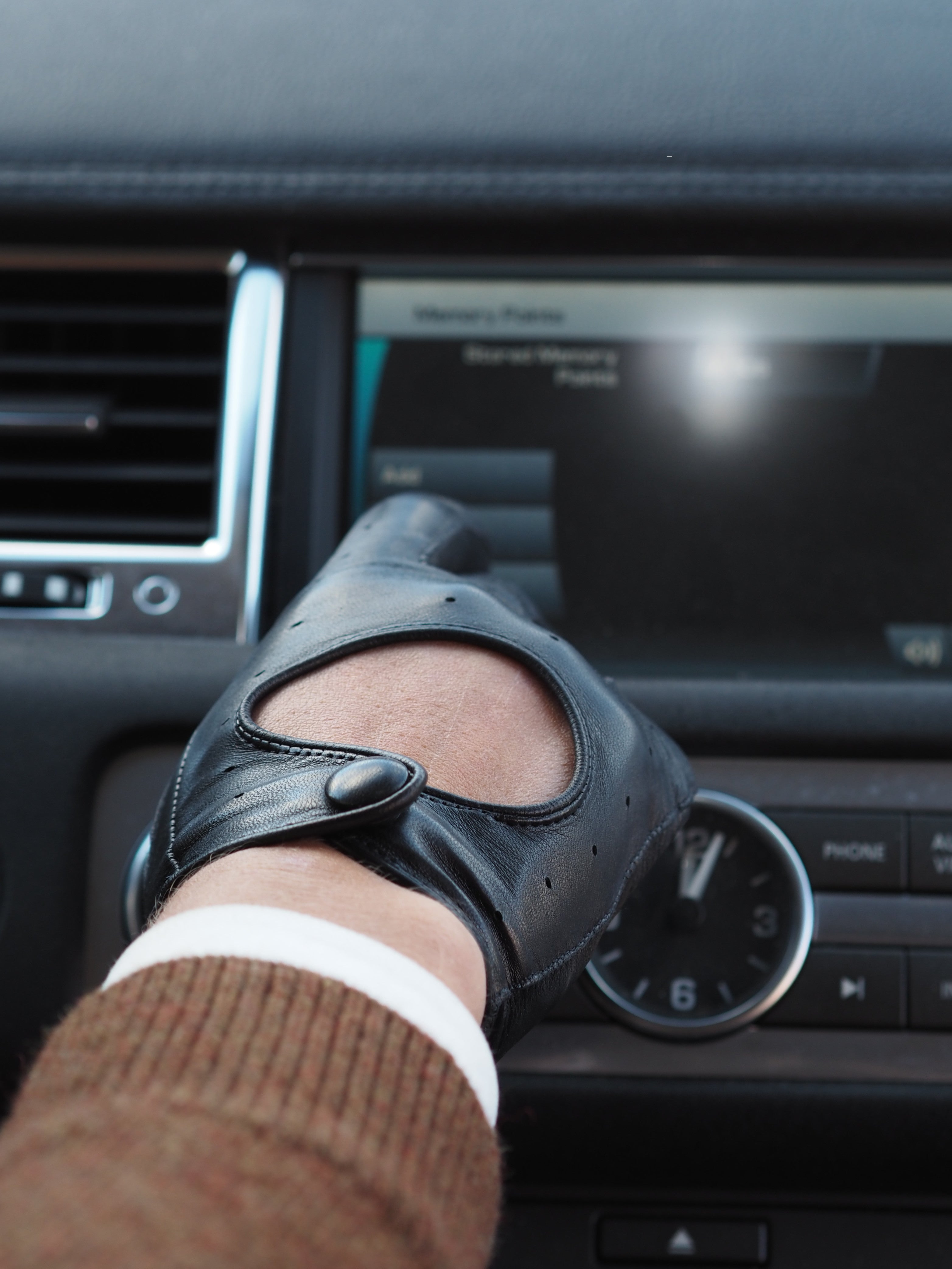 Erkki on klassinen ajokäsine modernilla otteella. Kämmenpuolen nahka on varustettu kosketusnäyttöominaisuudella.