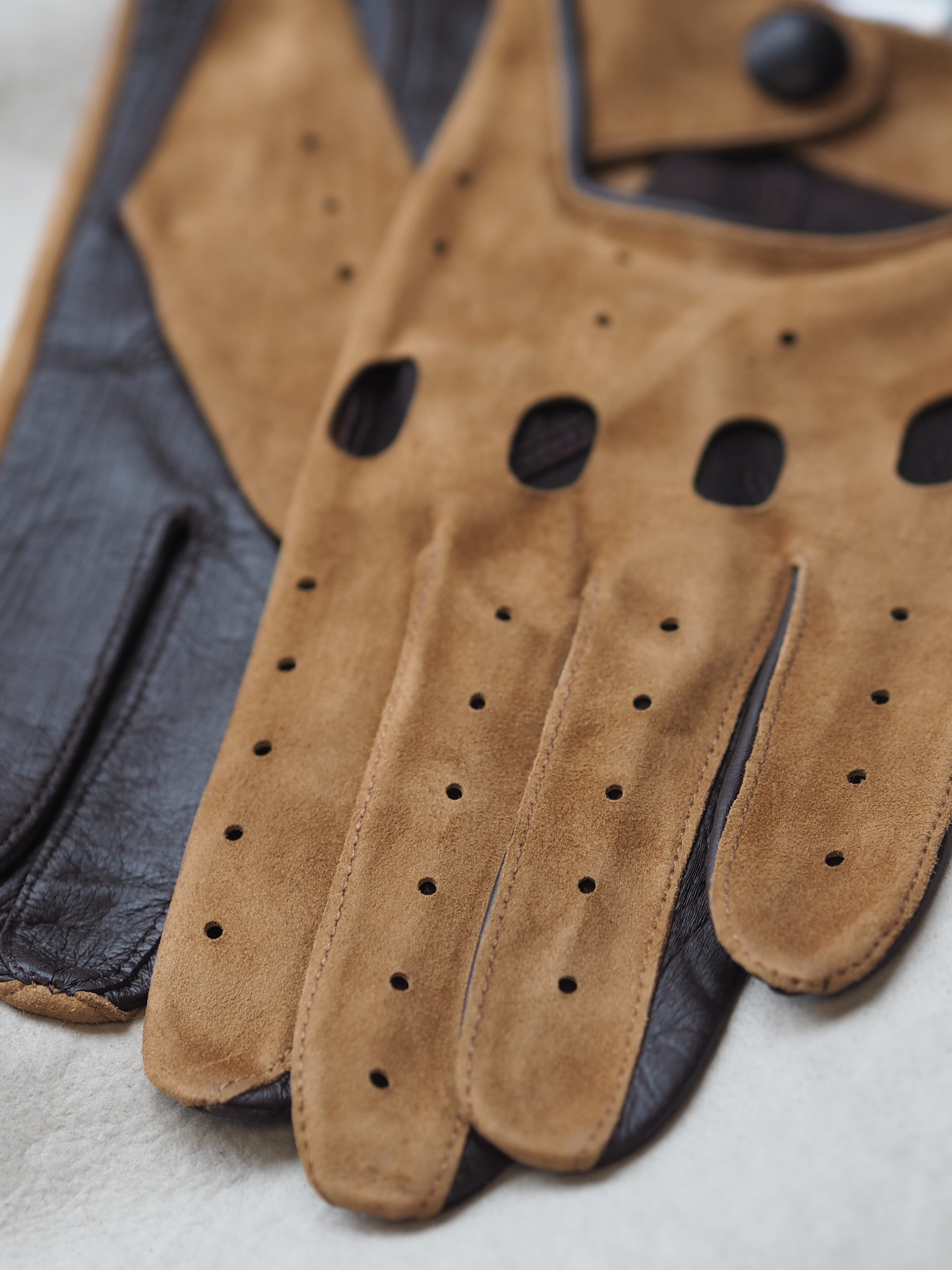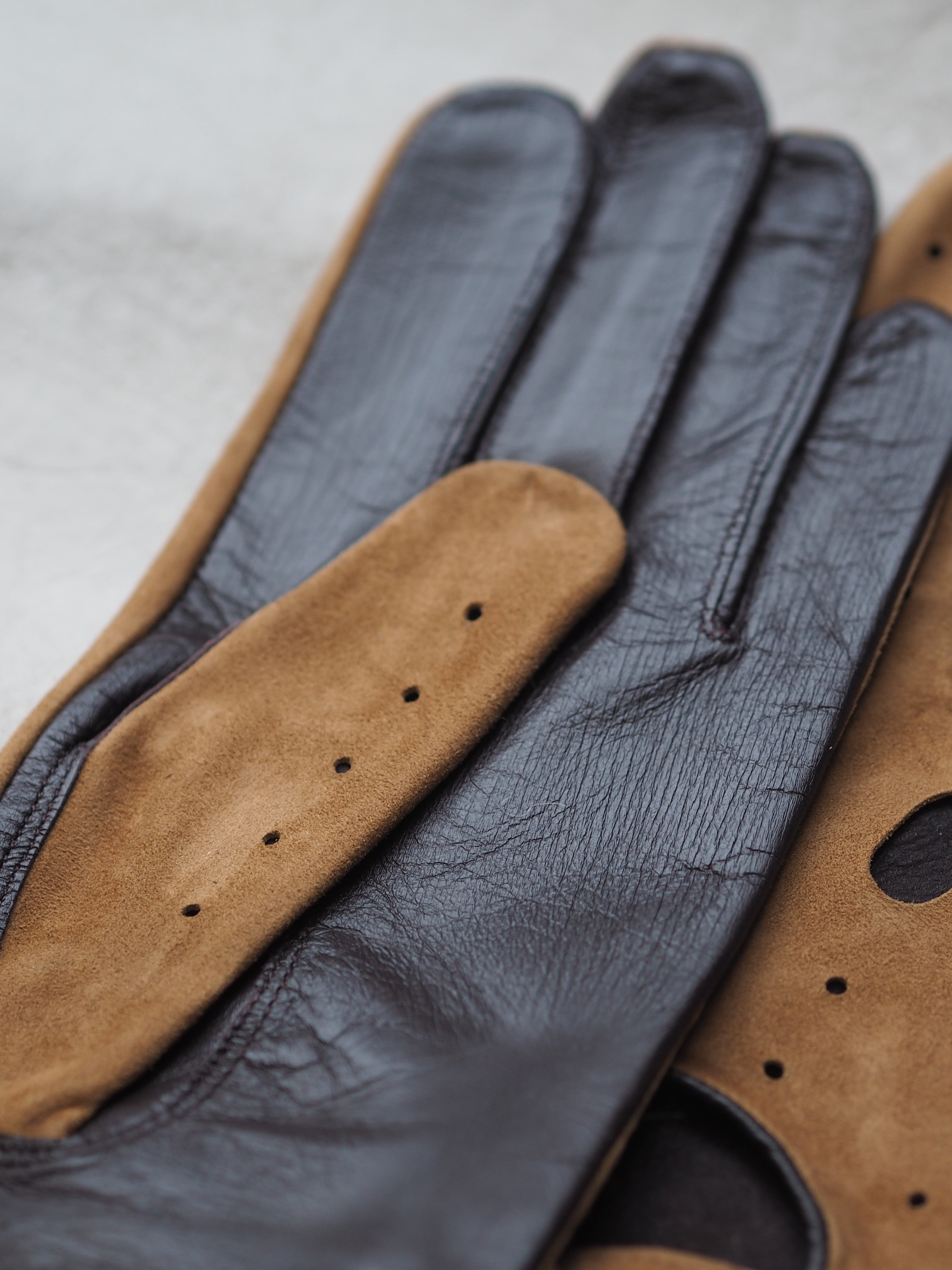 Ethiopian karakul sheep leather is soft and flexible, molding well to the wearer\'s hand. The unlined glove feels like a second skin, making it especially suitable as a driving glove. Stylish perforations increase breathability and add beautiful decoration to the glove. Traditional driving gloves include knuckle holes.
