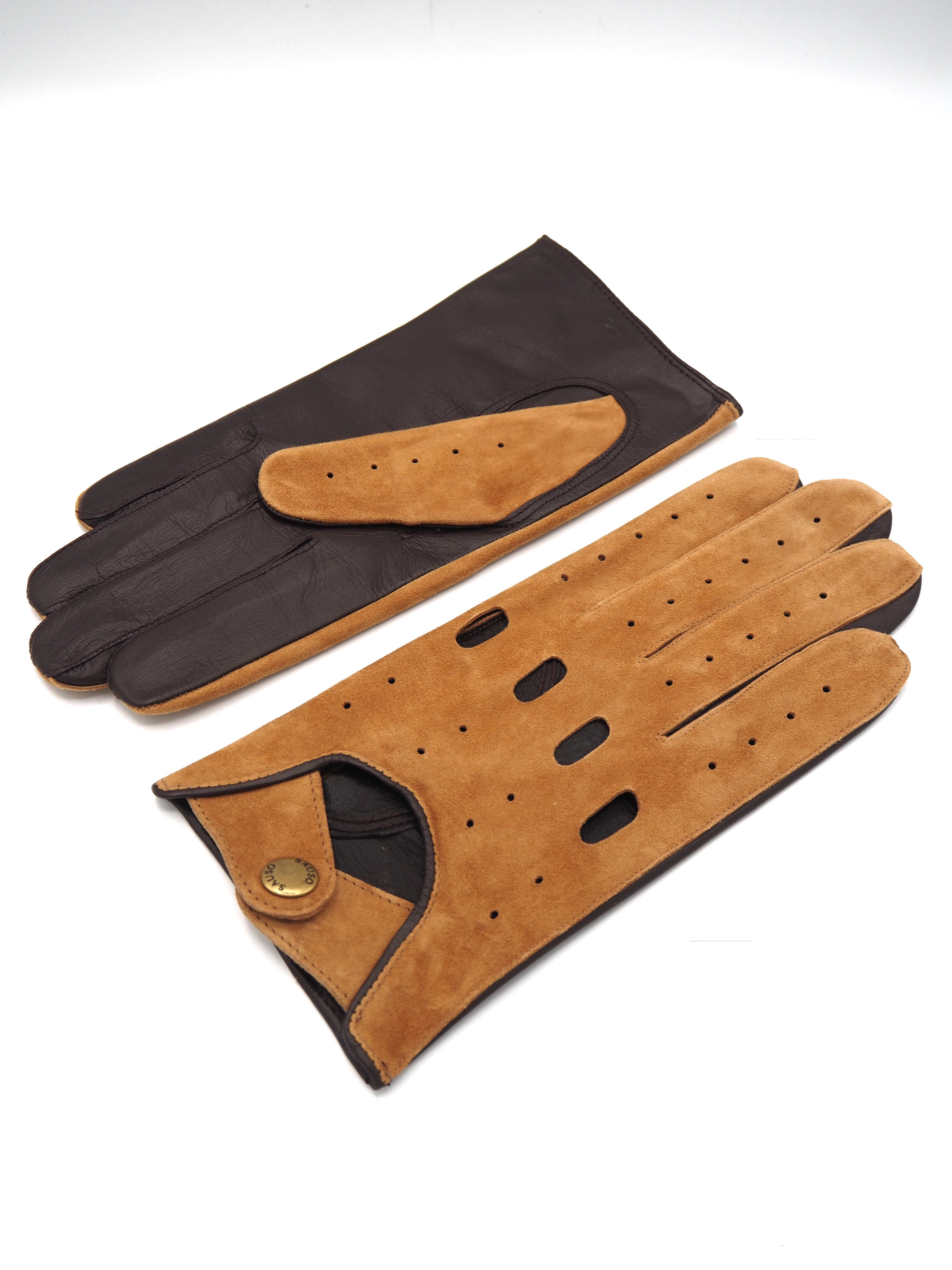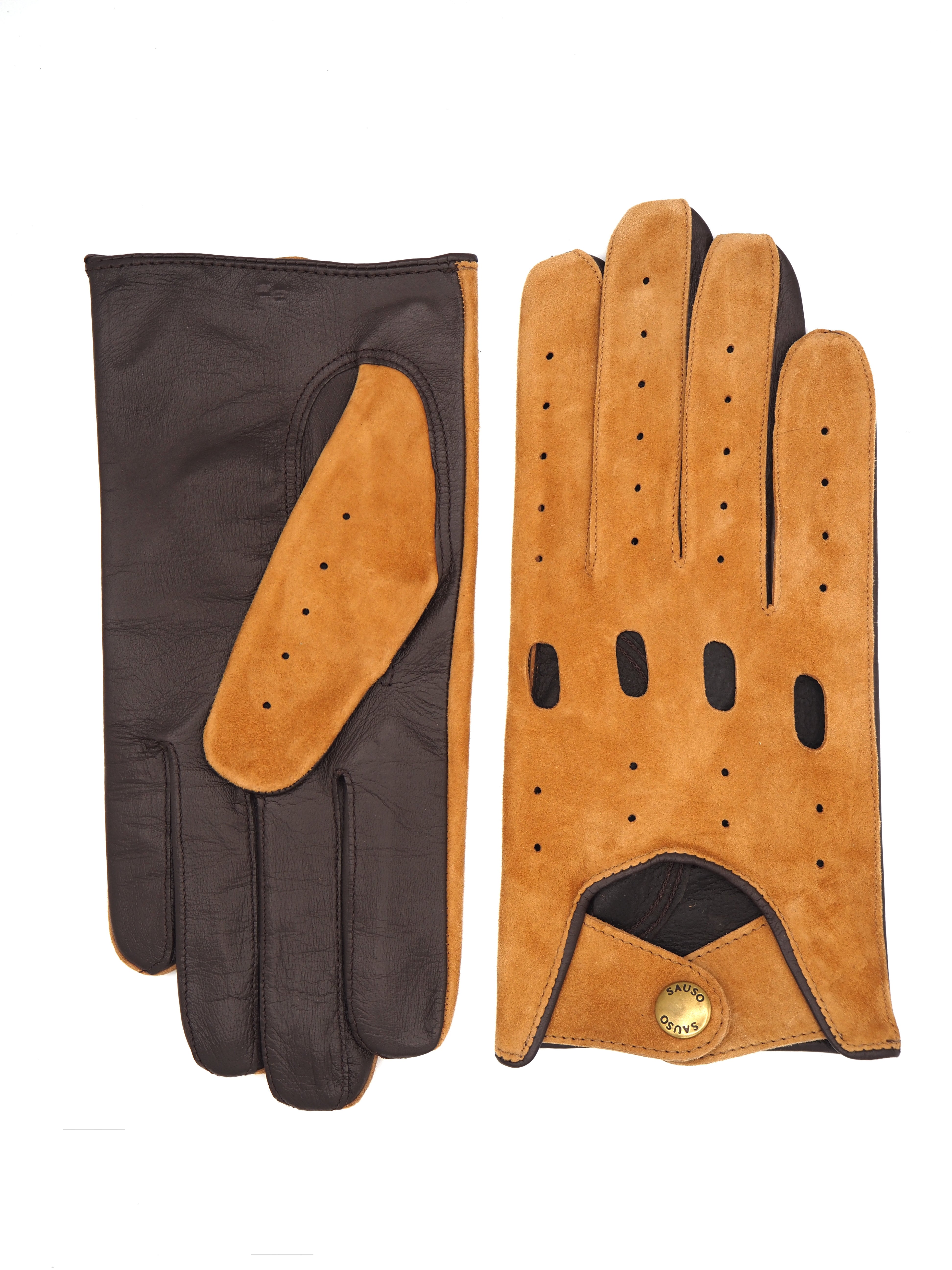 The back of the gloves is made of stylish and soft camel brown suede leather. The combination of suede and top-grain leather gives the gloves a distinctive appearance. Thanks to the two different types of leather, the gloves suit a variety of styles.