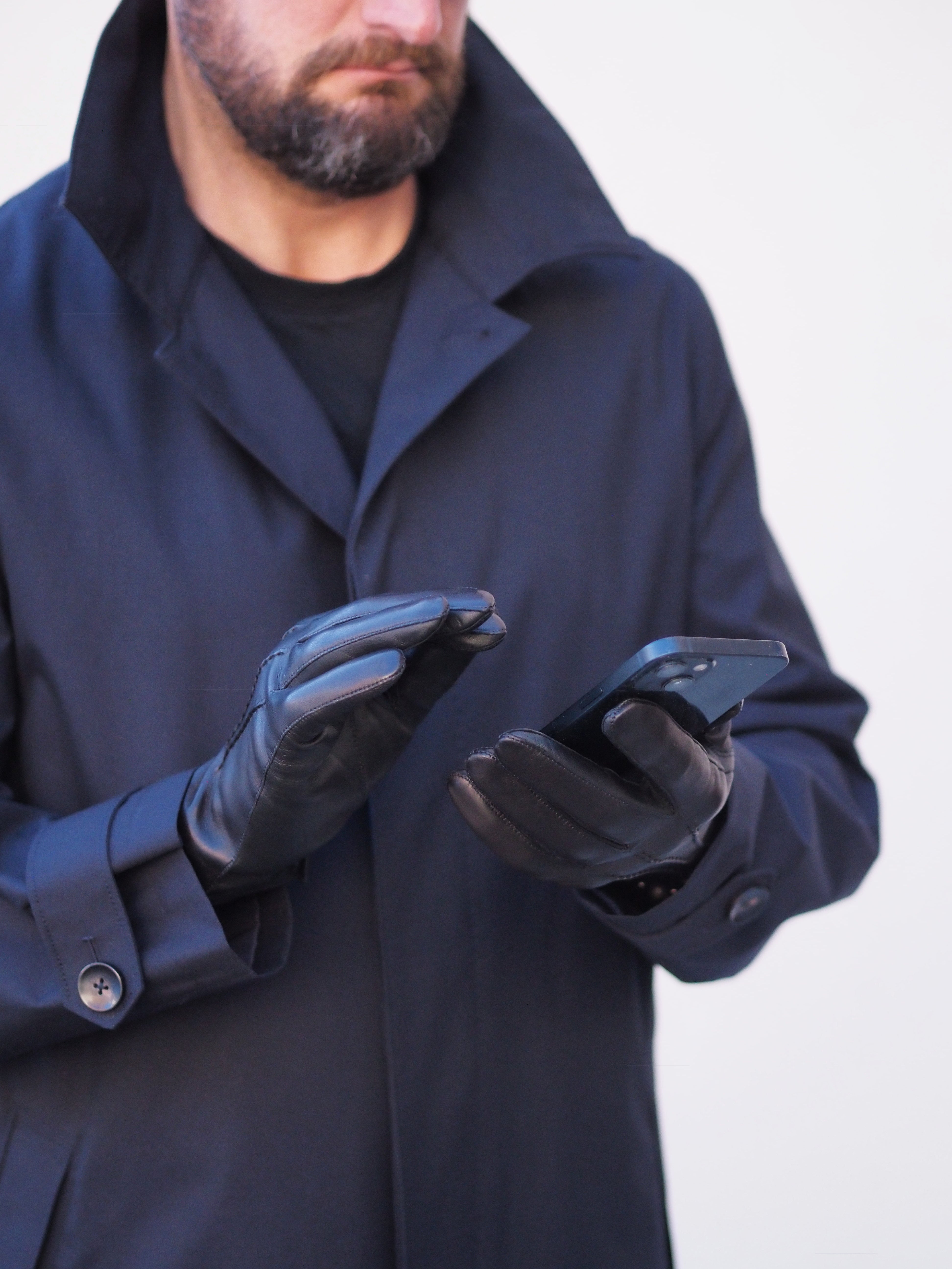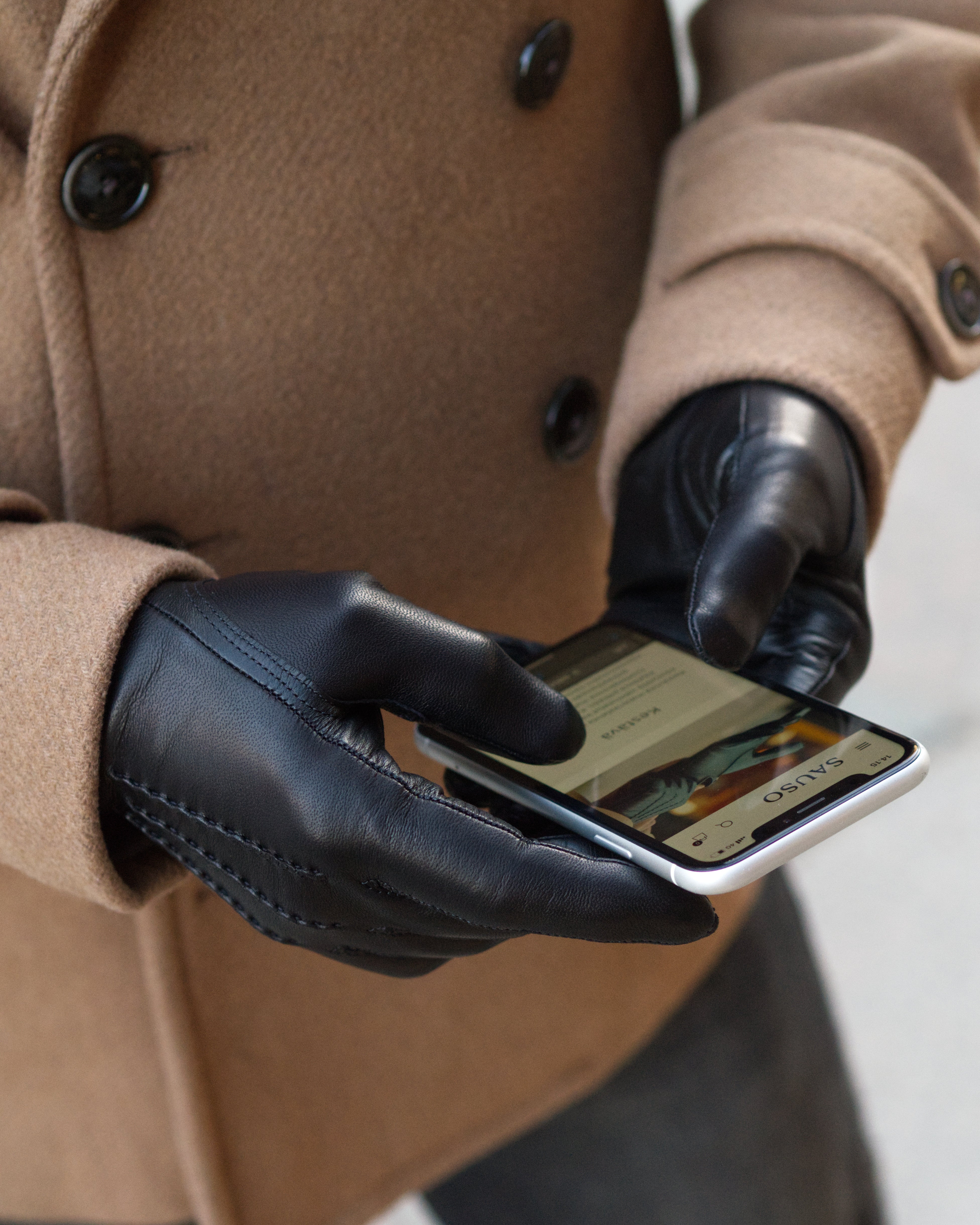 The glove features a practical touchscreen function on the palm side. The touchscreen function is based on the electrical conductivity of the leather. The leather is treated so that the skin's electricity passes through it. The treatment makes the leather slightly matte. In this glove, touchscreen leather is used across the entire palm.