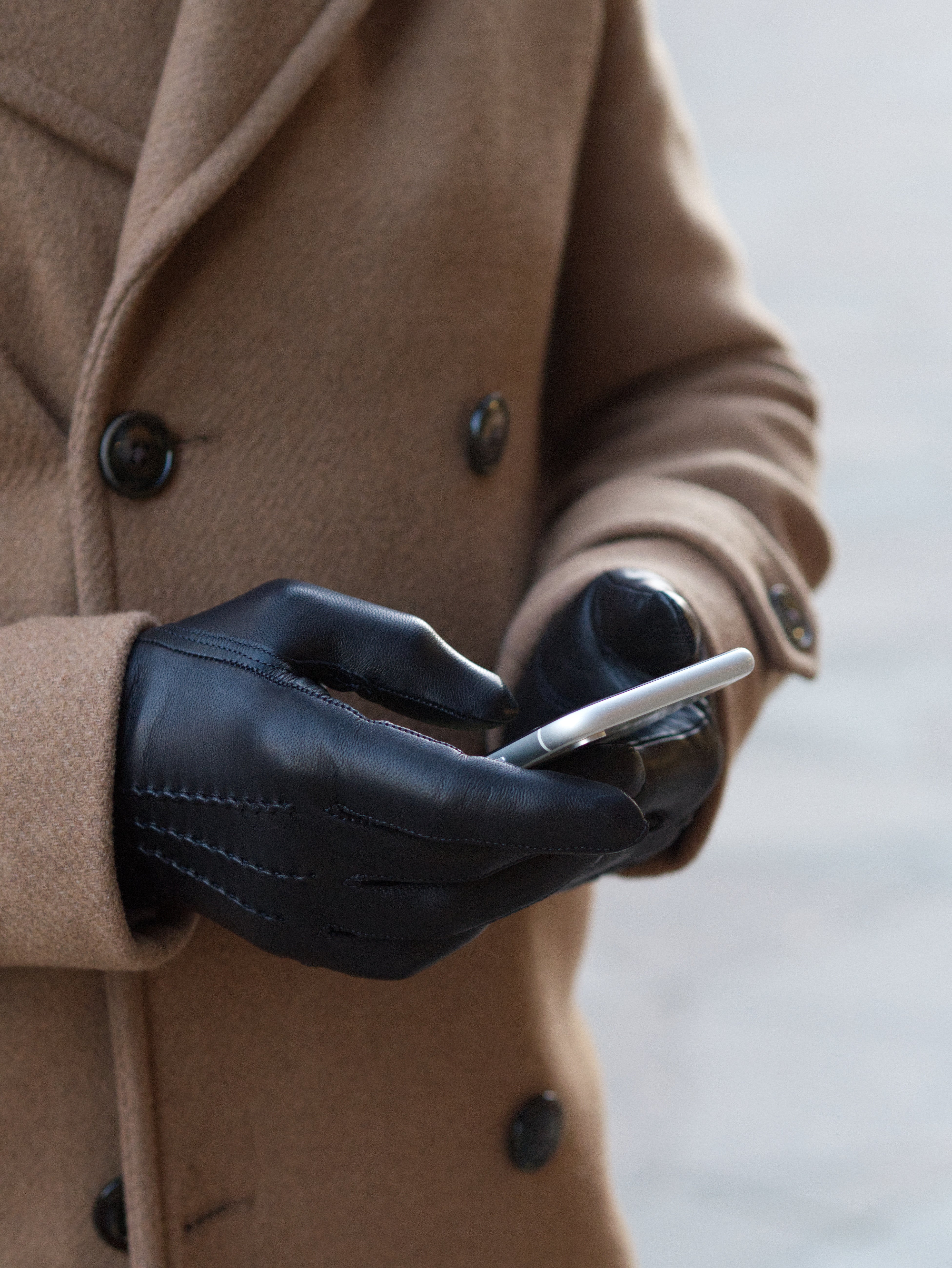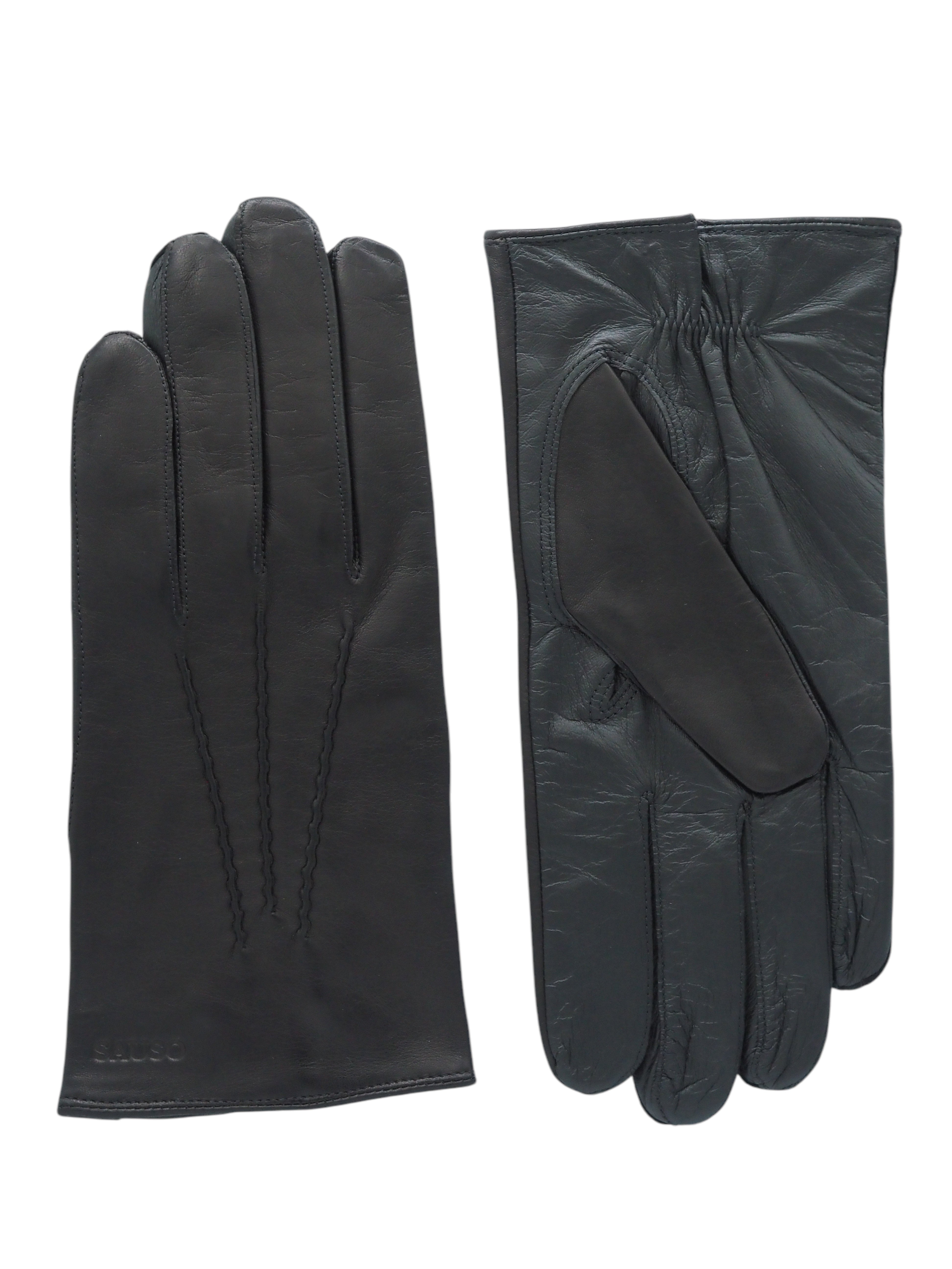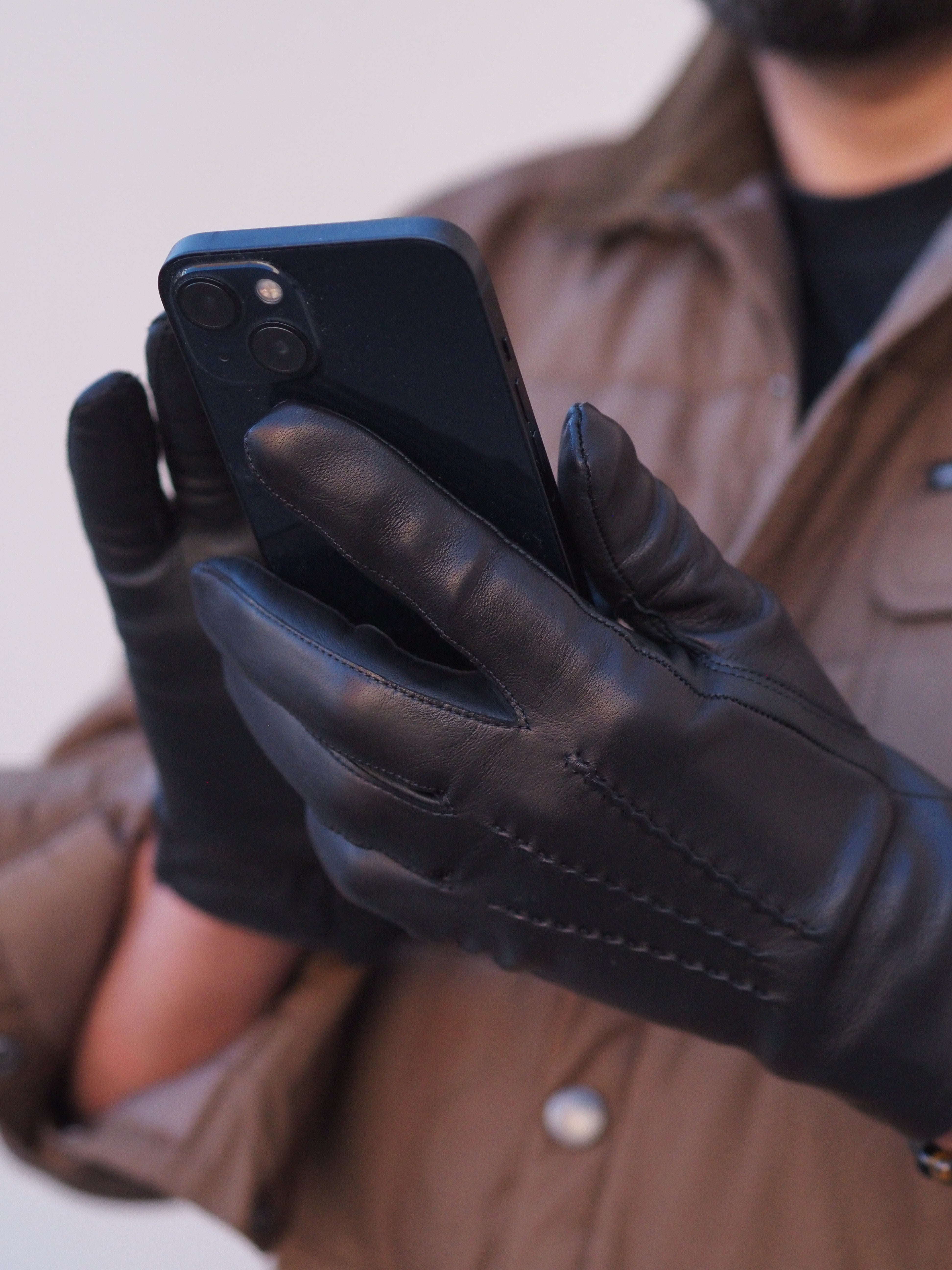 Men's black leather glove with silk linings. The classic glove with three hand-stitched decorative seams is timeless.