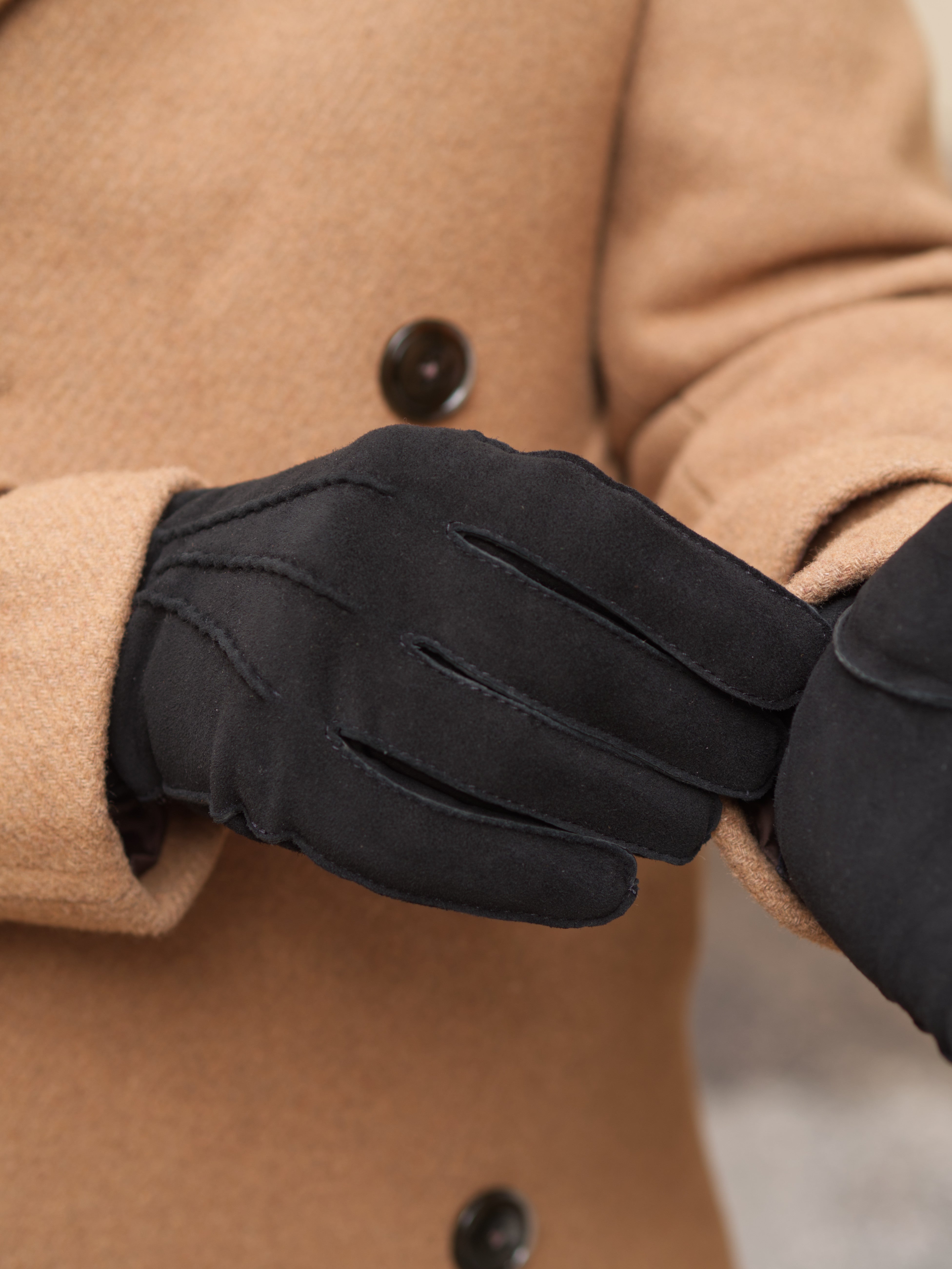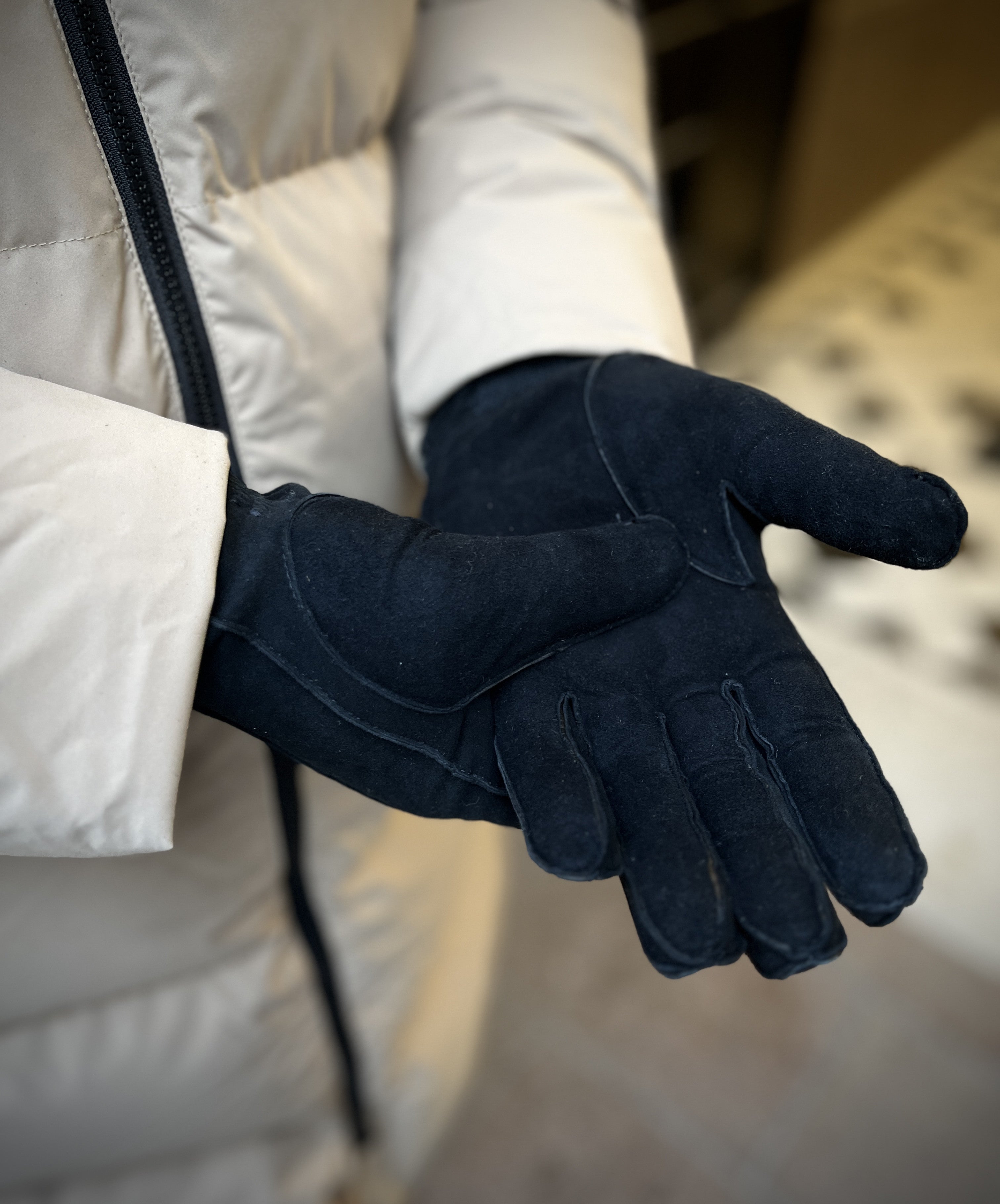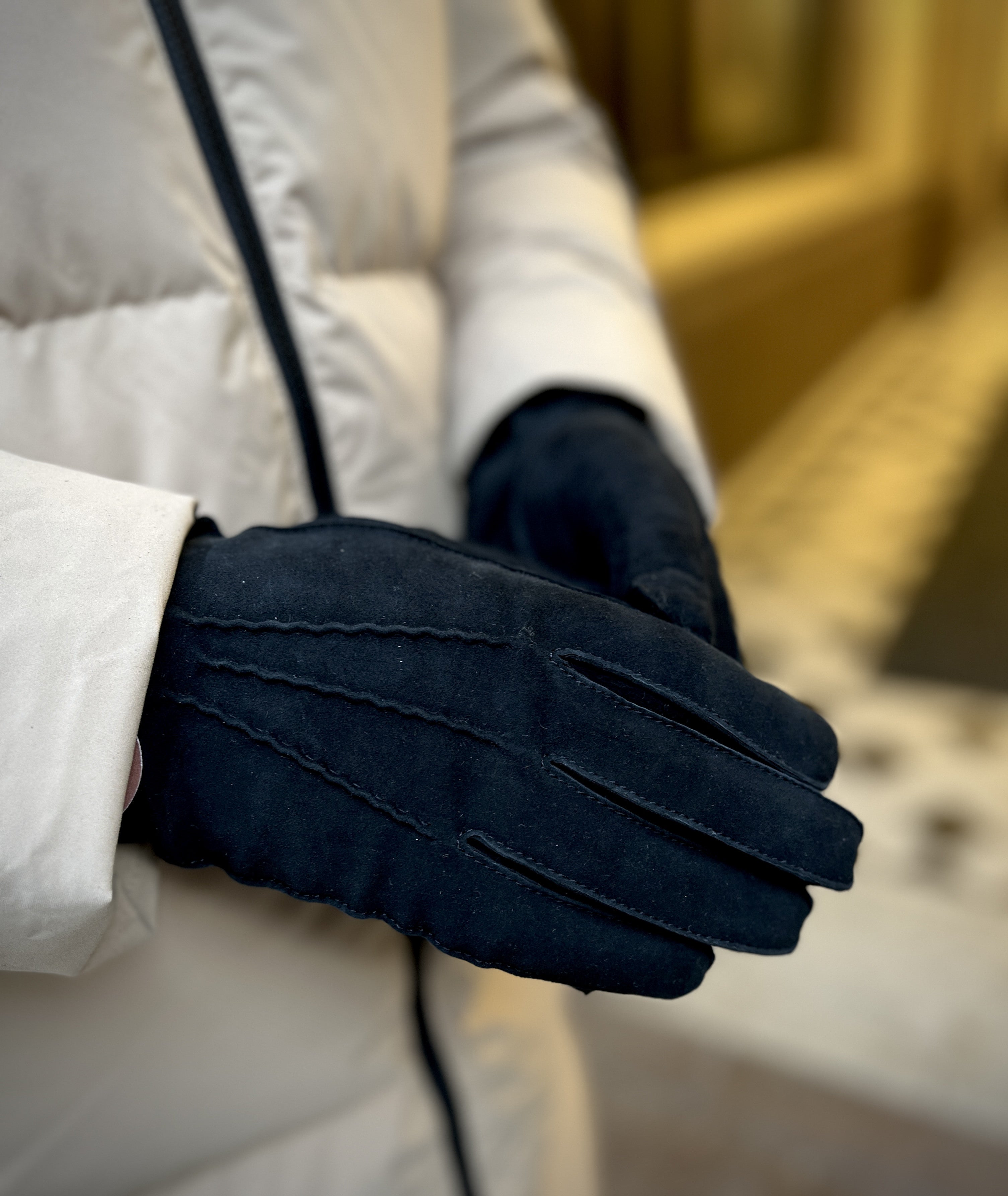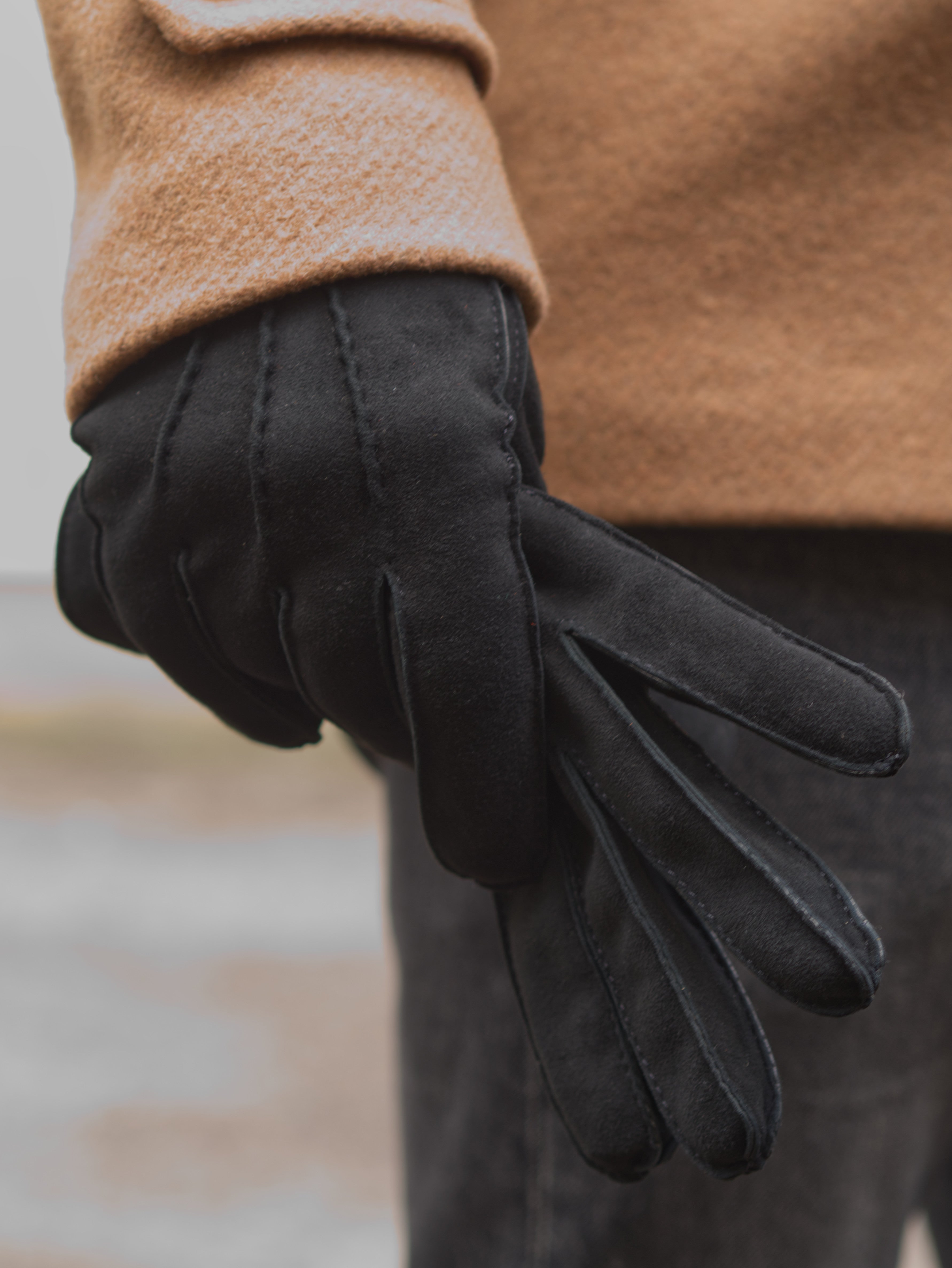 Warm gloves made from Finnish reindeer suede. The suede leather structure makes these black gloves pleasantly soft and flexible to the touch.