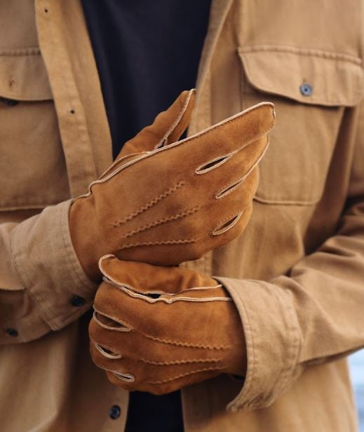 Suomalaisesta, konjakin värisestä poronmokasta valmistetut miesten käsineet. Vastasauma antaa tilaa sormille niin, että pidempi sorminenkin yleensä löytää Isac mallista itselleen sopivan koon. Poromokka on ohutta, kestävää ja se on kosteutta ja hieman myös likaa hylkivää ja erityislaatuisuutensa ansiosta myös lämmintä.  Kasmiiri-villasekoite vuori on mukava ja lämmin. Tämä vuori yhdistettynä ainutlaatuiseen poromokkaan tekee käsineistä huomattavan miellyttävät ja lämpimät.