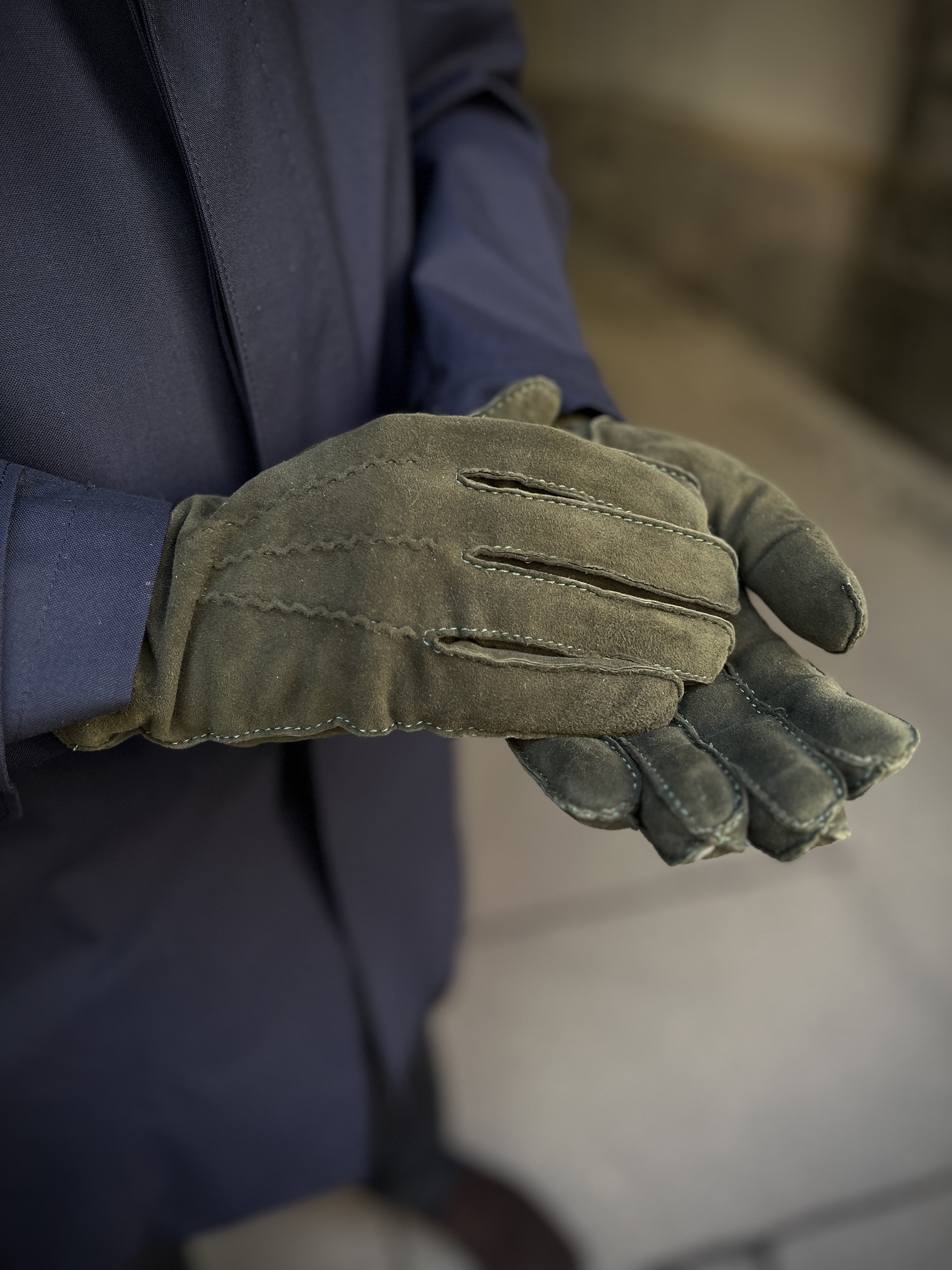 Suomalaisesta, oliivin vihreästä poronmokasta valmistetut miesten käsineet. Vastasauma antaa tilaa sormille niin, että pidempi sorminenkin yleensä löytää Isac mallista itselleen sopivan koon. Poromokka on ohutta, kestävää ja se on kosteutta ja hieman myös likaa hylkivää ja erityislaatuisuutensa ansiosta myös lämmintä. Kasmiiri-villasekoite vuori on mukava ja lämmin. Tämä vuori yhdistettynä ainutlaatuiseen poromokkaan tekee käsineistä huomattavan miellyttävät ja lämpimät.