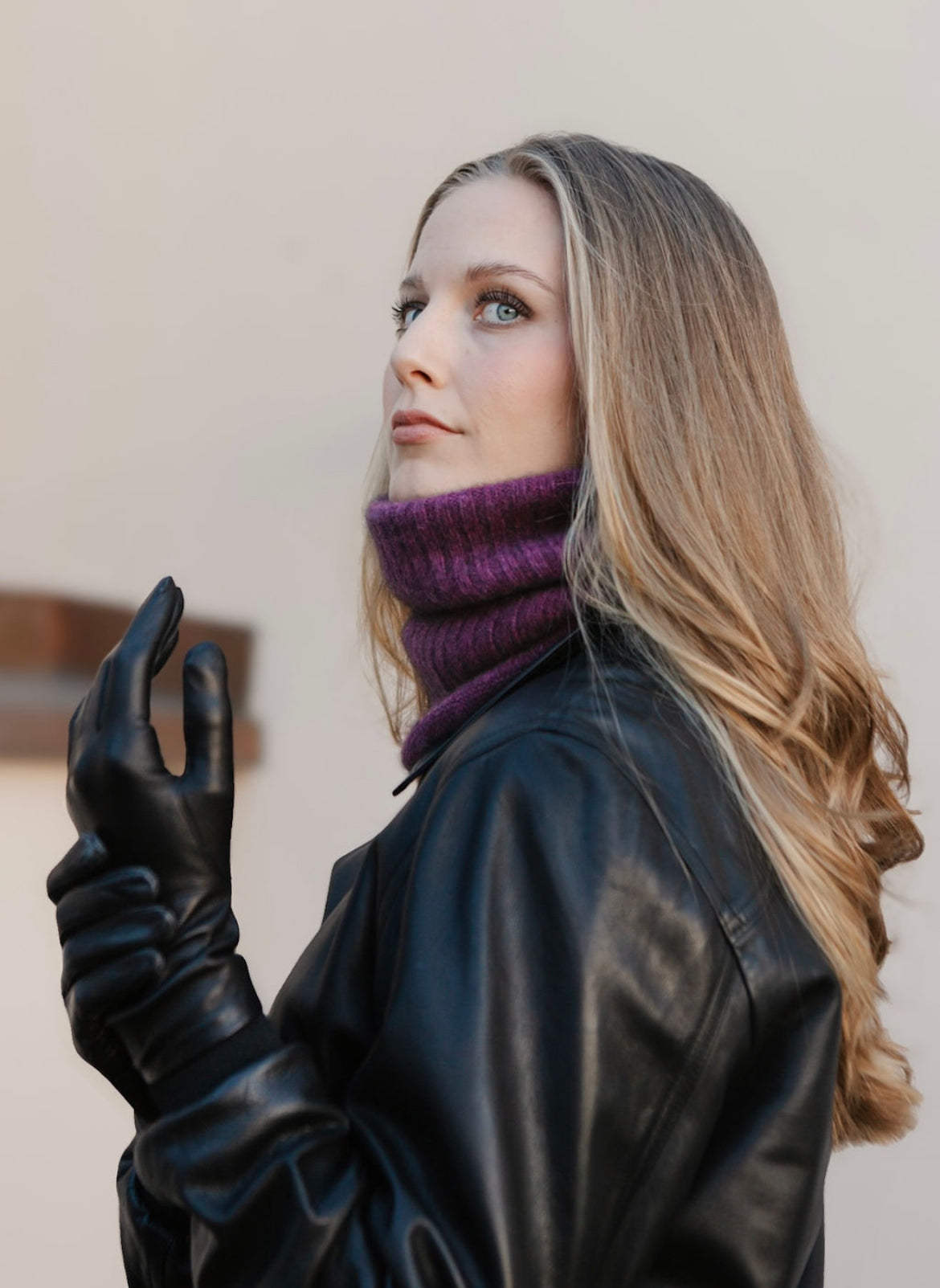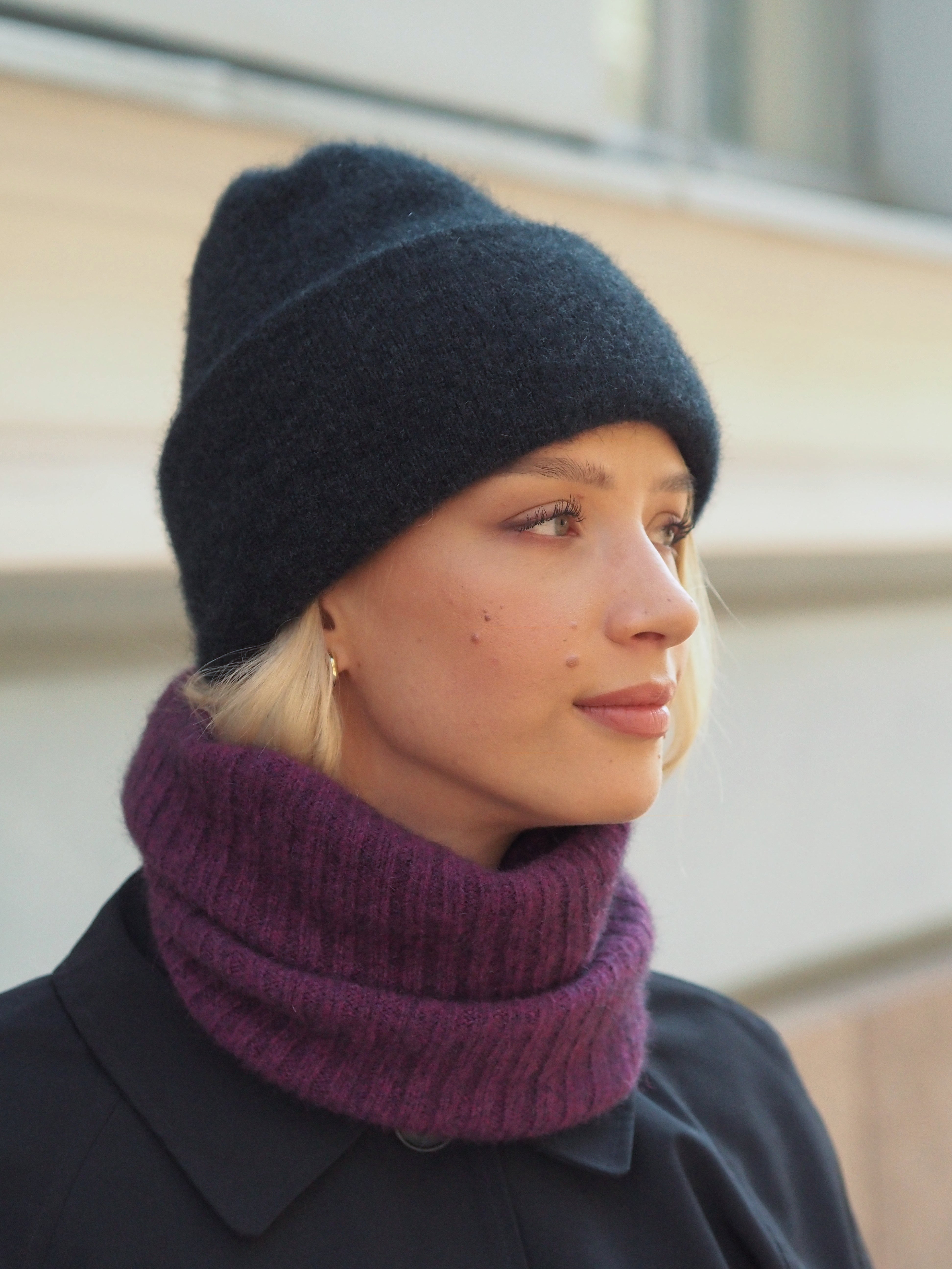 Kestävästä ja lämpimästä merino-kettukusunkarvaneuleesta neulottu tuubihuivi.