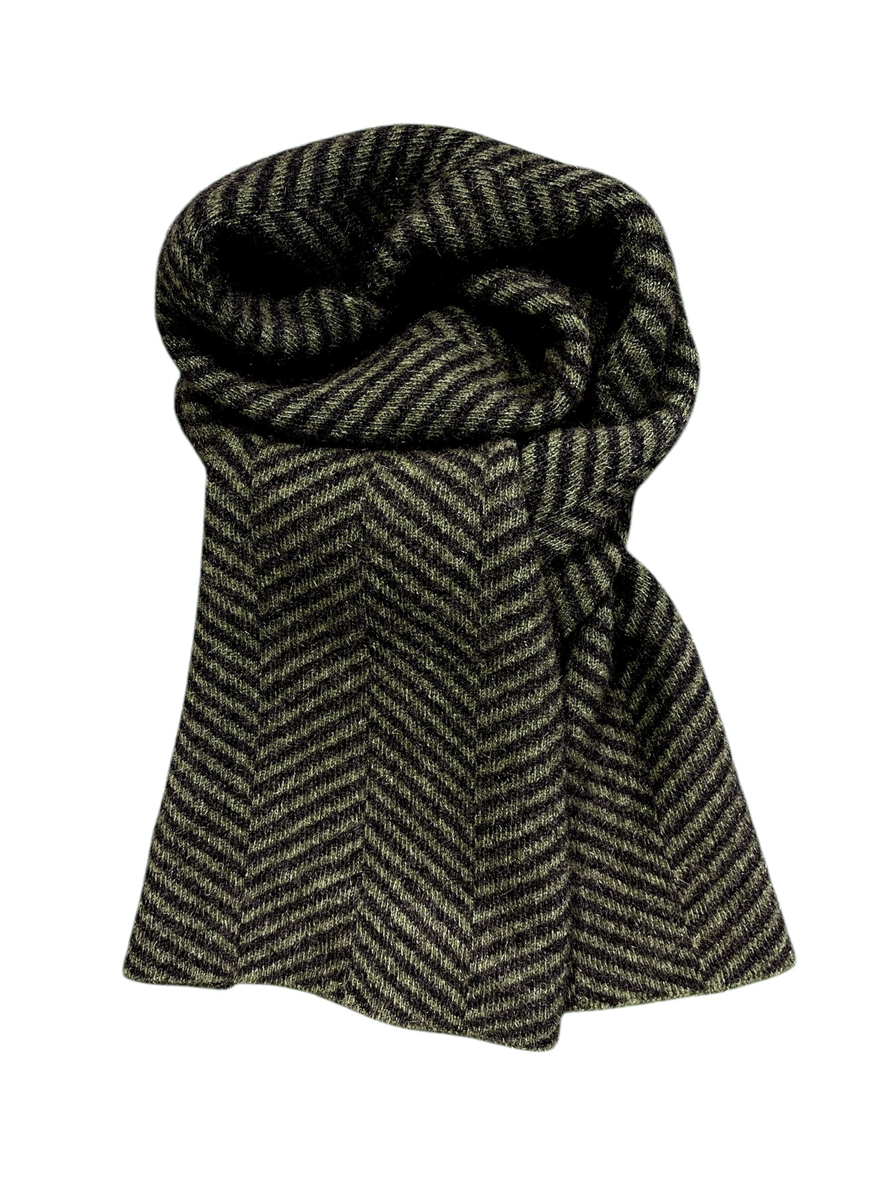A green smooth-knit scarf made from merino-possums fur knit. An easy and versatile knit suitable for the whole family.