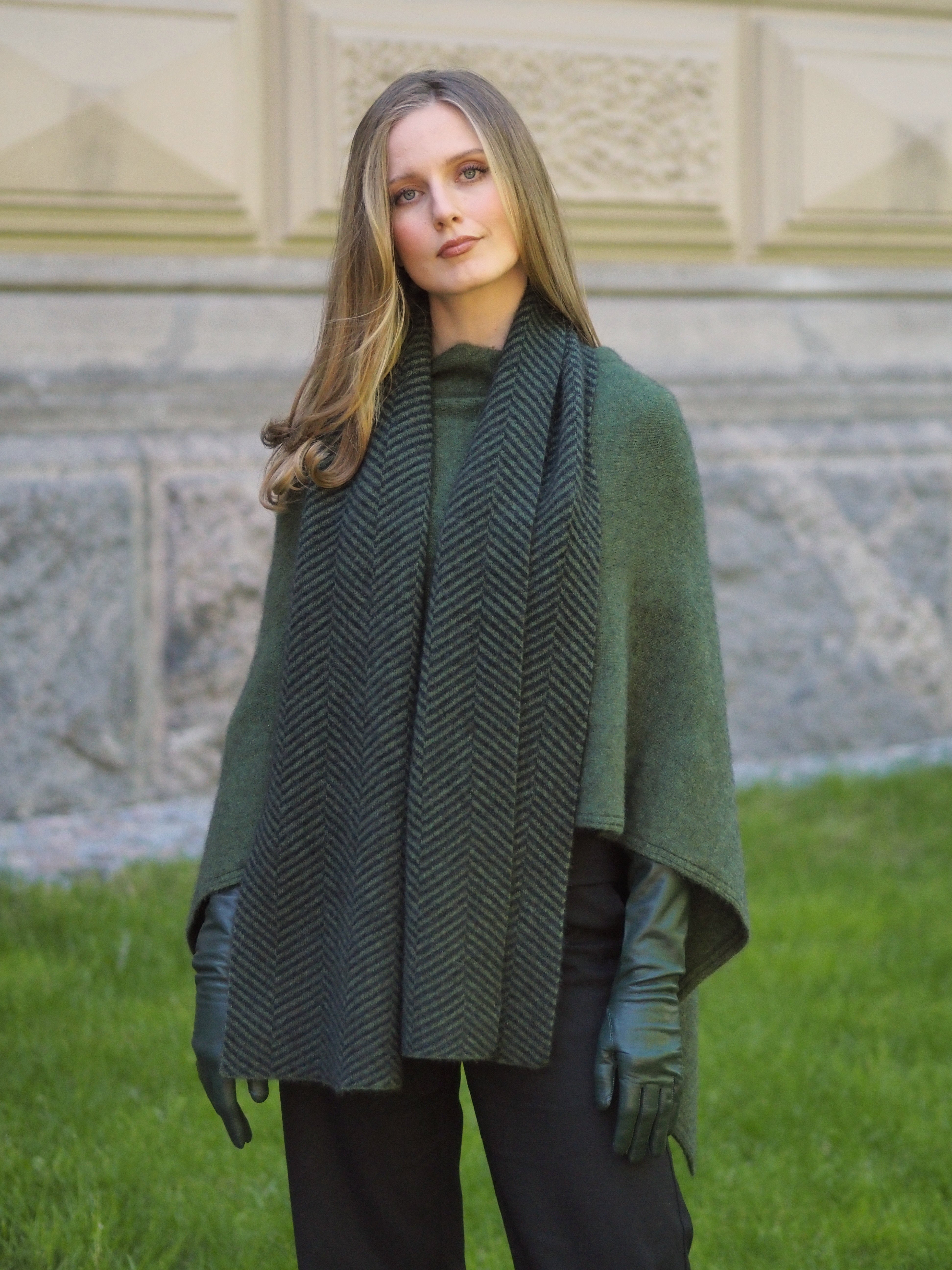 Vega Merino-kettukusu-silkki neuloksesta valmistettu kaulaliina. Koko 35 * 190cm. Unisex kaulaliina sopii miehille ja naisille. Ylellinen neulos laskeutuu kauniisti, eikä koskaan rypisty. Vesipestävä. Tummanharmaa / vihreä. Lähes nukkaantumaton huivi näyttää aina tyylikkäälle.