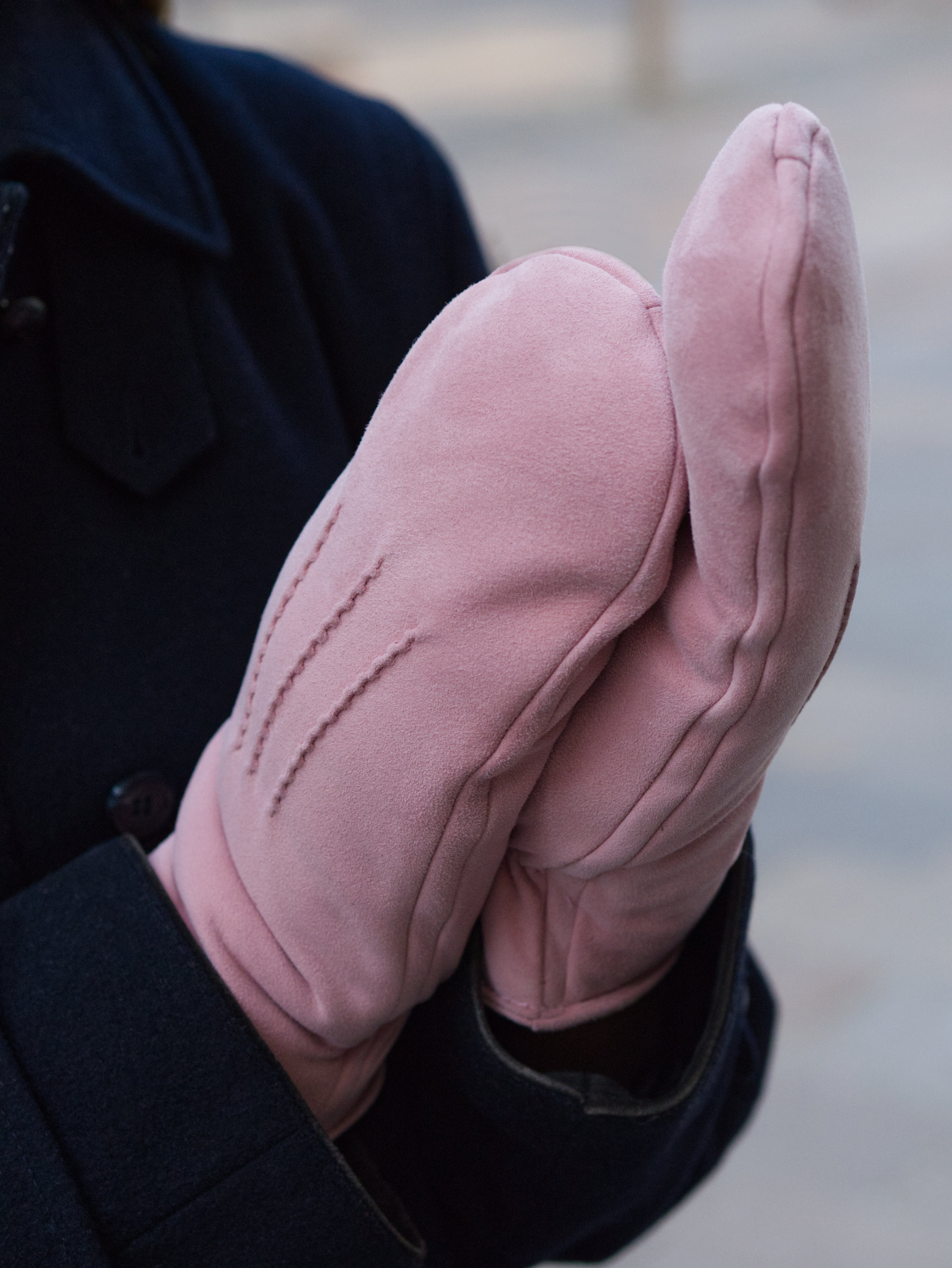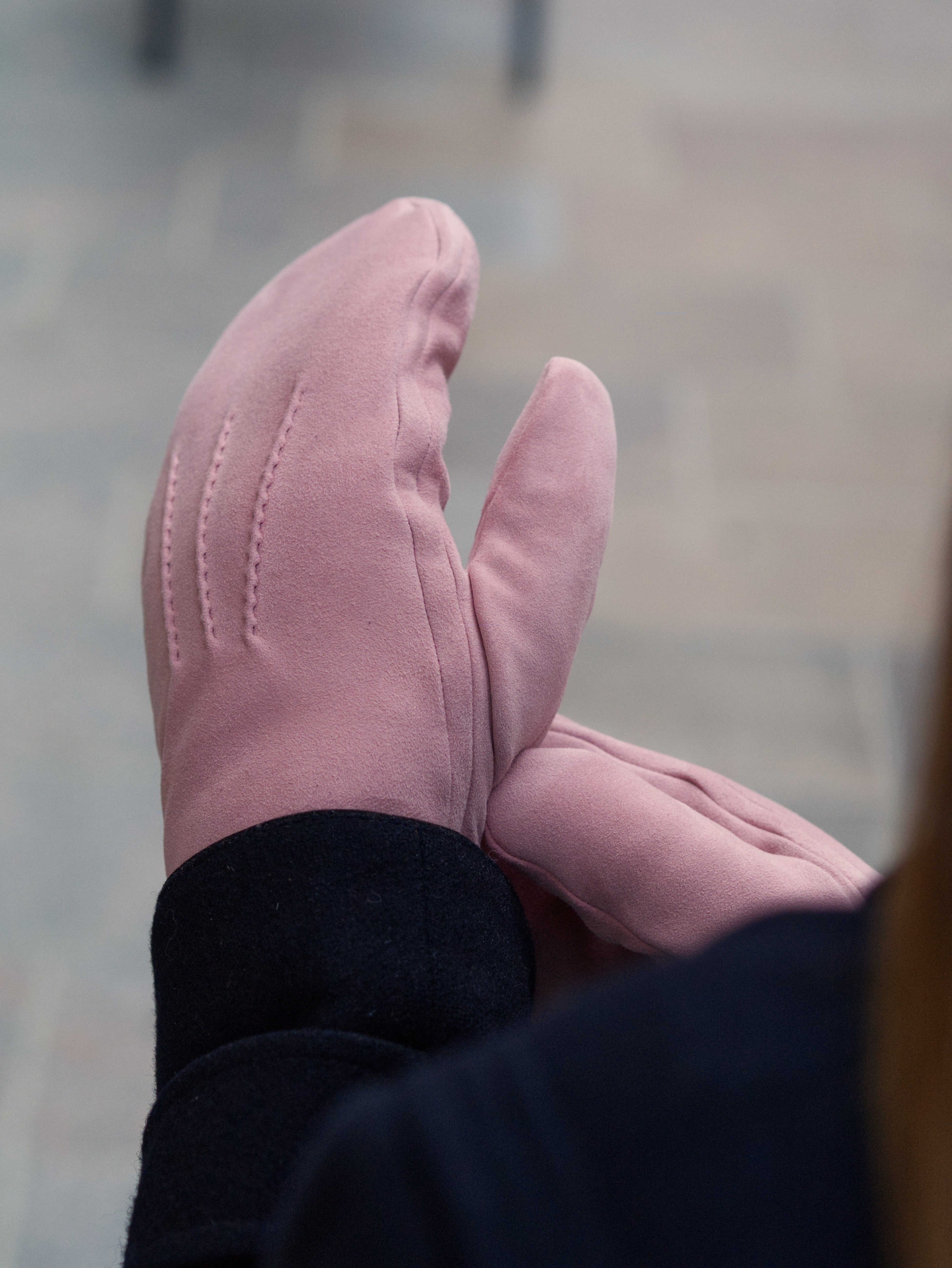 - Pue pestävä käsine käteesi. Älä upota käsineitä veteen, sillä luonnonkuituiset vuorimateriaalit saattavat kutistua, mikäli veden lämpötila on vahingossa liian korkea. Huomioithan myös, että turkisvuorisia tai muuten turkissomisteisia käsineitä ei voi pestä vedellä.
