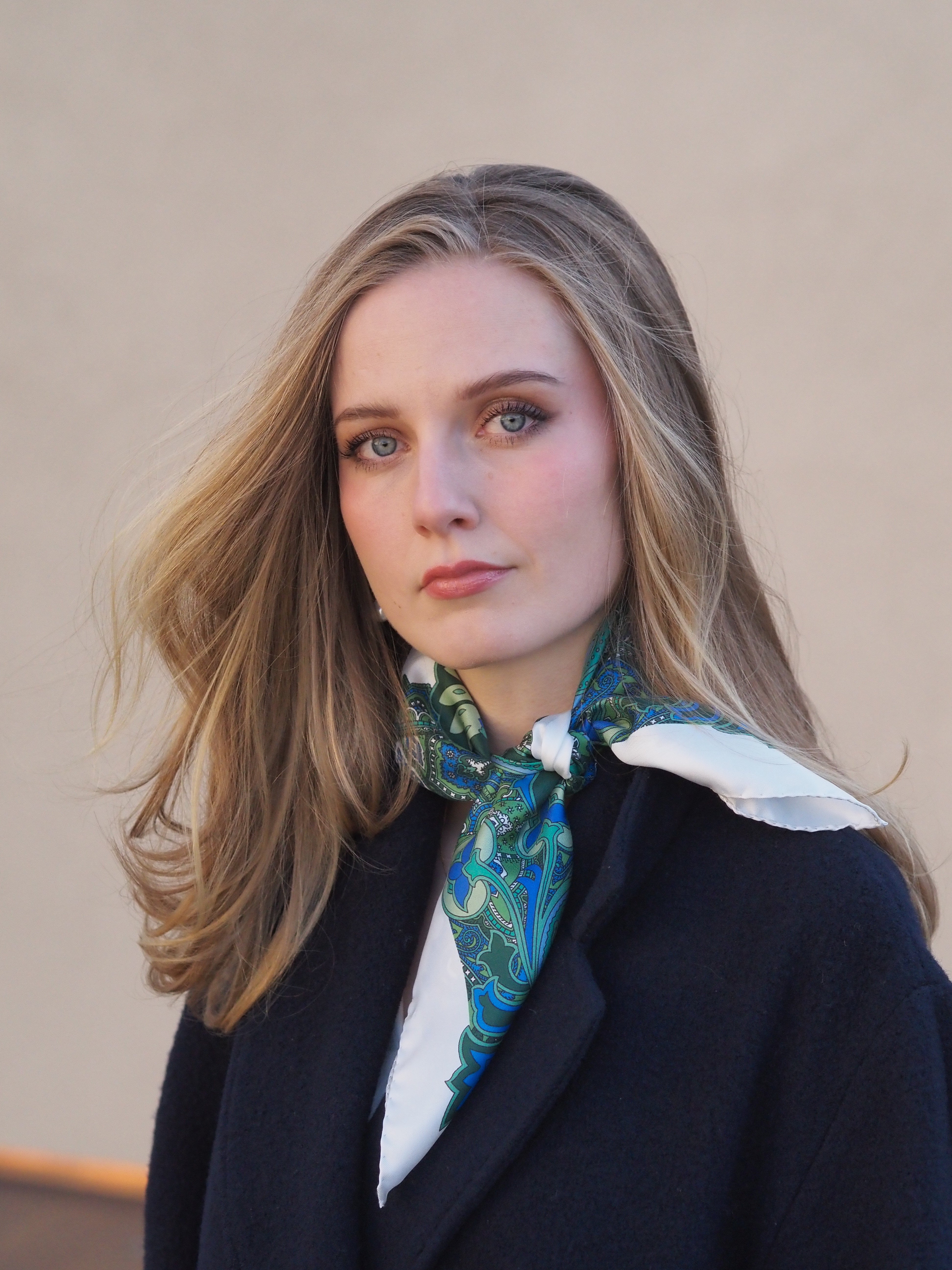 Sauson silk scarves are made in the Como region of Italy, known for its stunning landscapes and high-quality silk scarf production. The traditional product manufacturing utilizes modern techniques to achieve a traditionally beautiful result produced responsibly. For example, digitally printing the patterns saves energy, fabric, and dye, as only the exact amount of dye and fabric needed is used—none goes to waste. The textile has the Öko-Tex STANDARD 100 certification.