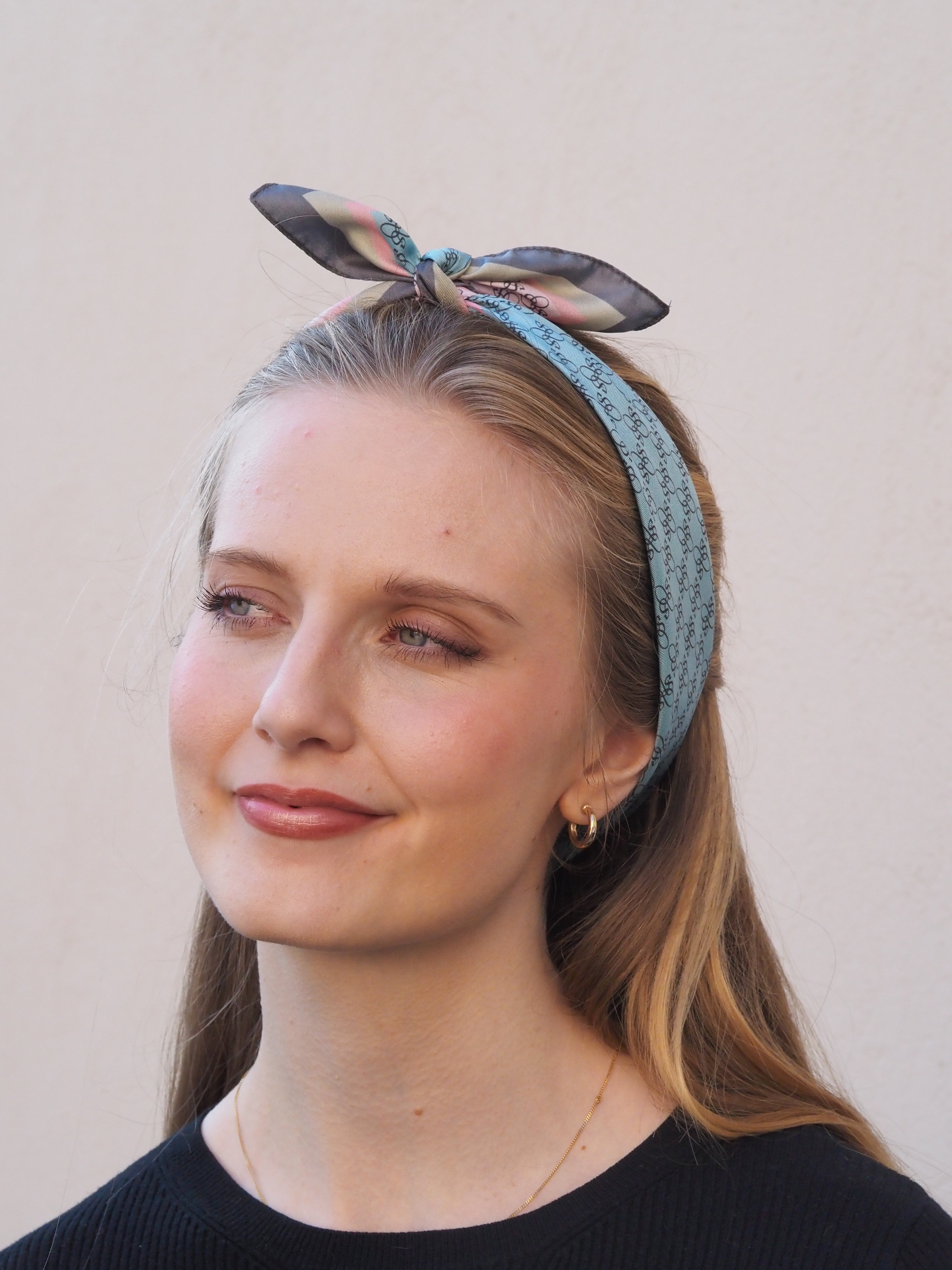 The classic silk scarf is one of the most versatile accessories, suitable year-round. The silk scarf can be wrapped around hair, head, neck, wrist, or tied to a handbag. A stylish scarf can also replace a tie.