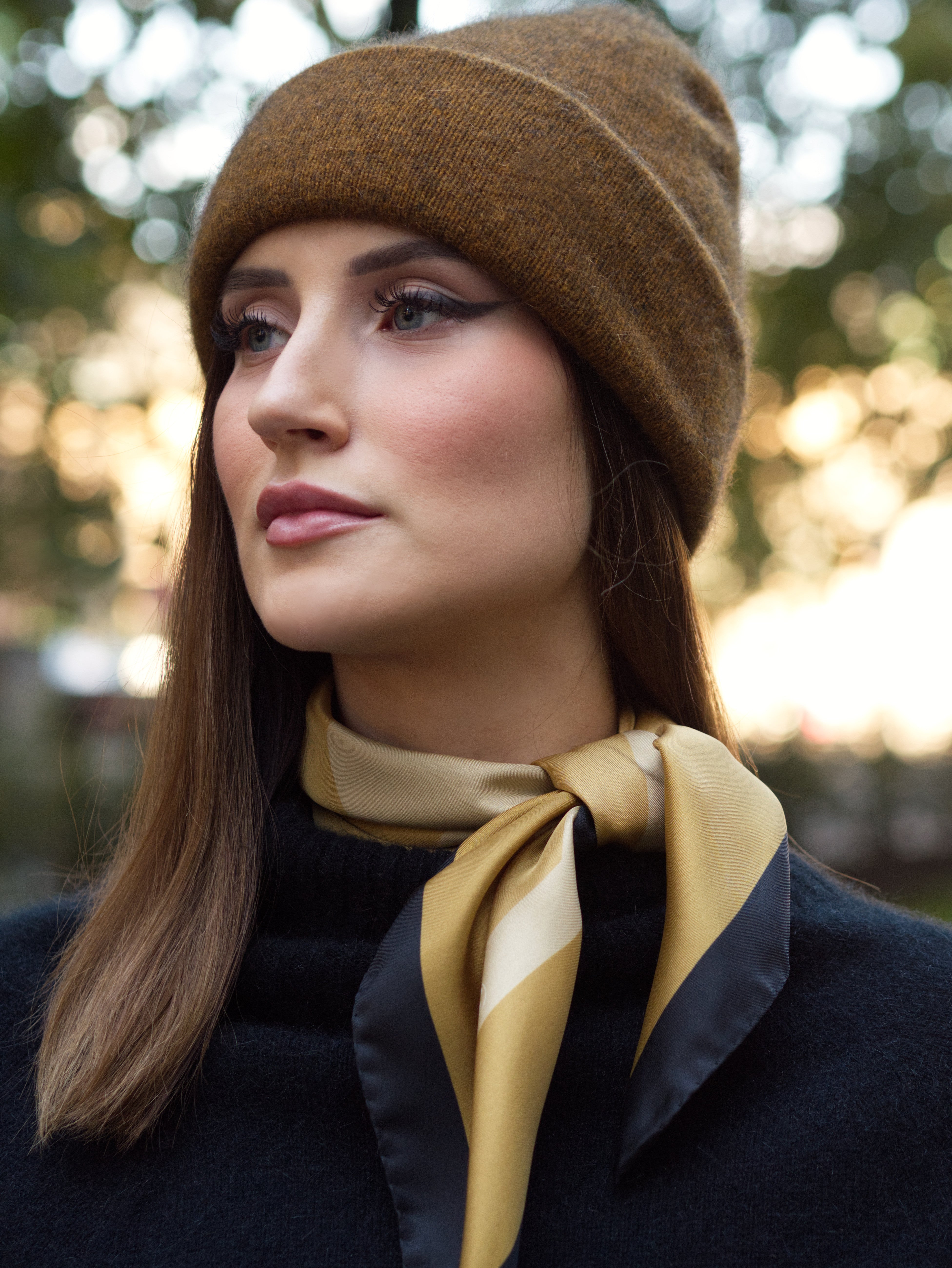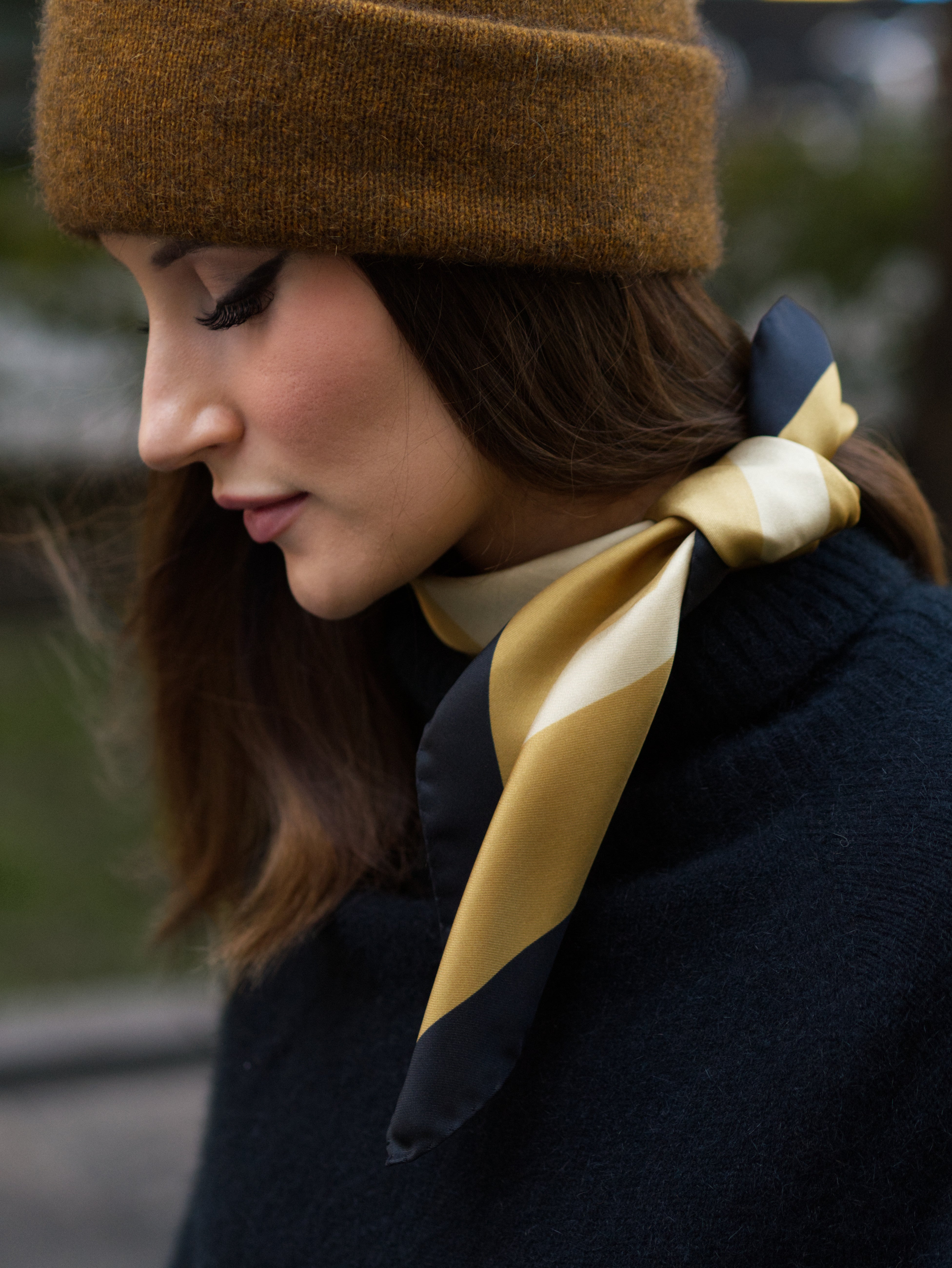 Klassinen keltainen silkkihuivi on yksi monikäyttöisimmistä asusteista, joka toimii vuodenajasta toiseen. Luonnonmateriaalina silkki on vertaansa vailla sen kestävyyden ja hengittävyyden ansiosta. Silkkihuivi on ylellinen mutta samaan aikaan käytännöllinen asuste.