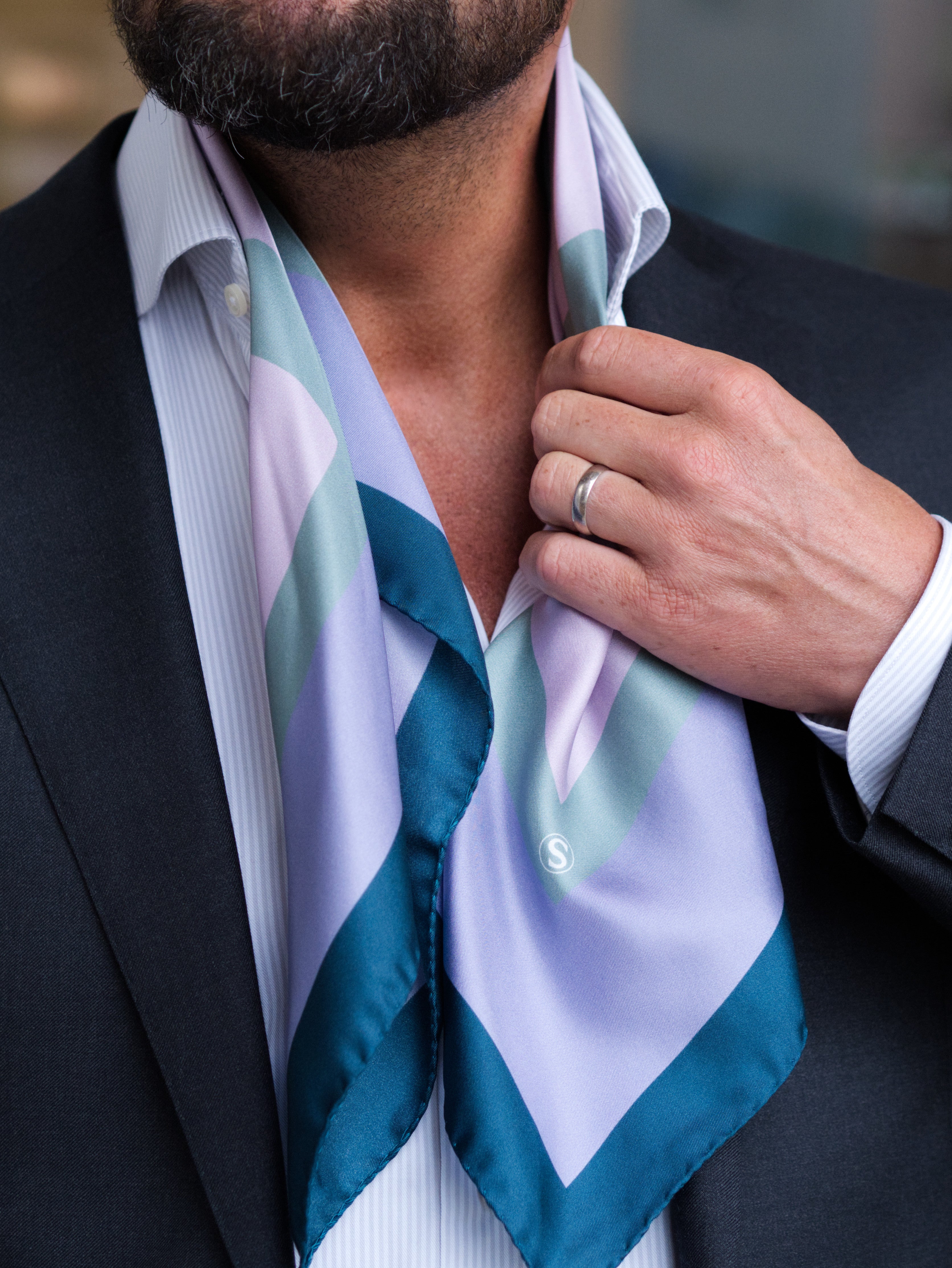 Sauson silk scarves are made in the Como region of Italy, known for its stunning landscapes and high-quality silk scarf production. The traditional product manufacturing utilizes modern techniques to achieve a traditionally beautiful result produced responsibly. For example, digitally printing patterns saves energy, fabric, and dye, as only the exact amount of dye and fabric needed is used—none goes to waste. The textile has the Öko-Tex STANDARD 100 certification.