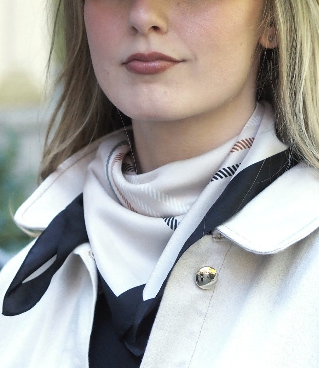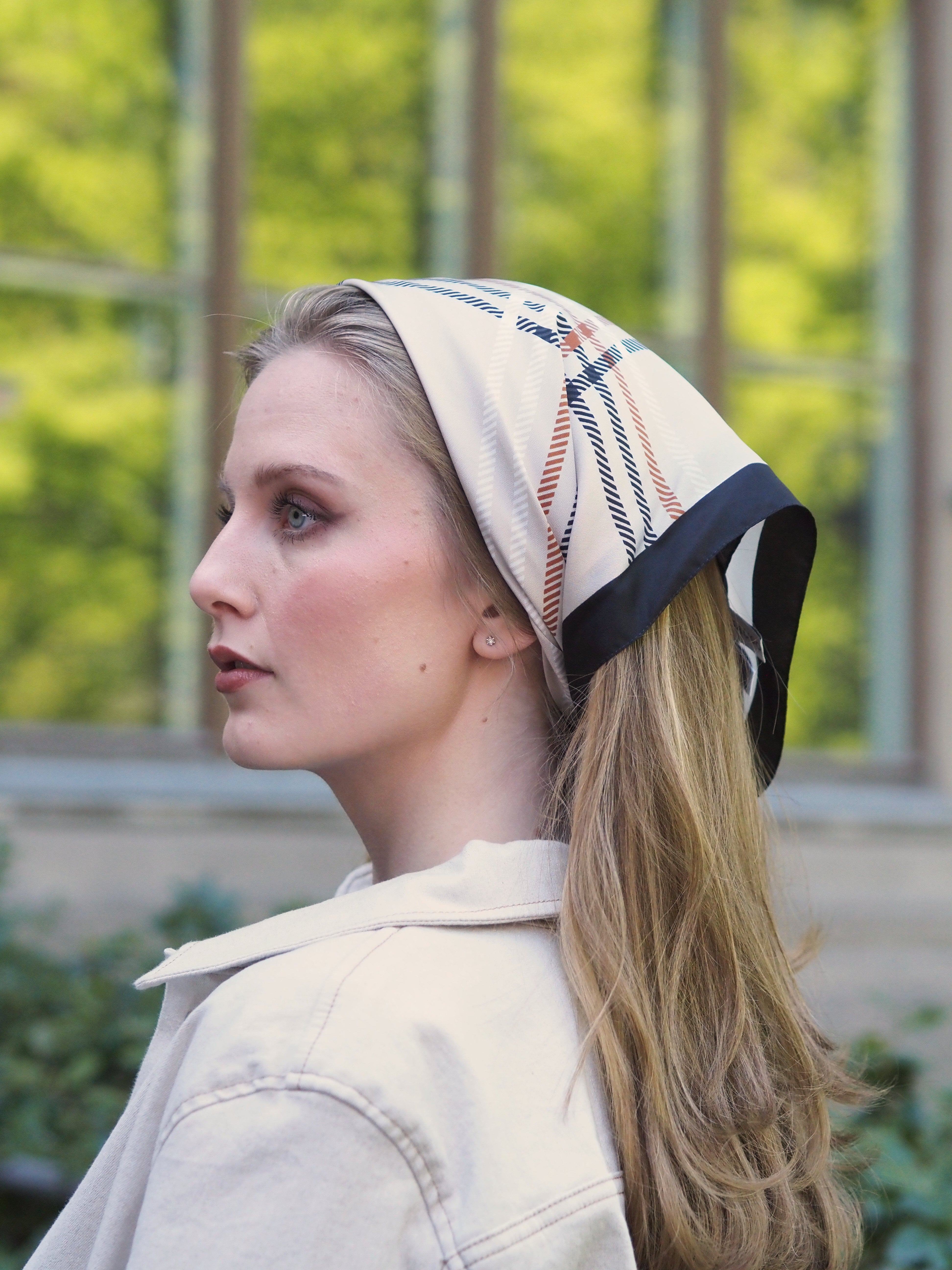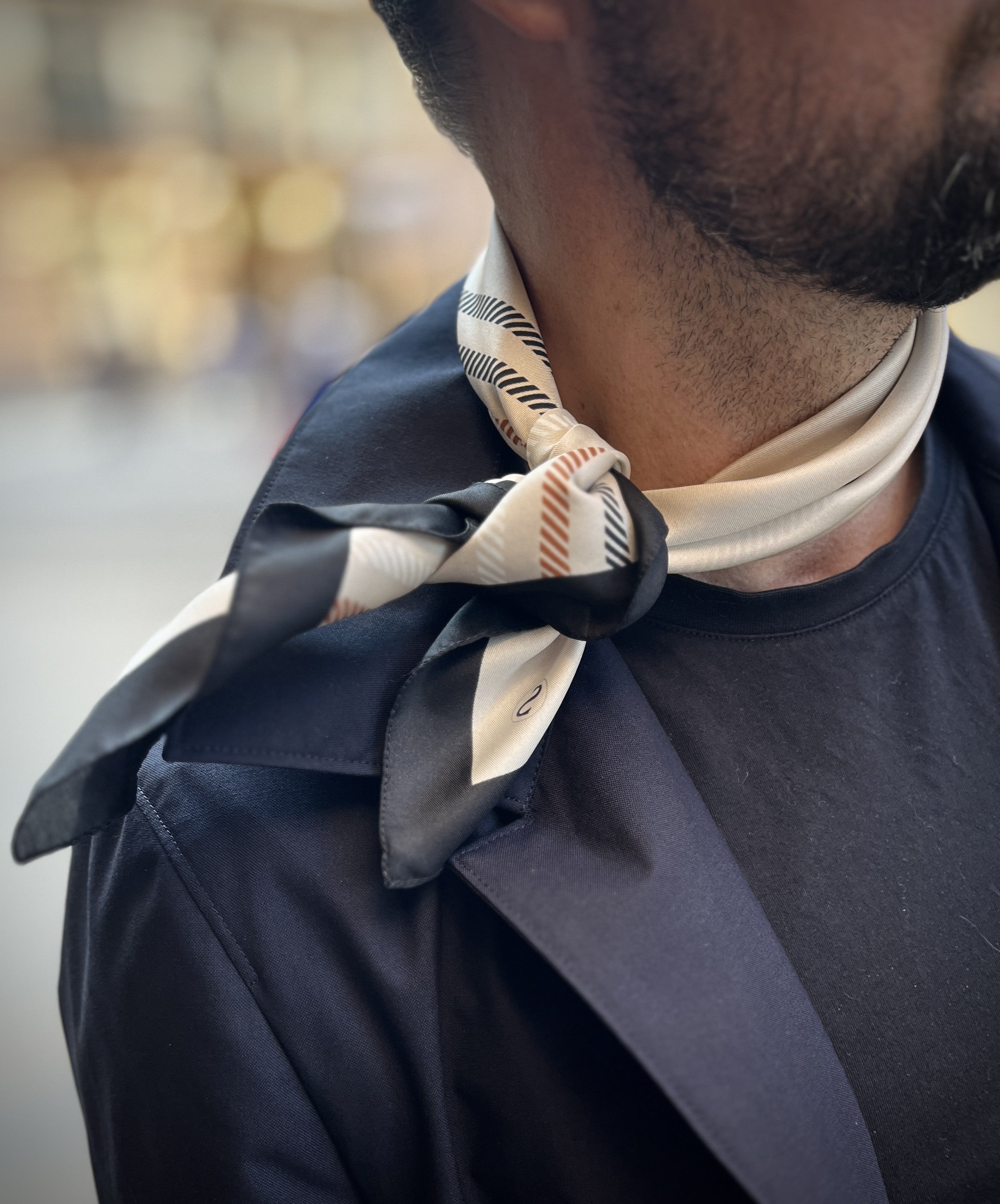 The classic silk scarf is one of the most versatile accessories, suitable year-round. The silk scarf can be wrapped around hair, head, neck, wrist, or tied to a handbag. A stylish scarf can also replace a tie.