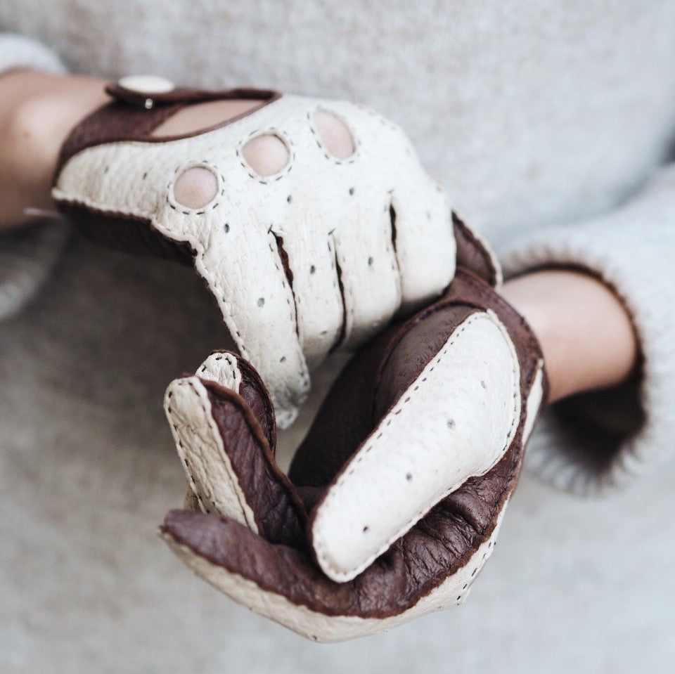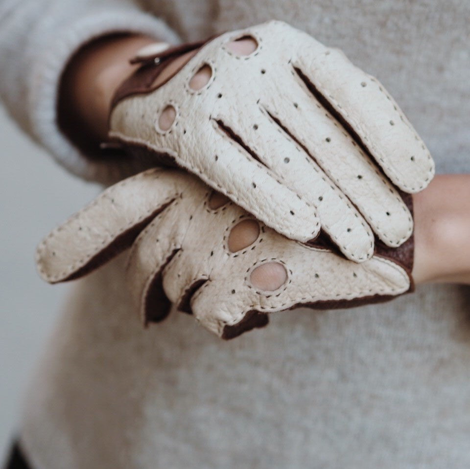 Klassiset ajokäsineet peccaryvillisiannahkasta. Valmistettu käsityönä.