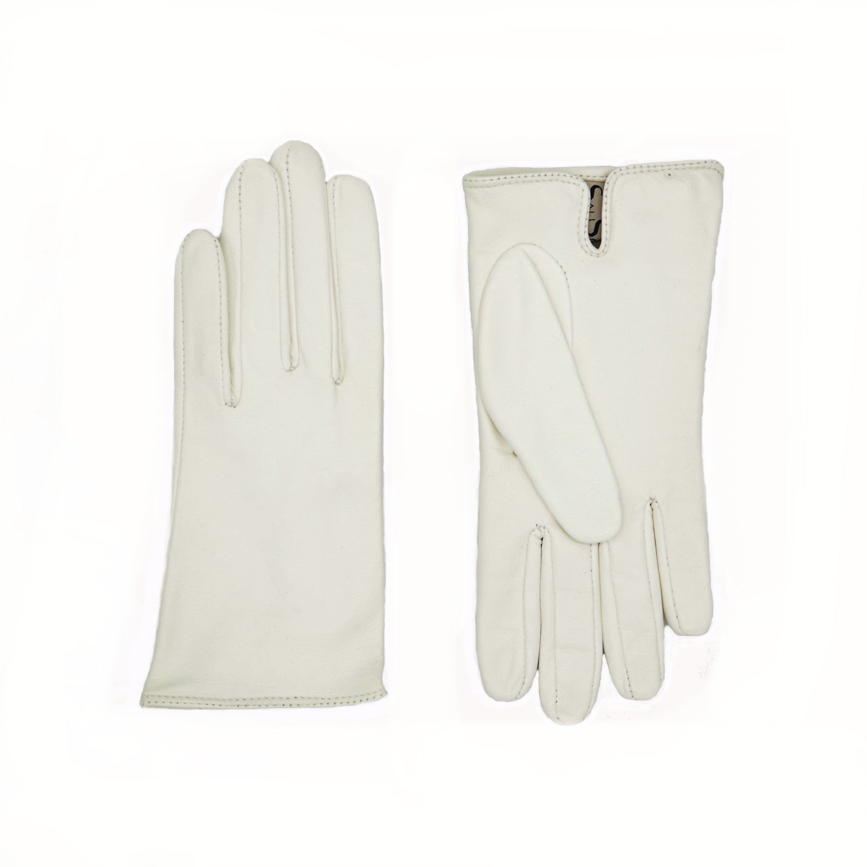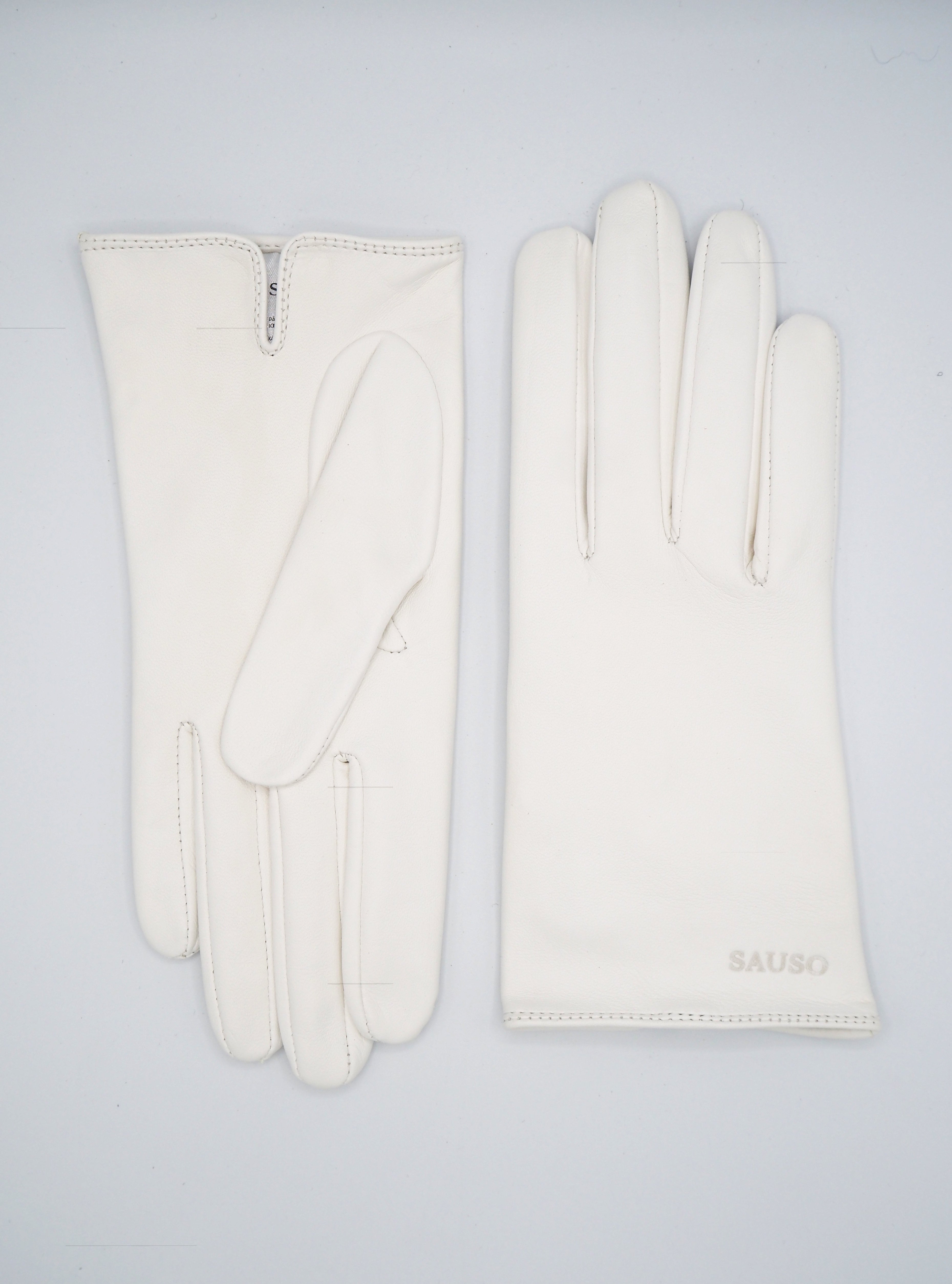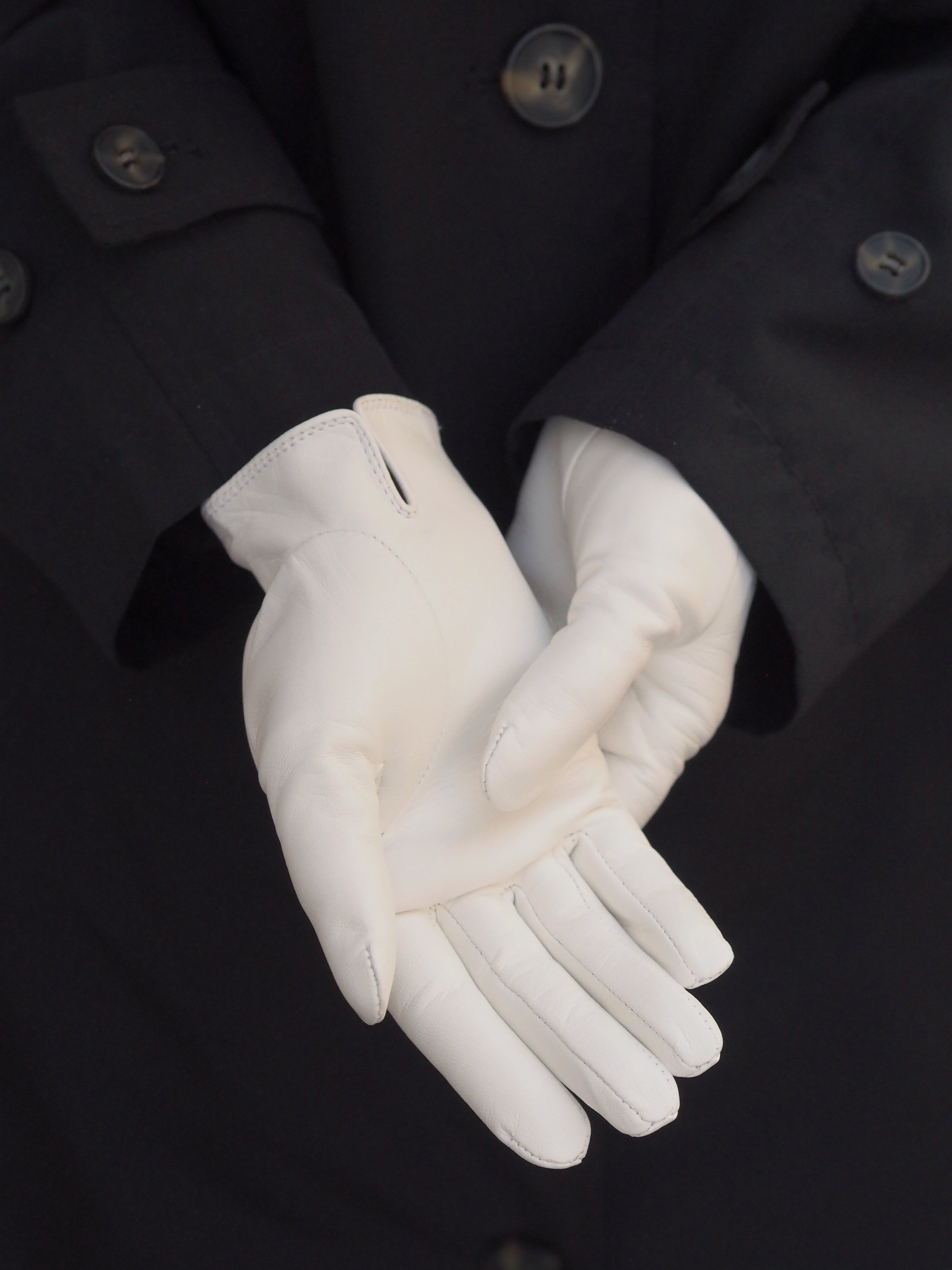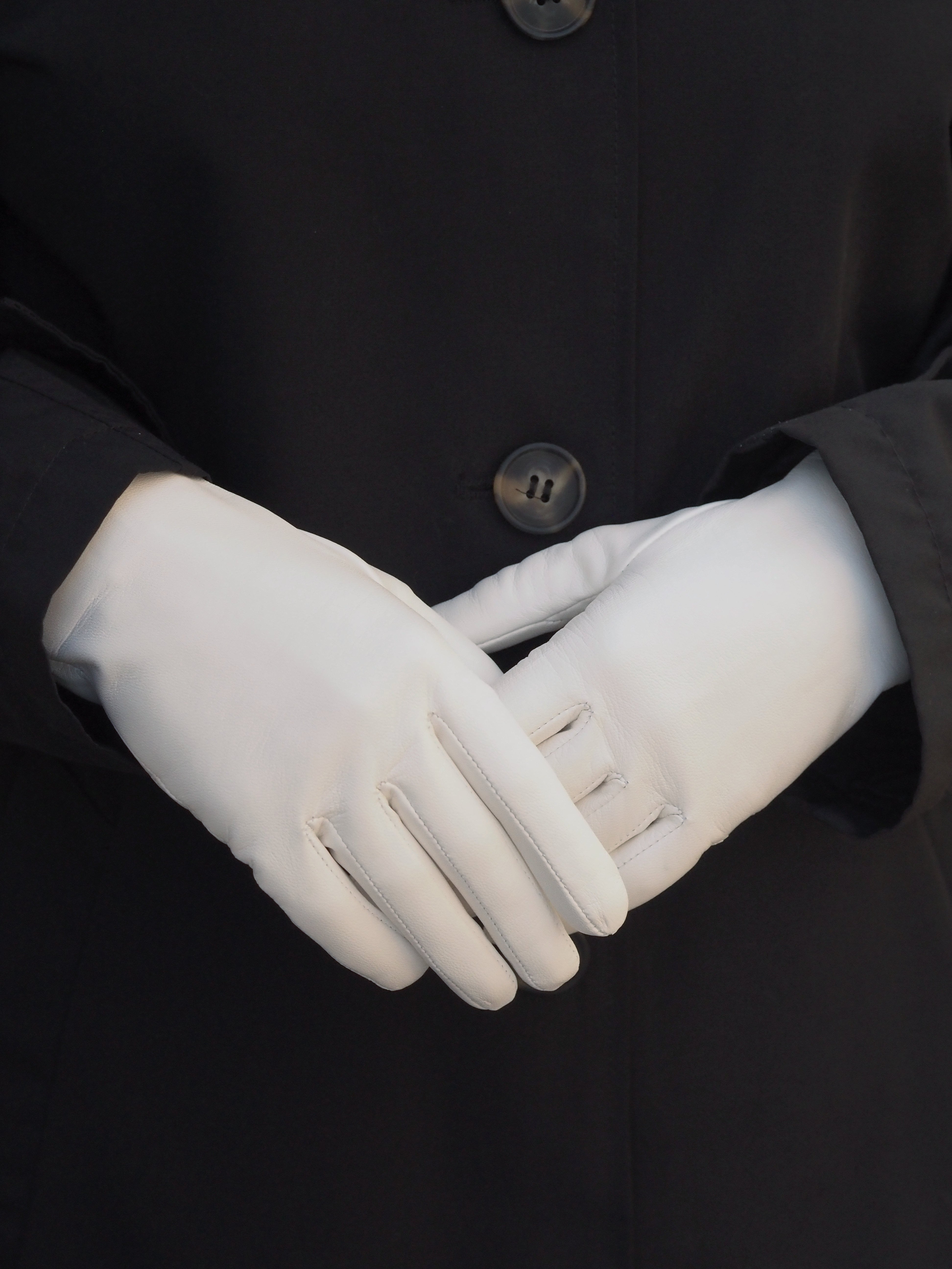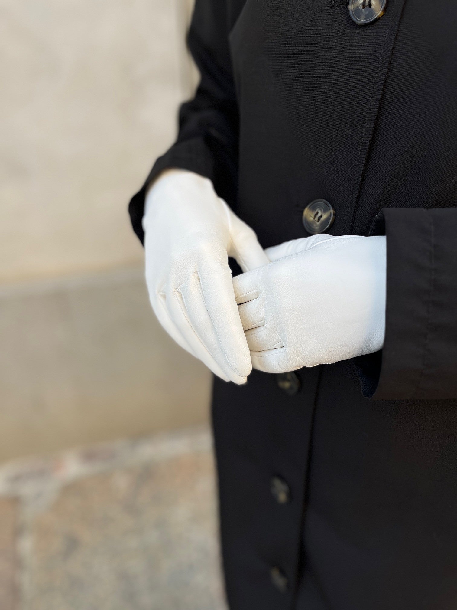 White leather gloves with a timeless classic design. Pure white gloves are suitable as formal gloves for various occasions as well as for stylish everyday wear in warm weather.