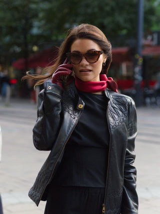 Kosketusnäyttökäsineet on valmistettu etiopian karvalampaan nappanahasta. Karvalampaan nappanahka, niin sanotusti pintanahka, on luonnostaan ohutta, hyvin sileää ja kauniin kiiltävää. Läpivärjätty nahka säilyttää kirkkaan värinsä kauniina.