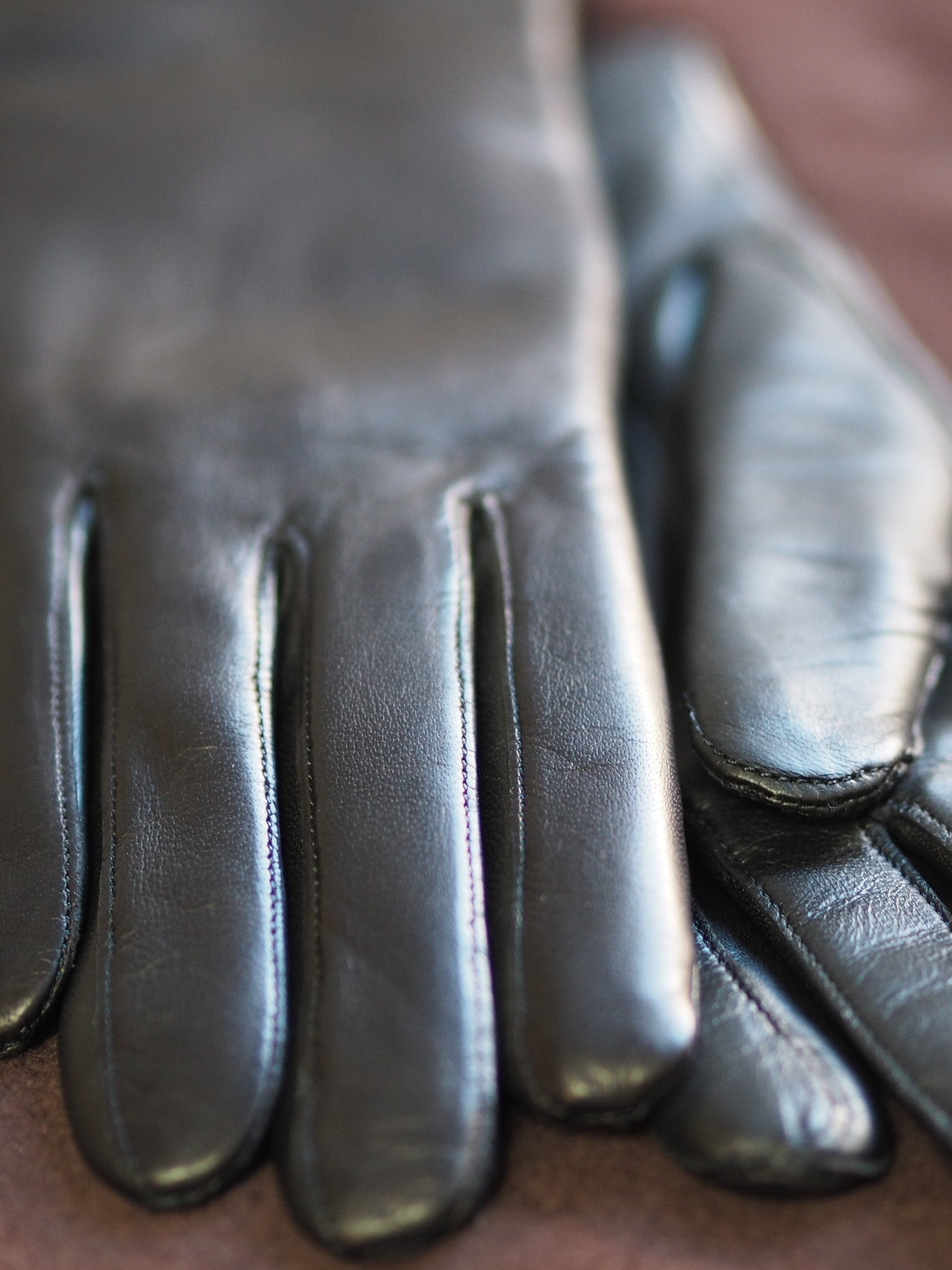 - Women's black leather gloves with cotton linings