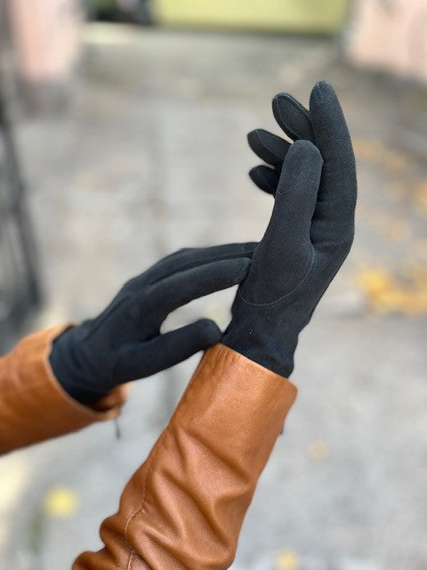 Charming warm gloves made from Finnish reindeer suede. The structure of the suede leather makes these black gloves beautifully soft.
