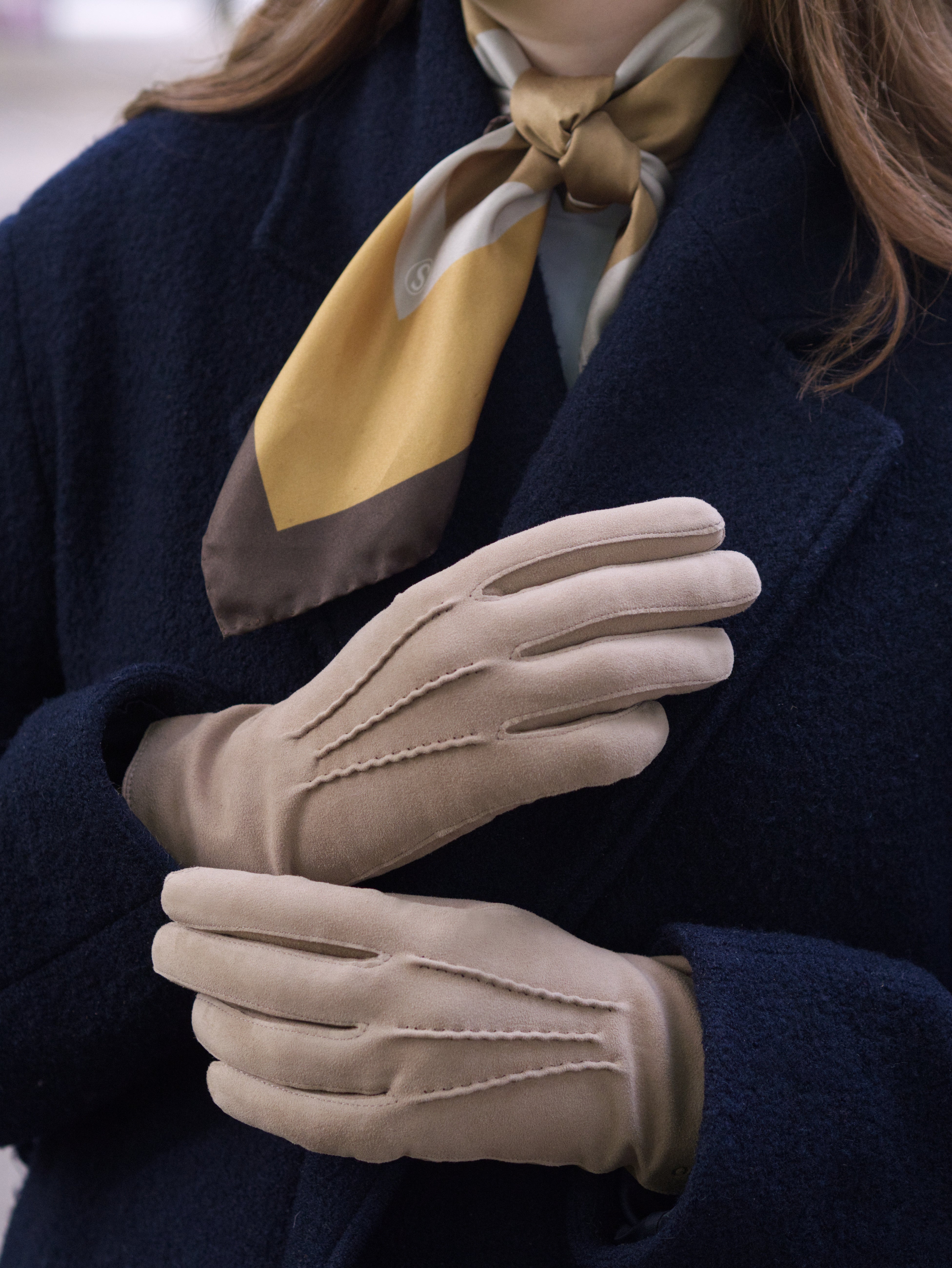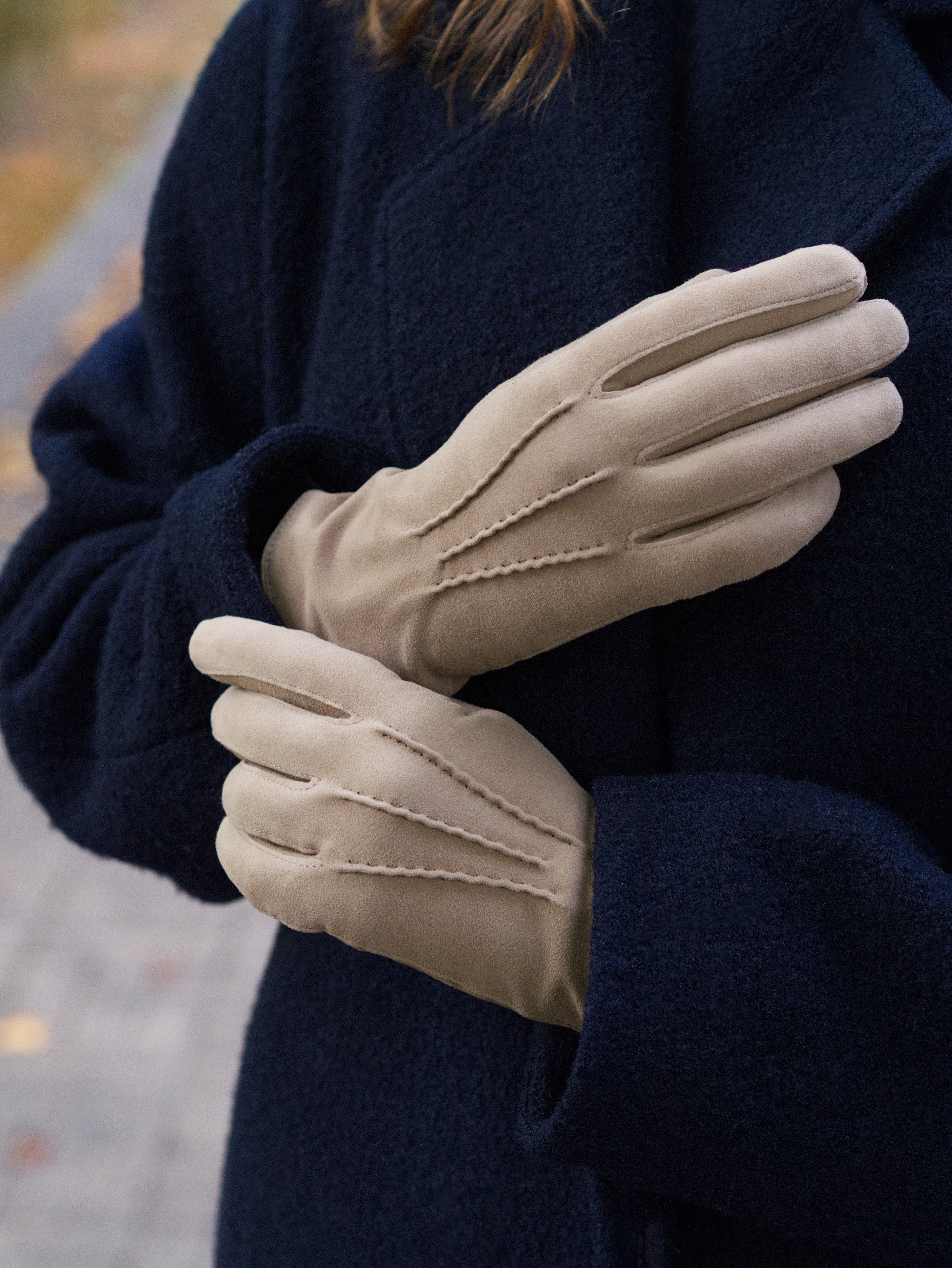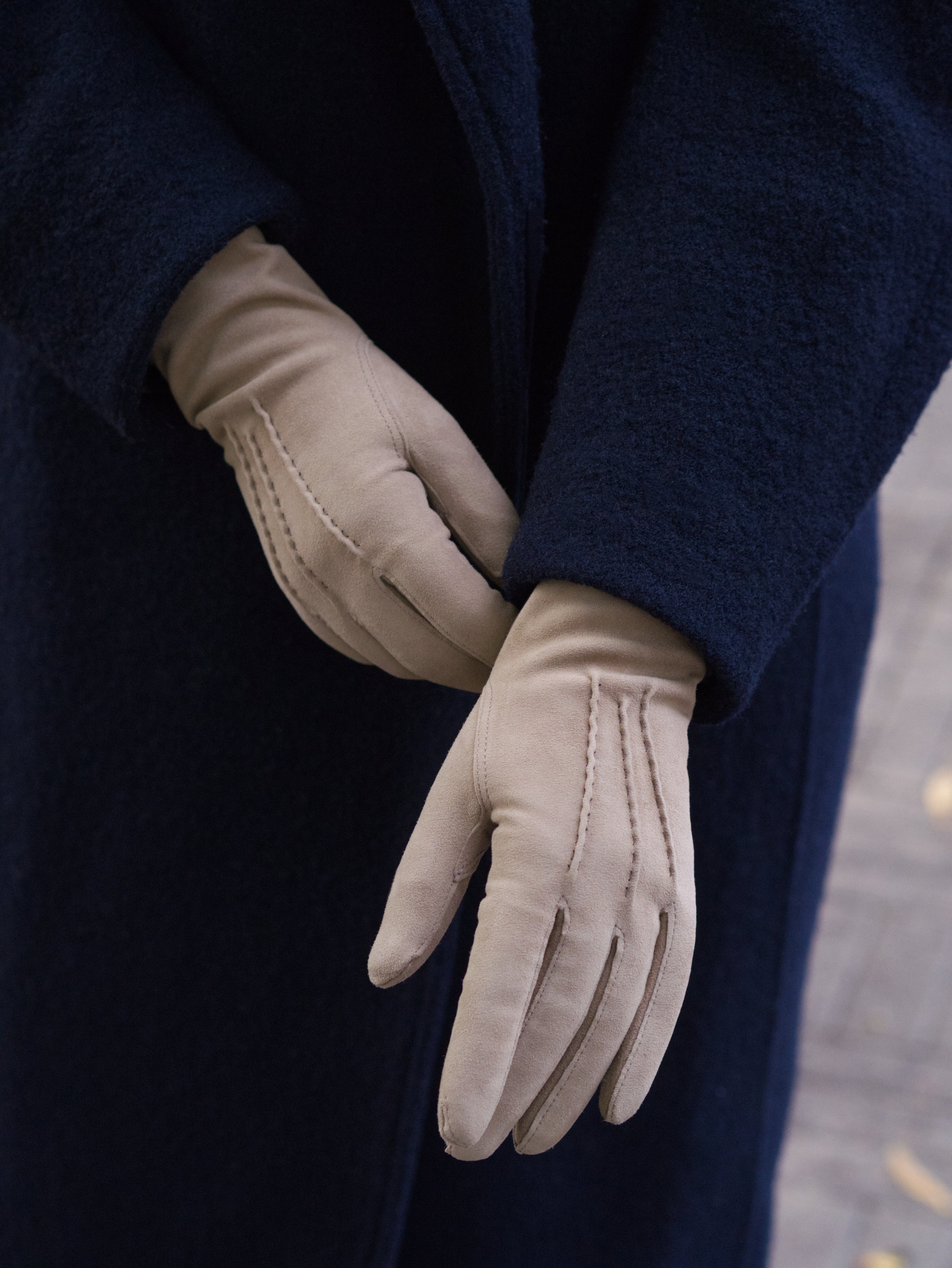 The glove has a simple style with refined decorative stitches on the back of the hand. The gloves are sewn with a step seam, which makes the glove beautifully slender on the hand. The cuff is about 5 cm long, covering the wrist well and protecting against the wind.