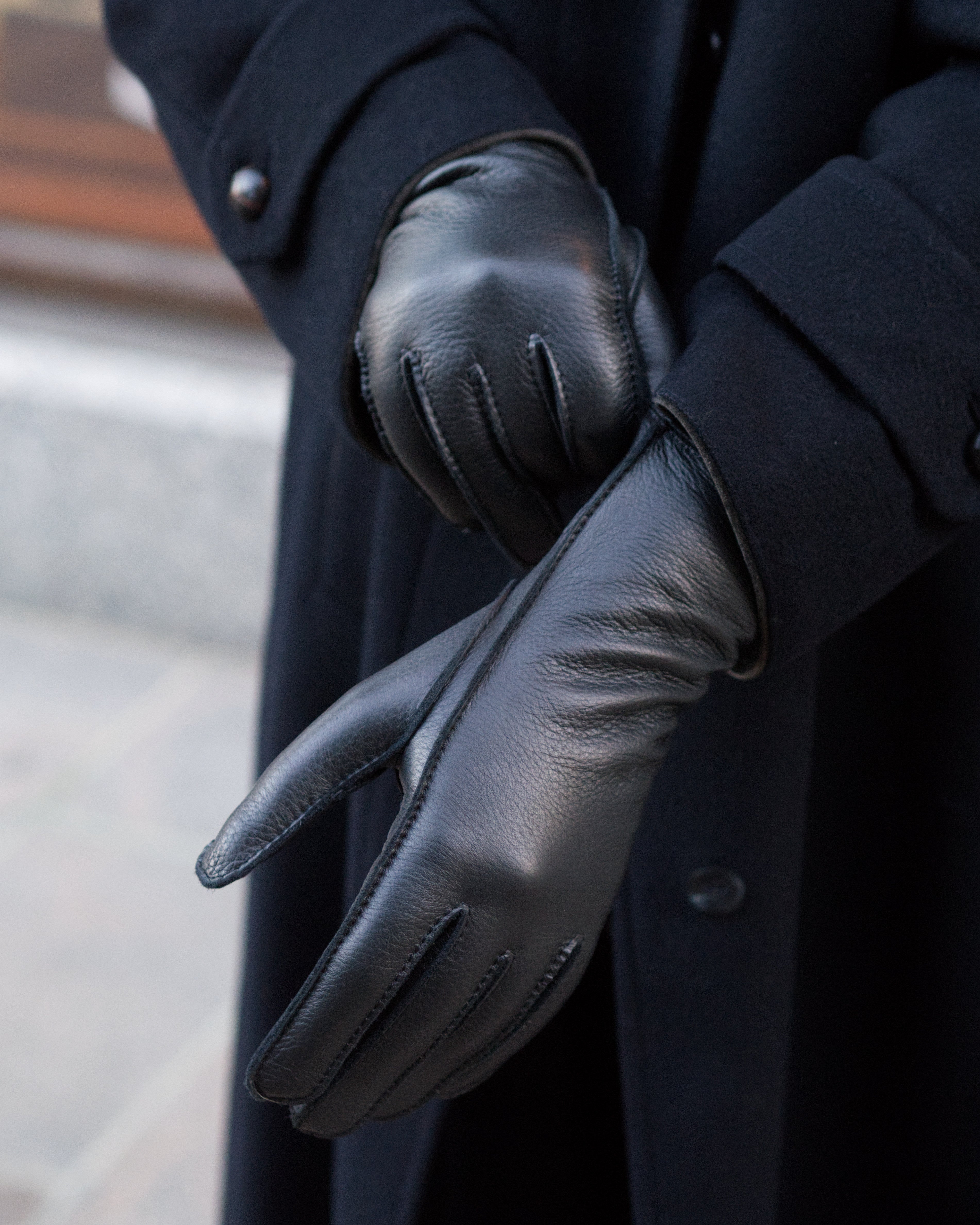 Women's black leather gloves made from deer leather. The warm cashmere lining makes the gloves comfortably warm for use from autumn to spring.