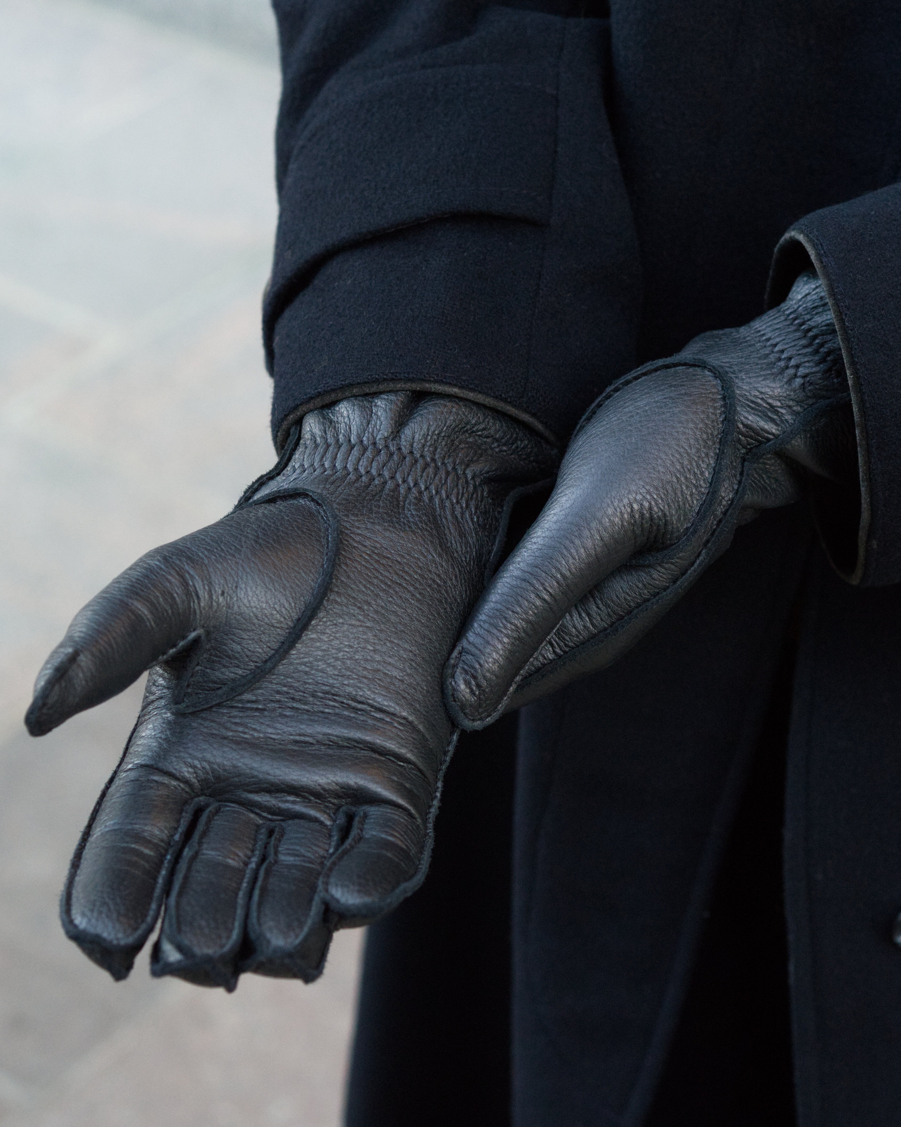 The gloves are made using a traditional table cutting method. In this process, excess stretch is removed from the leather, leaving room for adjustment. This ensures a perfect fit for the gloves.