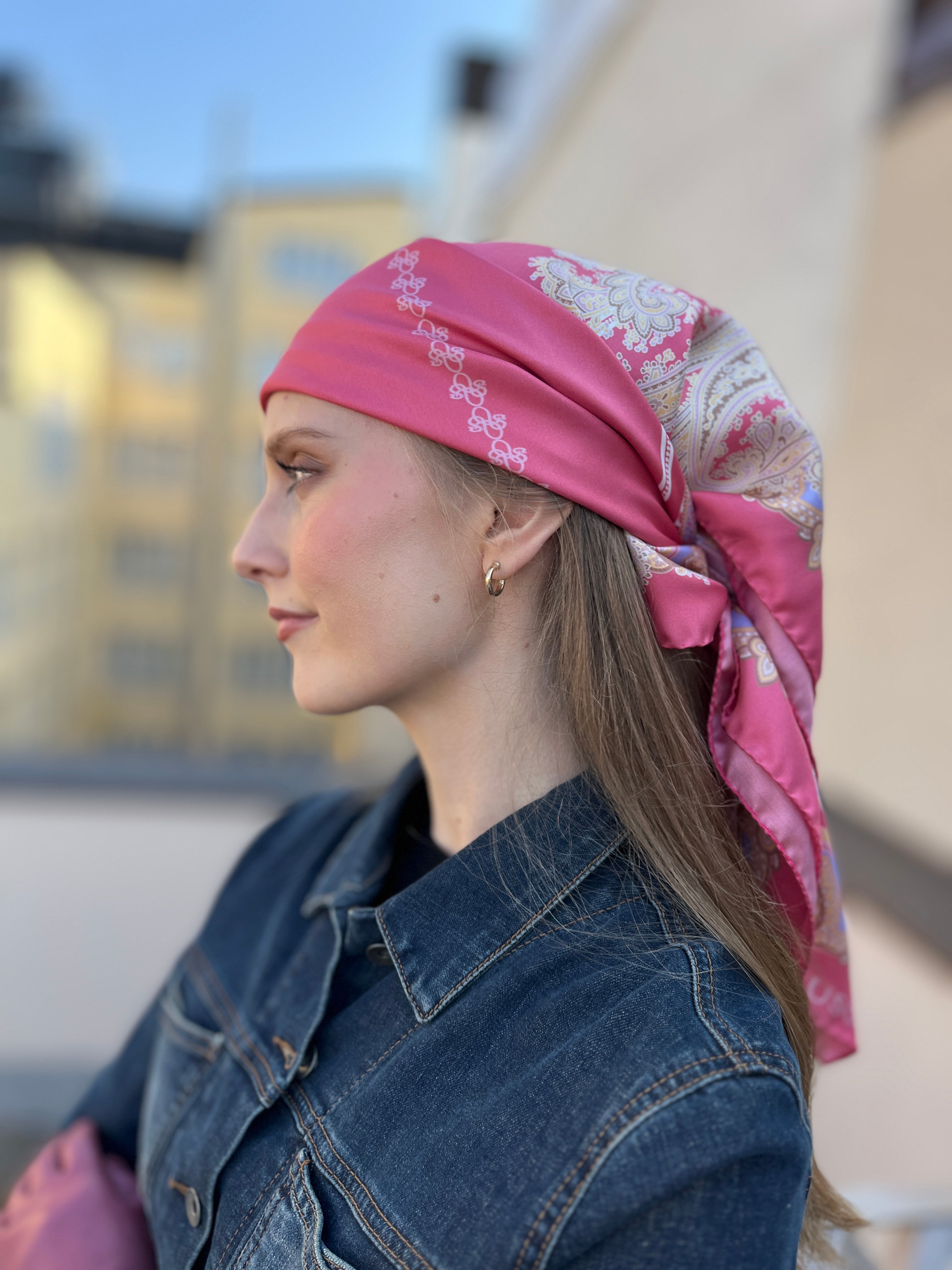 As a natural material, silk is unparalleled due to its durability and breathability. Silk's unparalleled properties include its heat transfer ability. In warm weather, silk cools the skin comfortably, but in cool weather it warms it slightly. In our opinion, 12 mom silk satin is just the right silk quality for a scarf. A silk scarf of the right thickness drapes beautifully and reflects colors brightly, but is still thin enough to wrap around your hair, for example.
