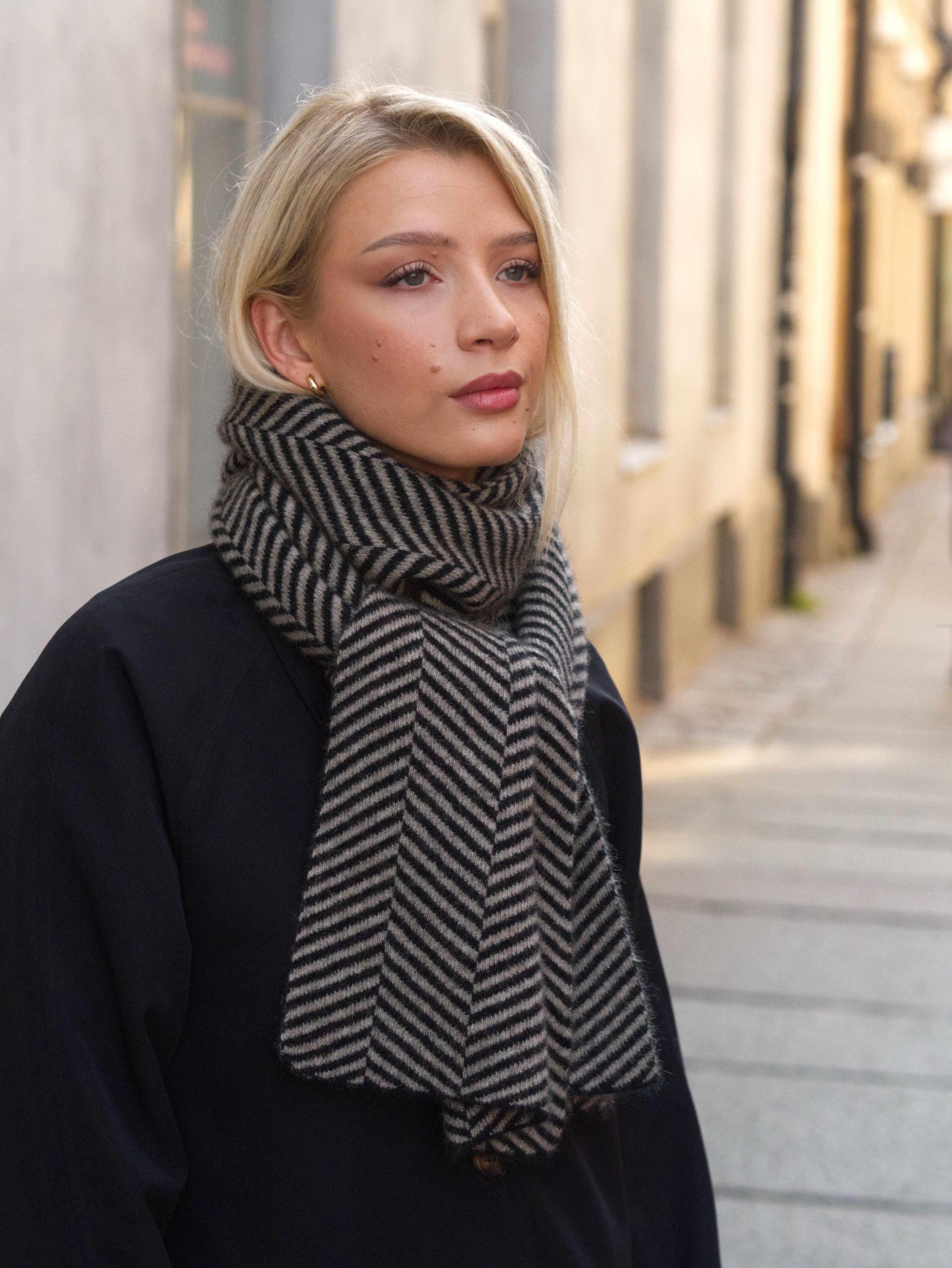VEGA Schal | Merino-Possum | Schwarz / Austernfarbe