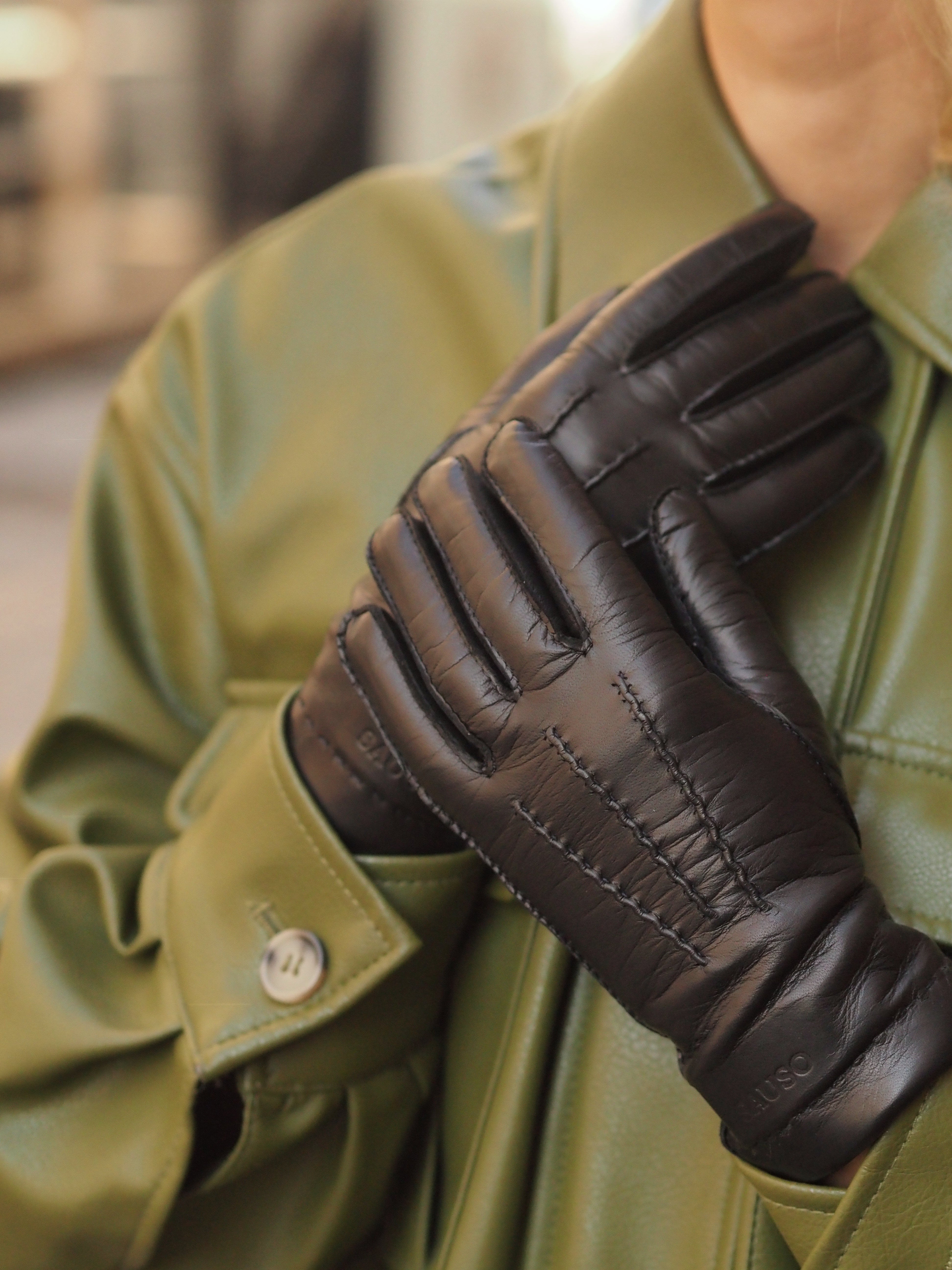Die Handschuhe sind aus äthiopischem Nappaleder oder Top-Grain-Leder gefertigt, das schön glänzend und weich ist. Das dünne und flexible Nappa vom Schafleder passt sich gut der Hand an, daher ist es immer ratsam, Handschuhe zu wählen, die von Anfang an eng anliegen.