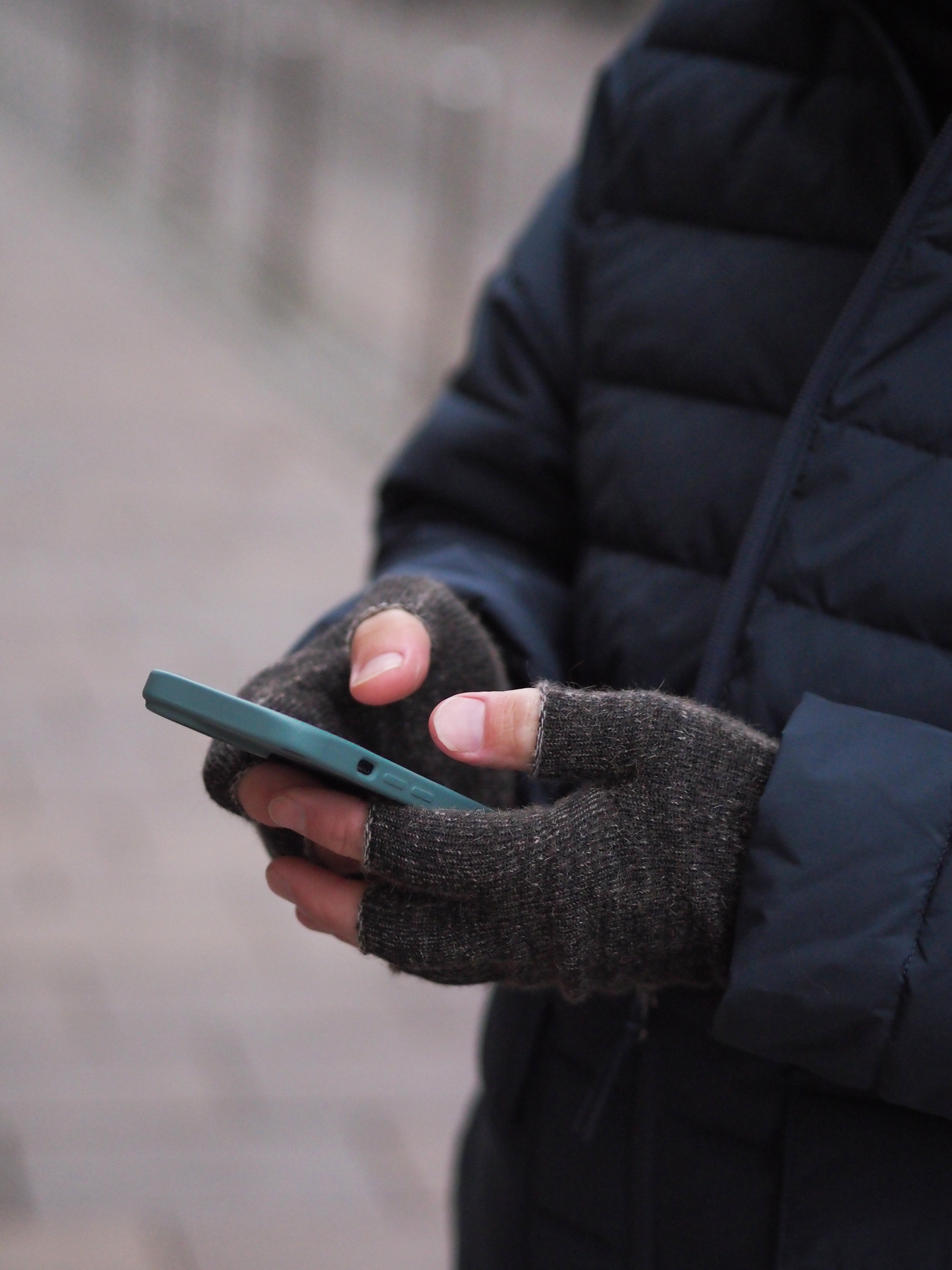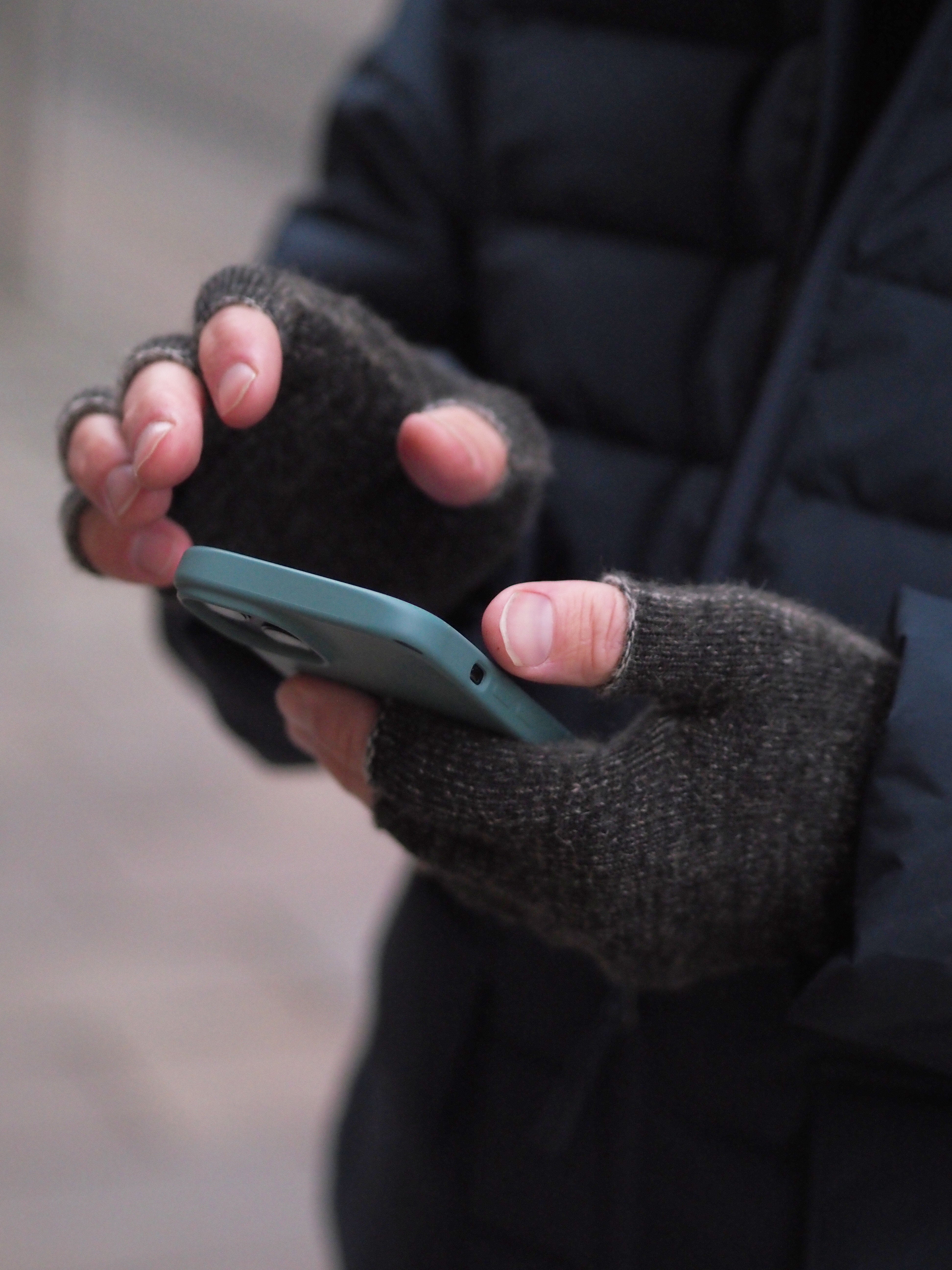• Gestrickte Handschuhe im Schnitt mit Fingeröffnung / Handwärmer