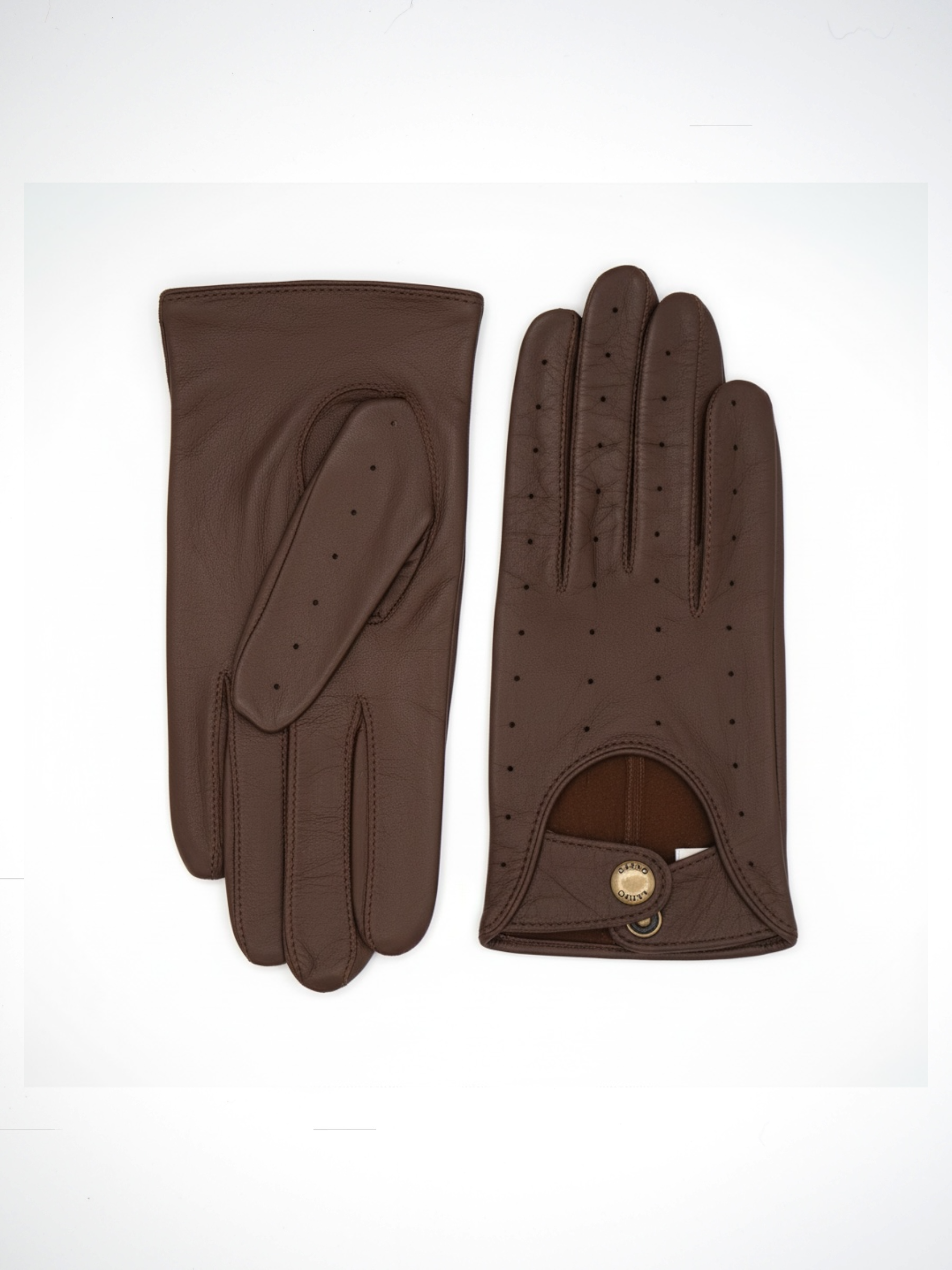 Karvalampaan-nahka on pehmeää ja joustavaa, joten se mukautuu hyvin käyttäjän käteen. Vuoriton käsine tuntuu toiselta iholta kädessä. Tyylikkäät perforoinnit lisäävät käsineen hengittävyyttä ja tuovat kaunista koristusta käsineeseen.