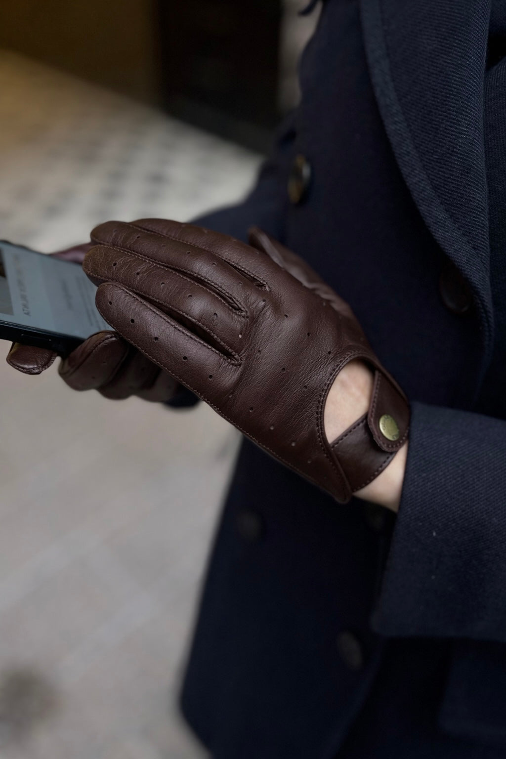 Naisten tummanruskeat kosketusnäyttöajokäsineet. Vuorittomat käsineet ovat yleistymässä niin autoissa kuin julkisissa tiloissakin, ajokäsineet ovat täydellinen asuste myös kadulle. Voit helposti käyttää puhelintasi tai mitä tahansa muuta laitetta, jota käytetään koskettamalla näyttöä.