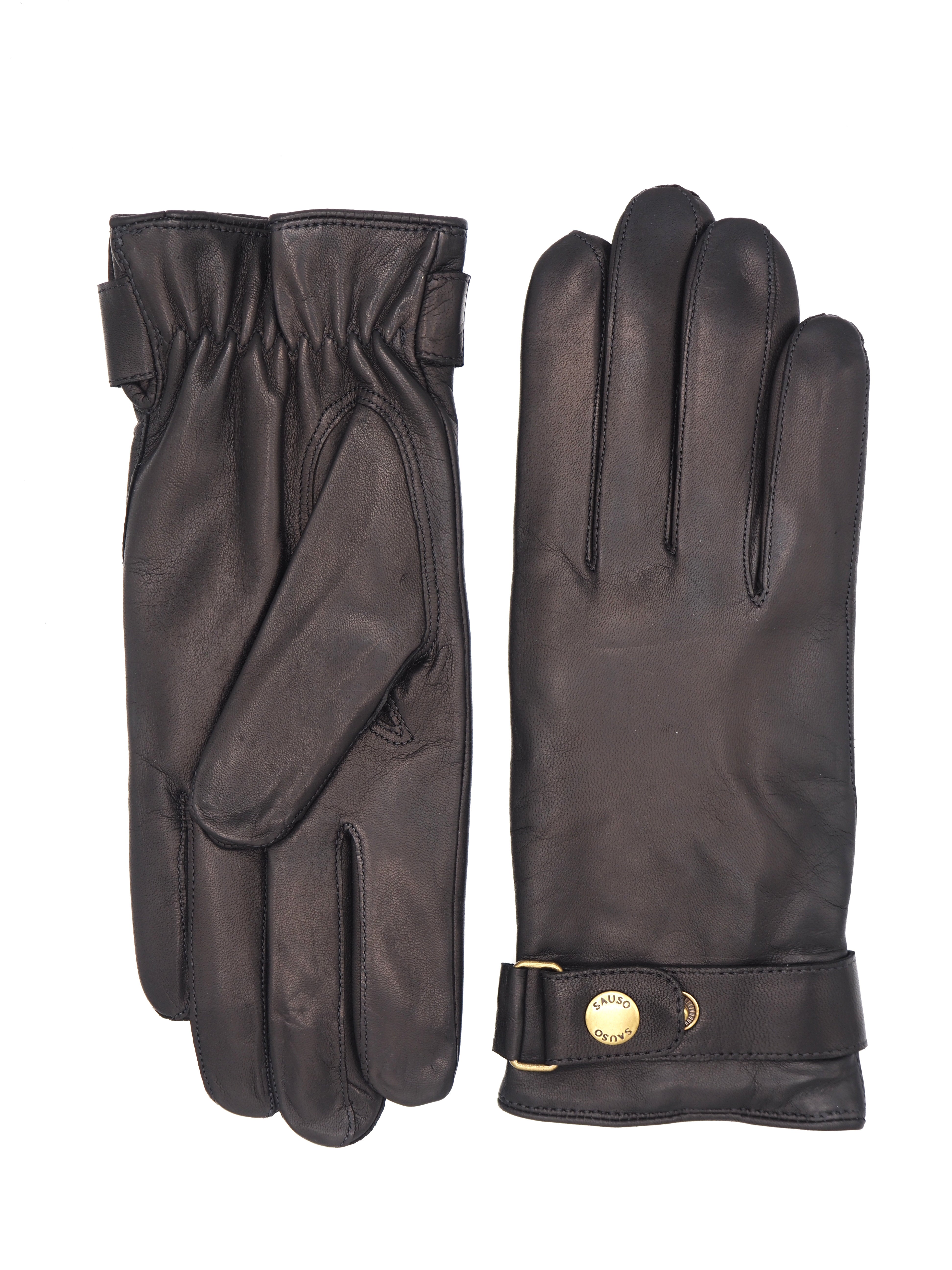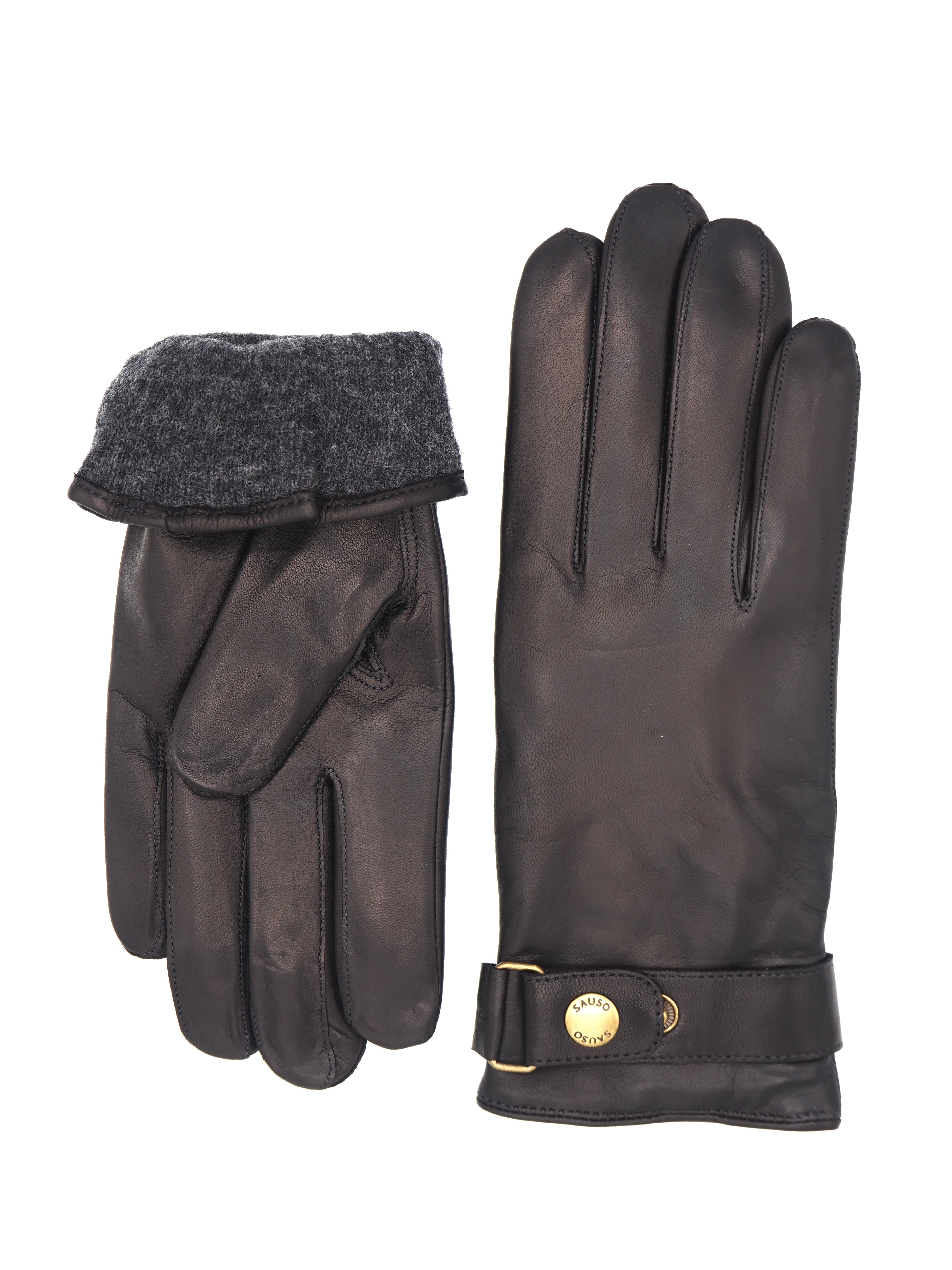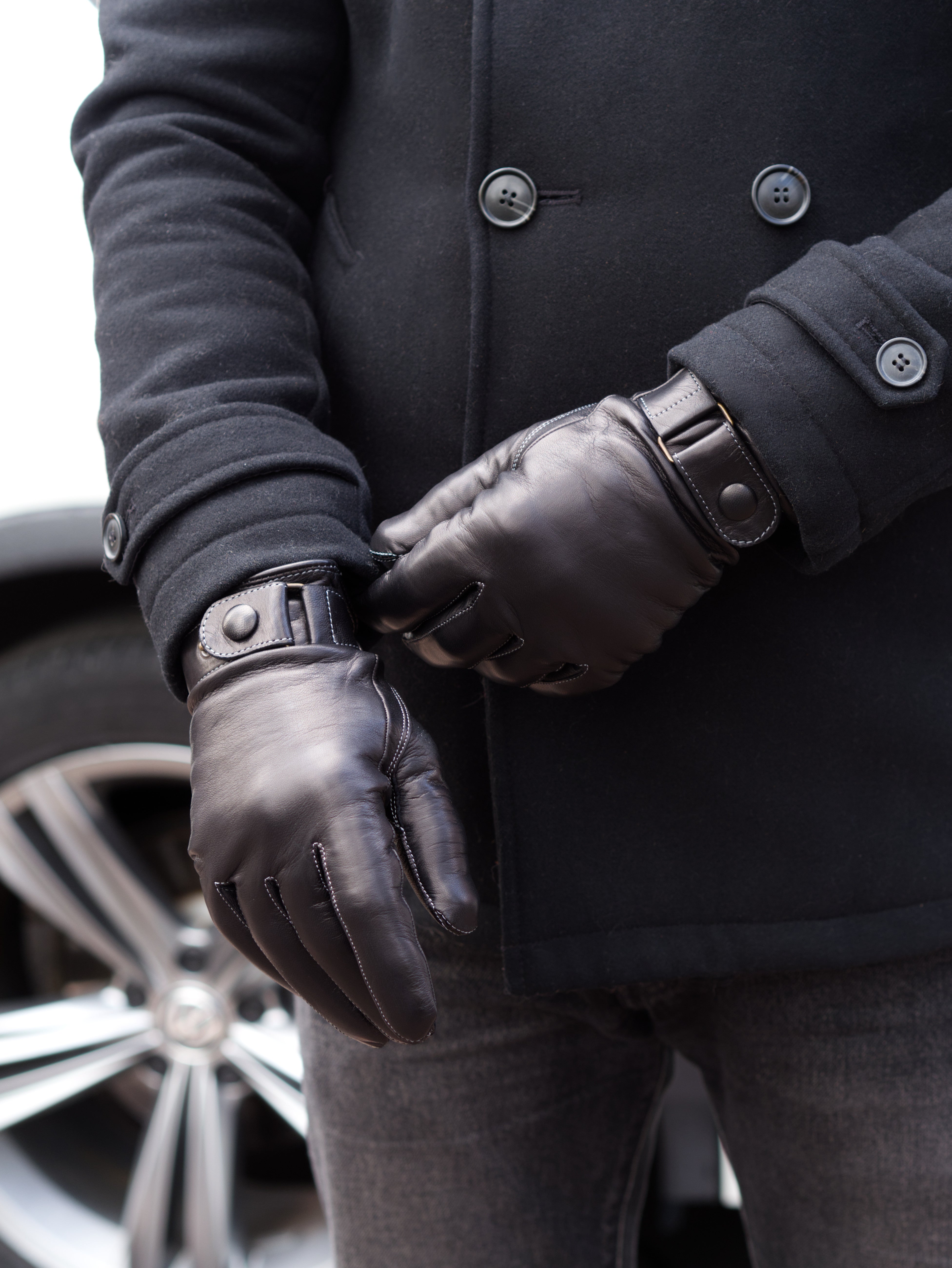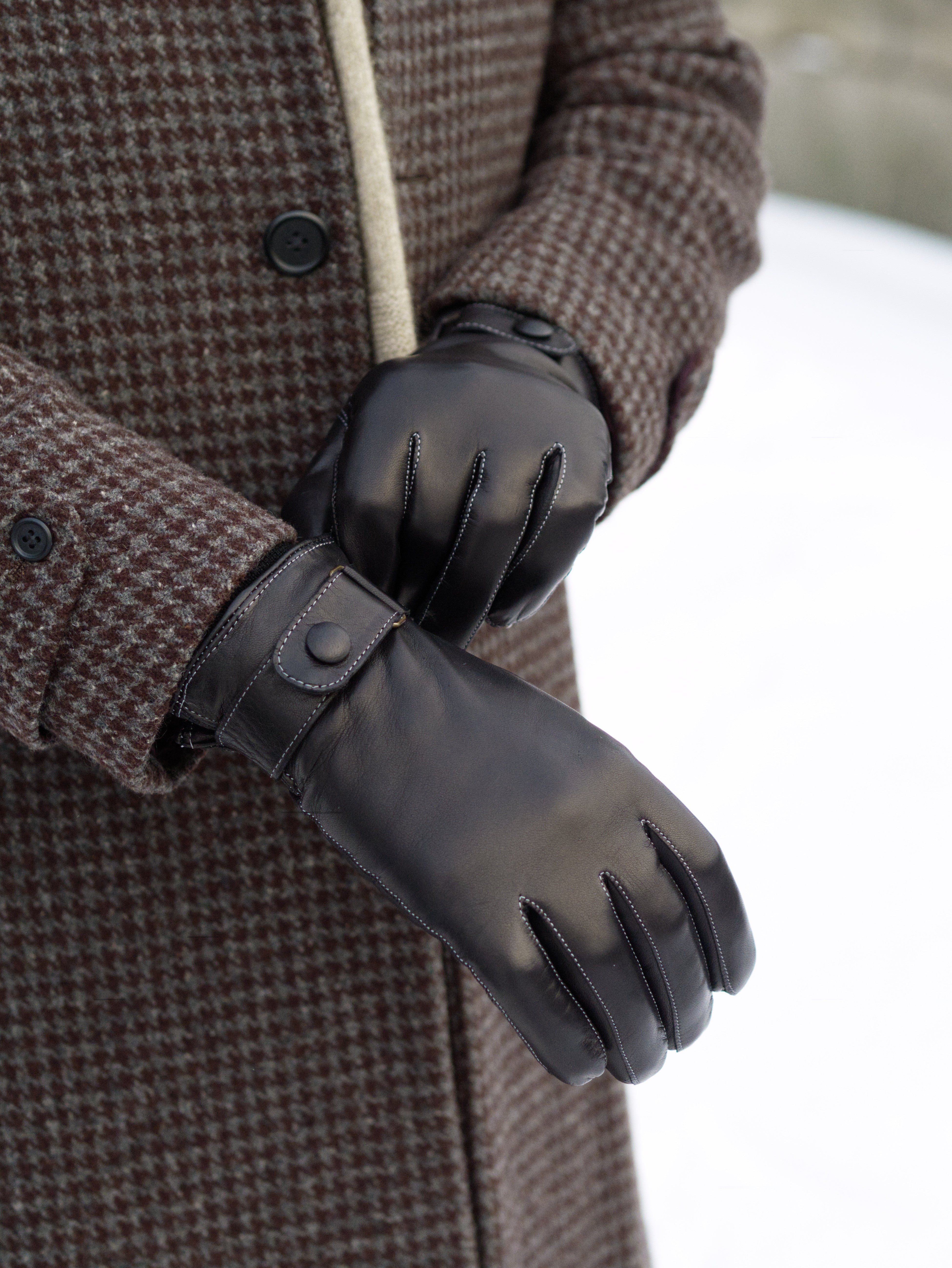 Schwarze Herren-Winterhandschuhe mit stilvollen Details. Nahtgenäht mit Kontrastnähten.