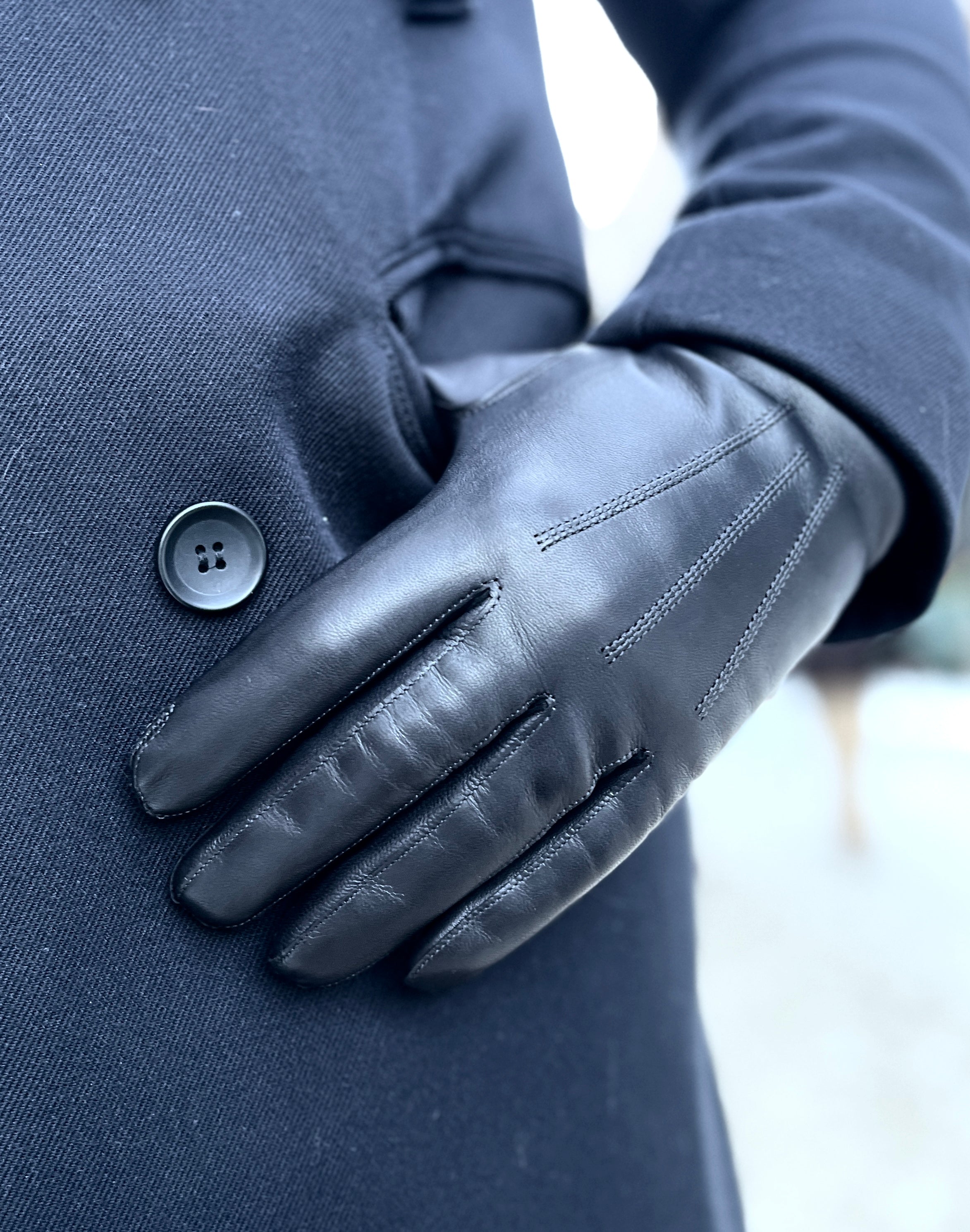 A classic glove, handcrafted from soft water repellent sheepskin leather. This leather is thin and flexible, which makes it feel light and forms comfortably in the hand. Gloves are practical if you need for example to open wet  car door or touch anything wet during the day. Merino wool lining is warm and comfortable.