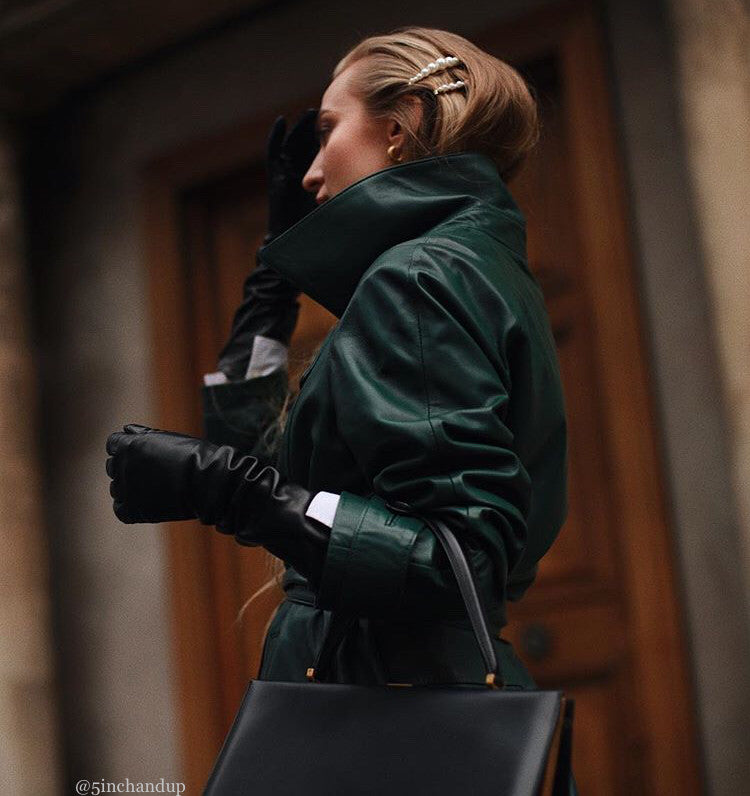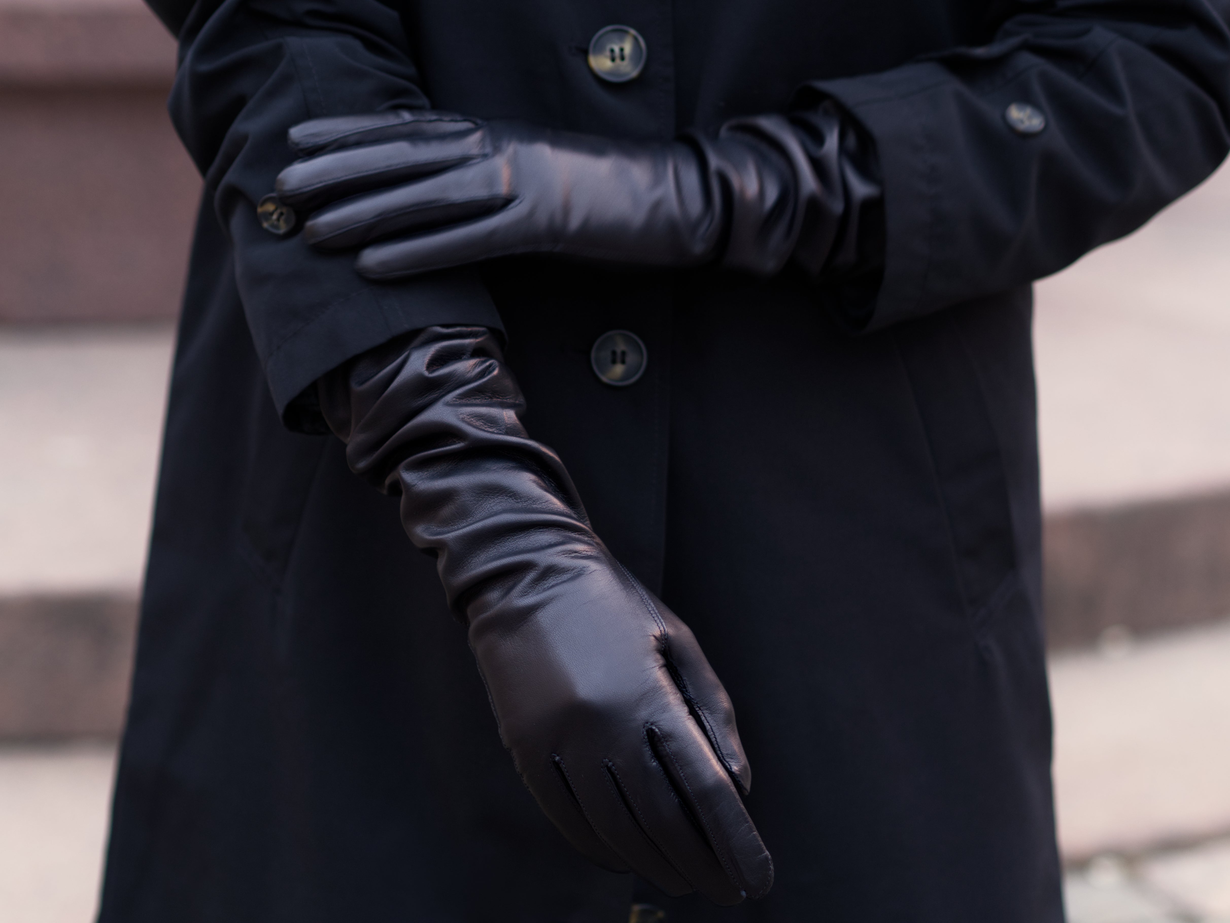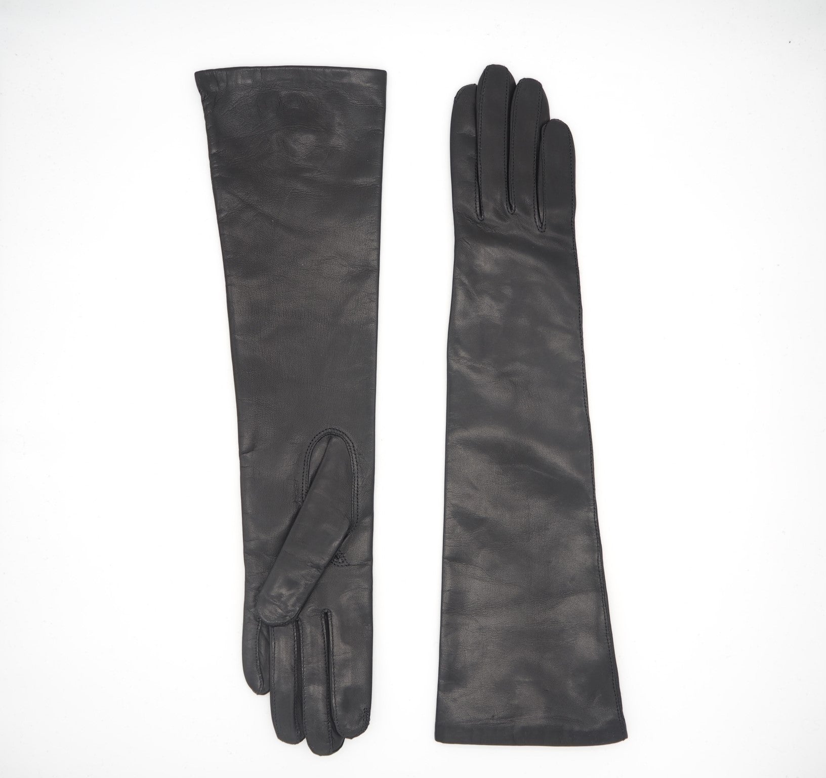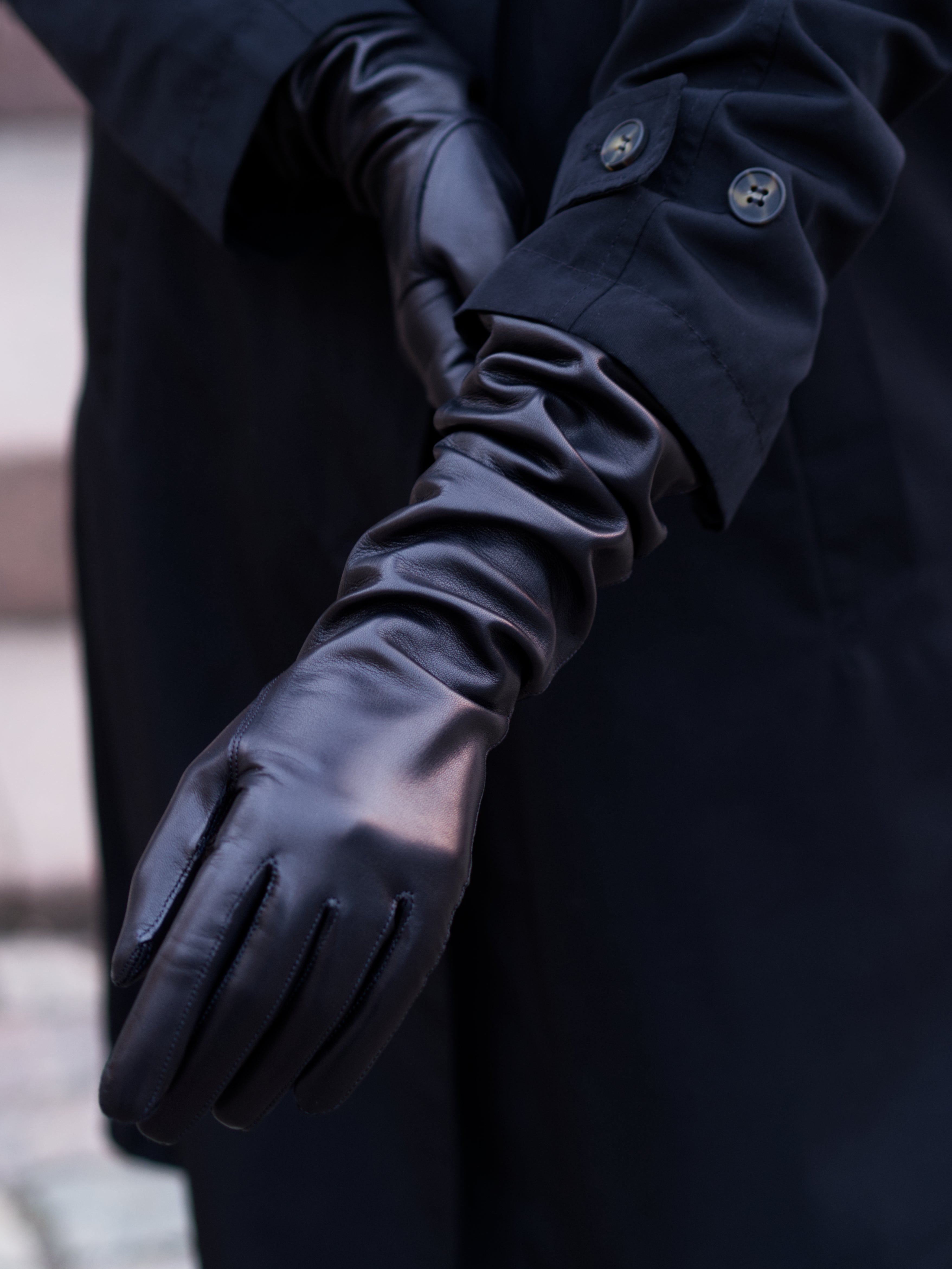 Enchanting long-handled gloves. My favorite gloves are suitable for both everyday life and parties. The length of the glove shaft is 8” (approx. 20cm) so it also works great as a showy party glove! The elegant long sleeve also goes well with short and/or wide-sleeved coats or capes. Because the leather and silk lining are so thin, the glove sleeve fits well under the jacket sleeve. The versatile gloves are also practical to warm the arm with short-sleeved tops under the jacket.
