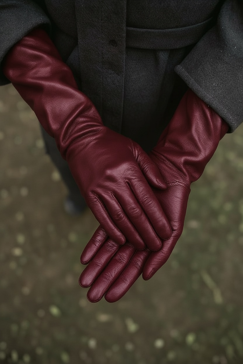 The elegant long arm also goes well with short and/or wide-sleeved coats or capes. Because the leather and silk lining are so thin, the arm of the glove fits well under the sleeve of the coat. The multi-purpose gloves are also practical to warm the arm with short-sleeved tops under the coat.