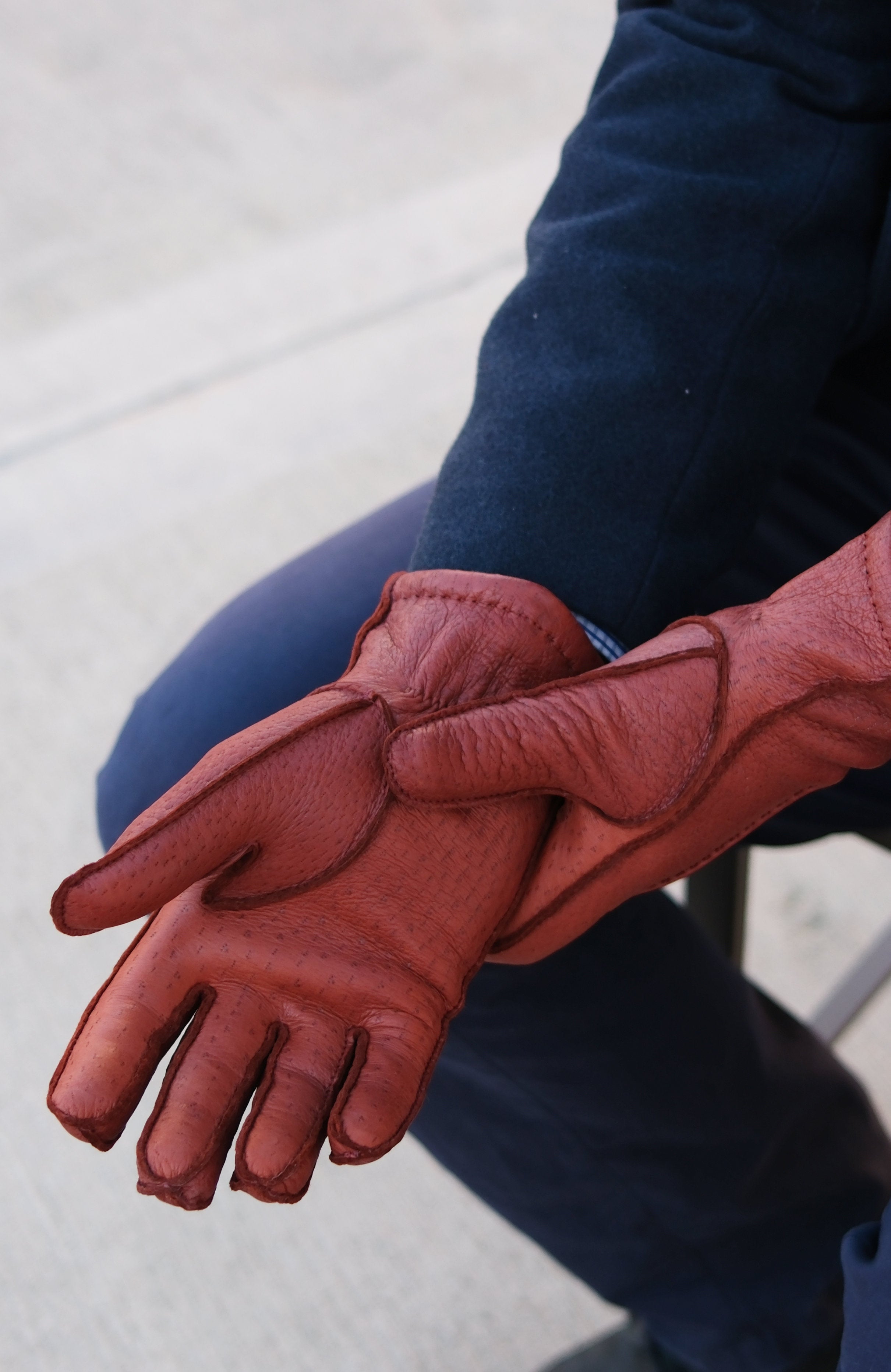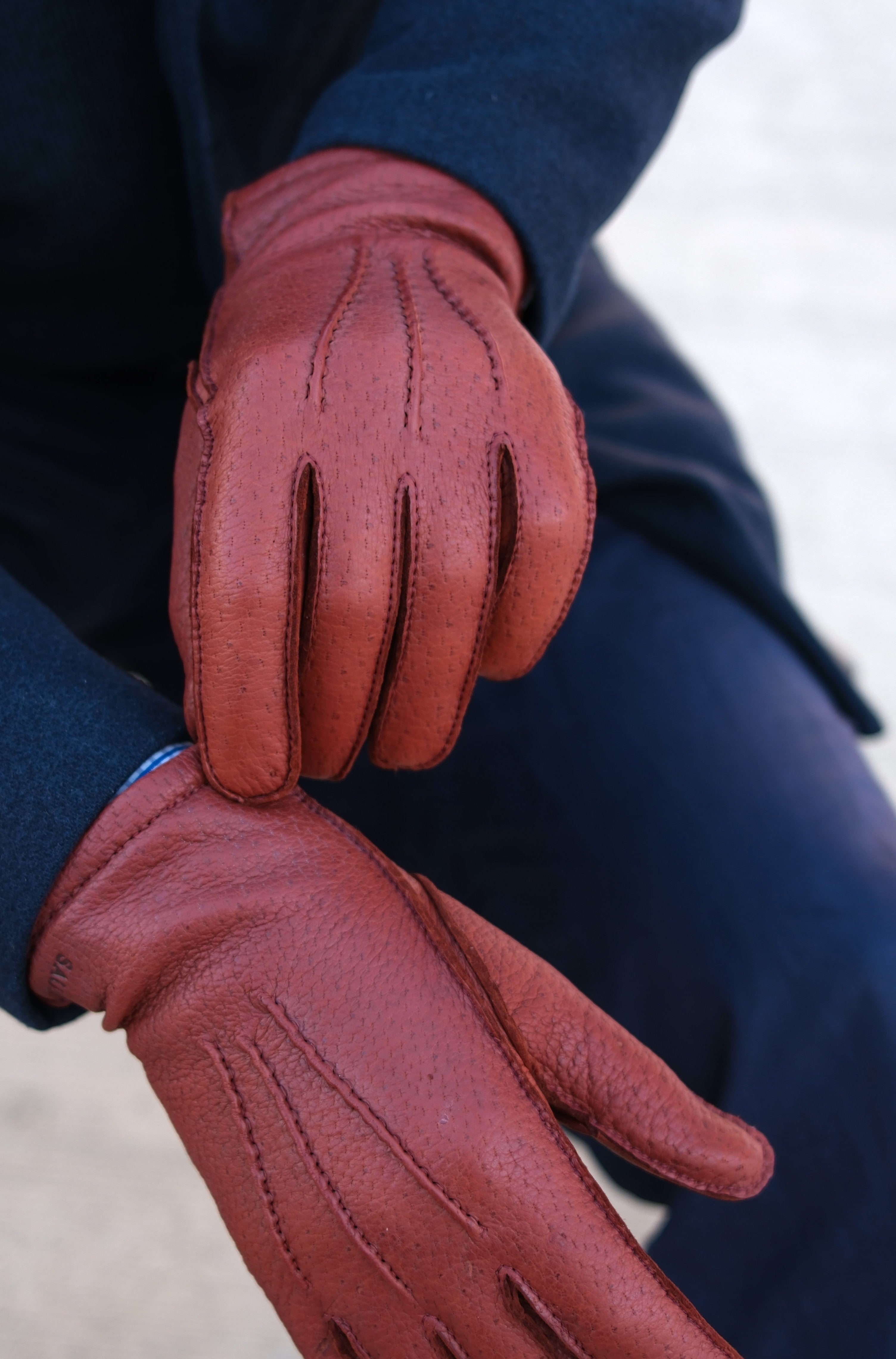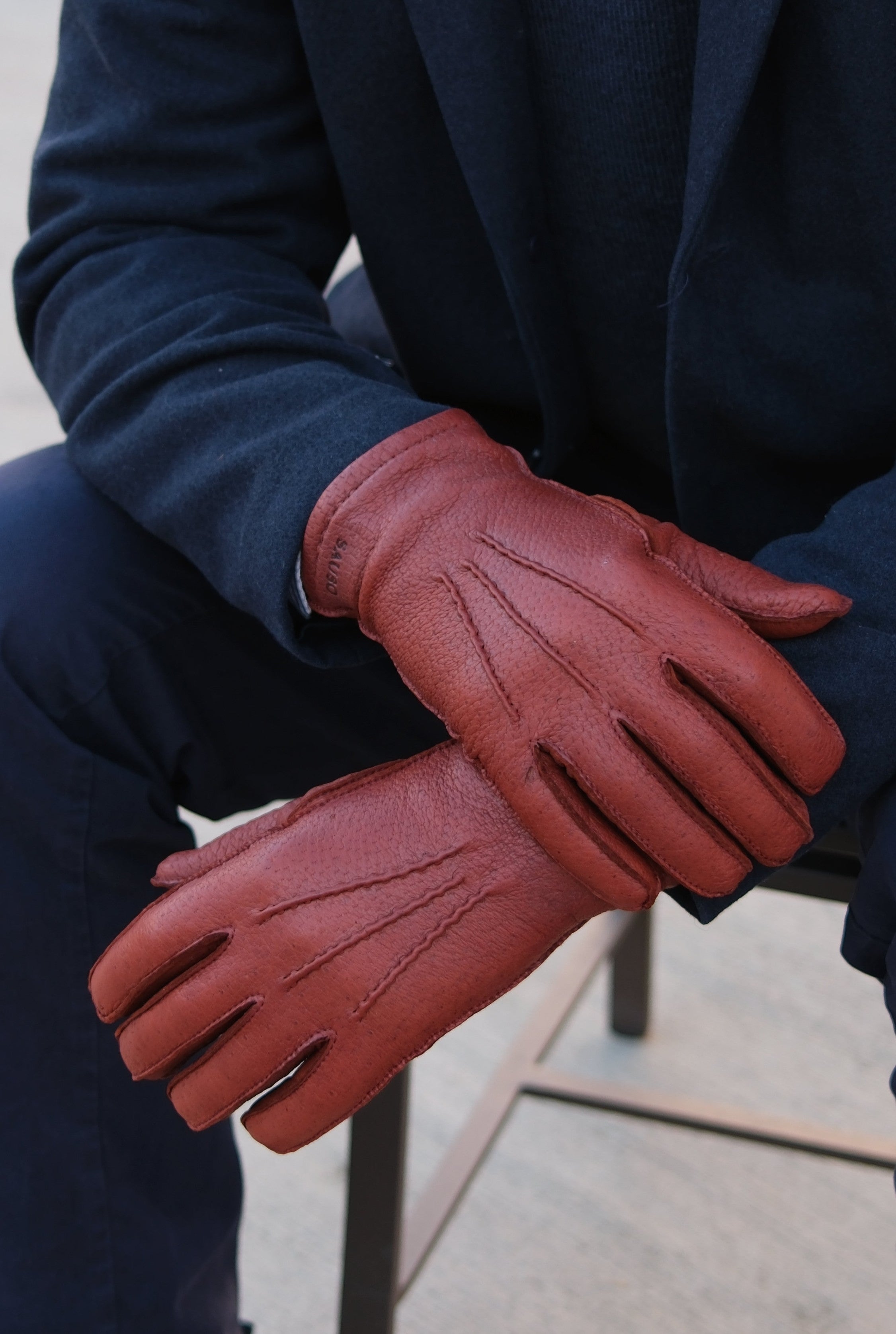 Peccary gloves. Men's reddish-brown peccary gloves keep your hands warm even in cold winter weather. This classic, handcrafted glove is the nobility of gloves and leathers.