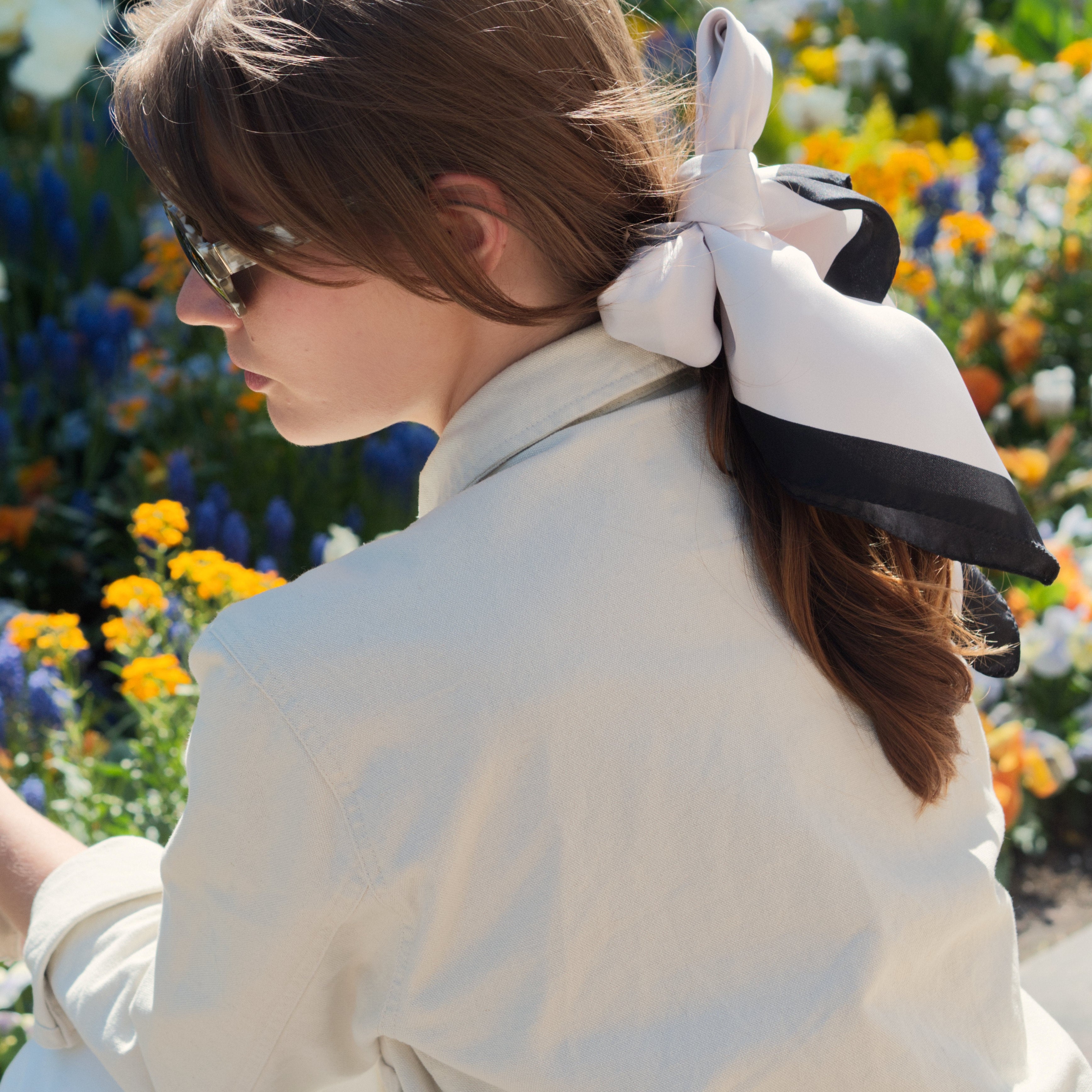 Klassinen silkkihuivi on yksi monikäyttöisimmistä asusteista, joka toimii vuodenajasta toiseen. Silkkihuivin voi kietoa hiuksiin, päähän, kaulaan, ranteeseen tai sitoa käsilaukkuun.