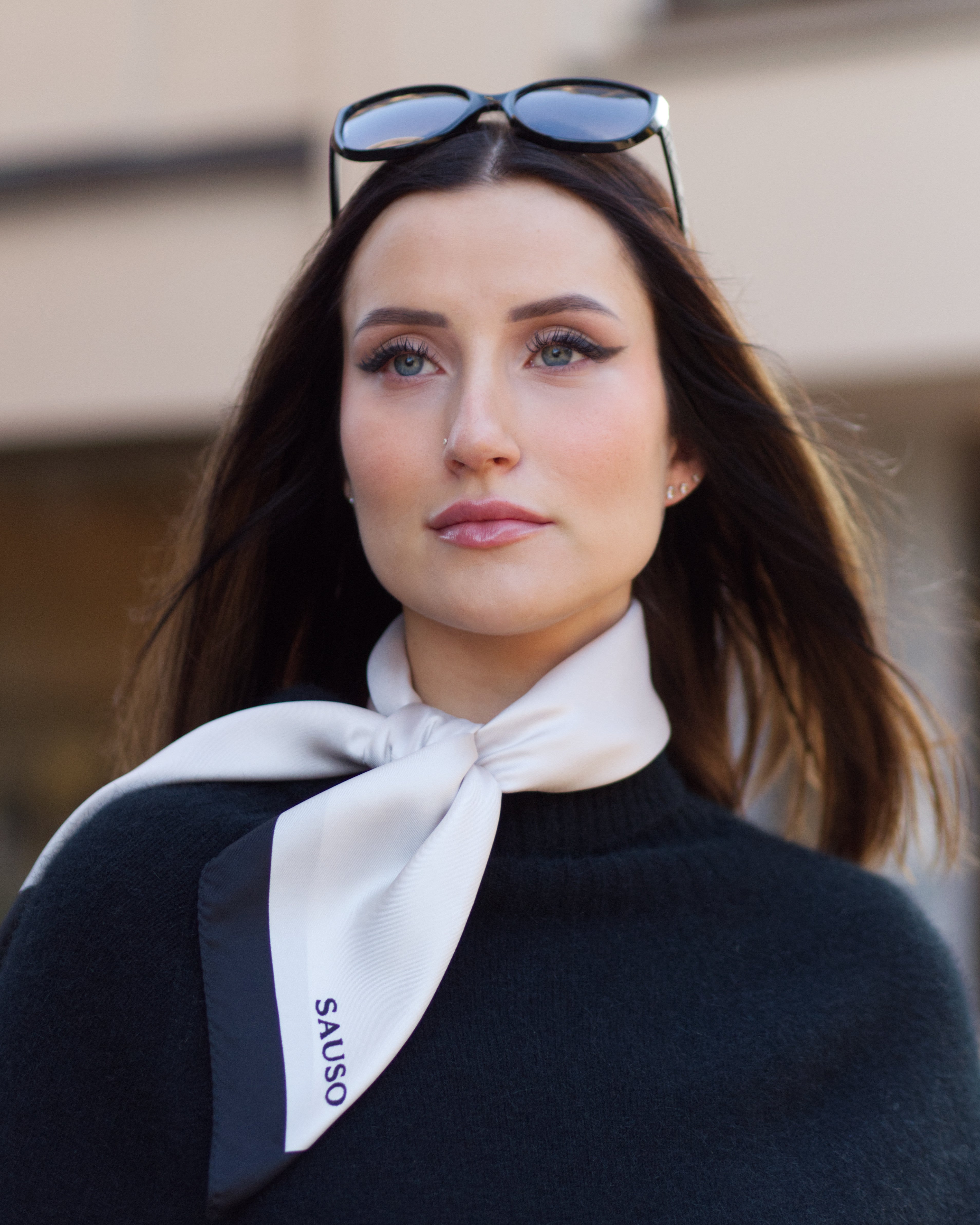 Mustavalkoinen huivi sopii asuun kuin asuun. Klassiset värit eivät vanhene trendien mukana.