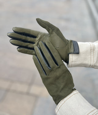 Handmade light leather gloves. Lightweight gloves are comfortable to wear regardless of the season. The gloves provide protection when doing business in the city and when driving a car, for example. Carefully crafted artisan gloves, the hand sits like a second skin. The natural materials breathe on the skin, so they must be comfortable to use even in warm weather. A wide selection of gloves can be found in different colors and materials.