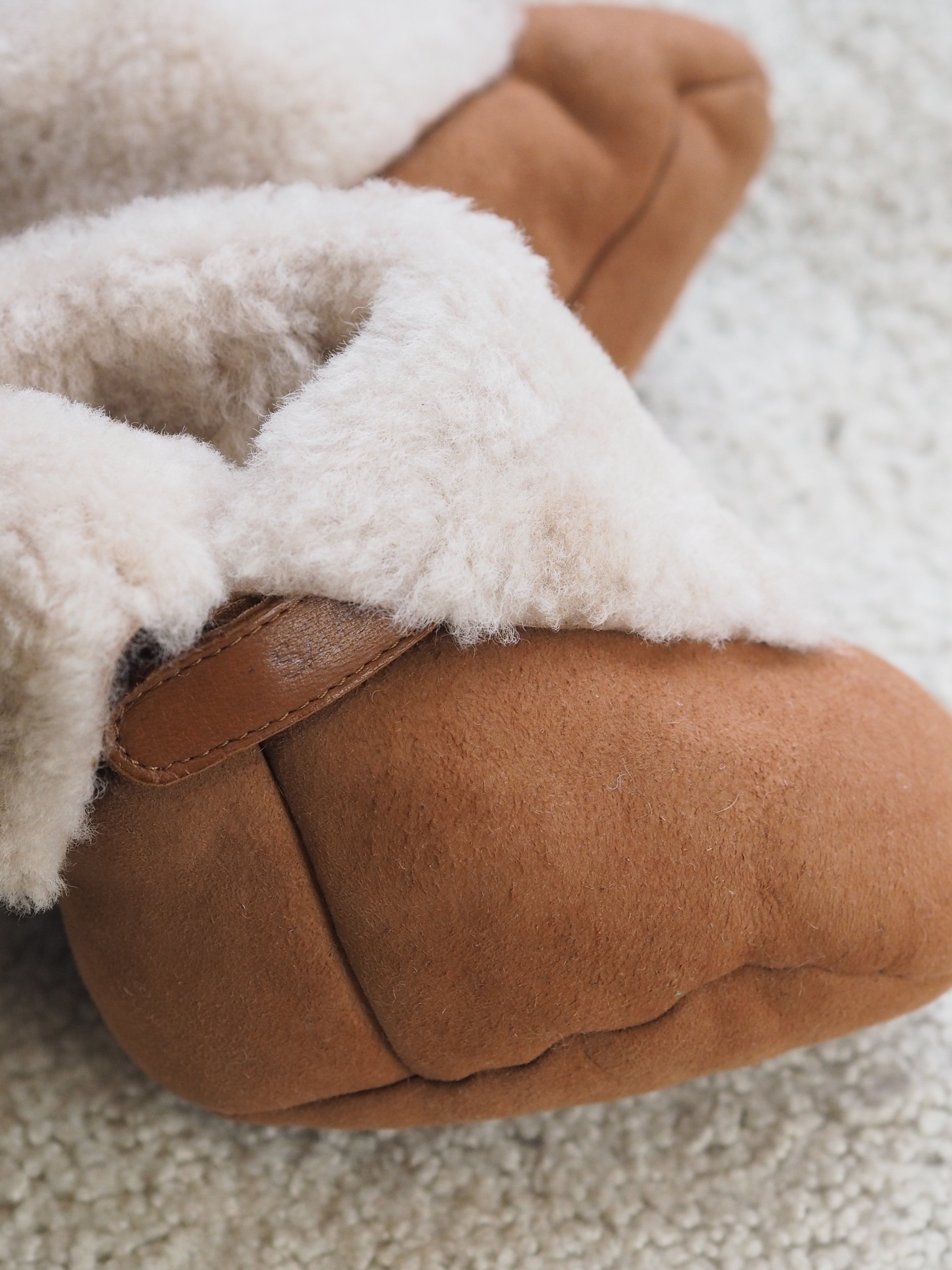 Kauniit käsityönä valmistetut lasten tossut lampaanturkiksesta. Tossut sopivat sisätossuiksi ja lämmittämään talvella rattaissa. Kaunis luonnollinen väri on samaan aikaan perinteinen sekä ajankohtainen. Nämä tossut ovat juuri sellaiset, jotka ilahduttavat sukupolvesta toiseen.