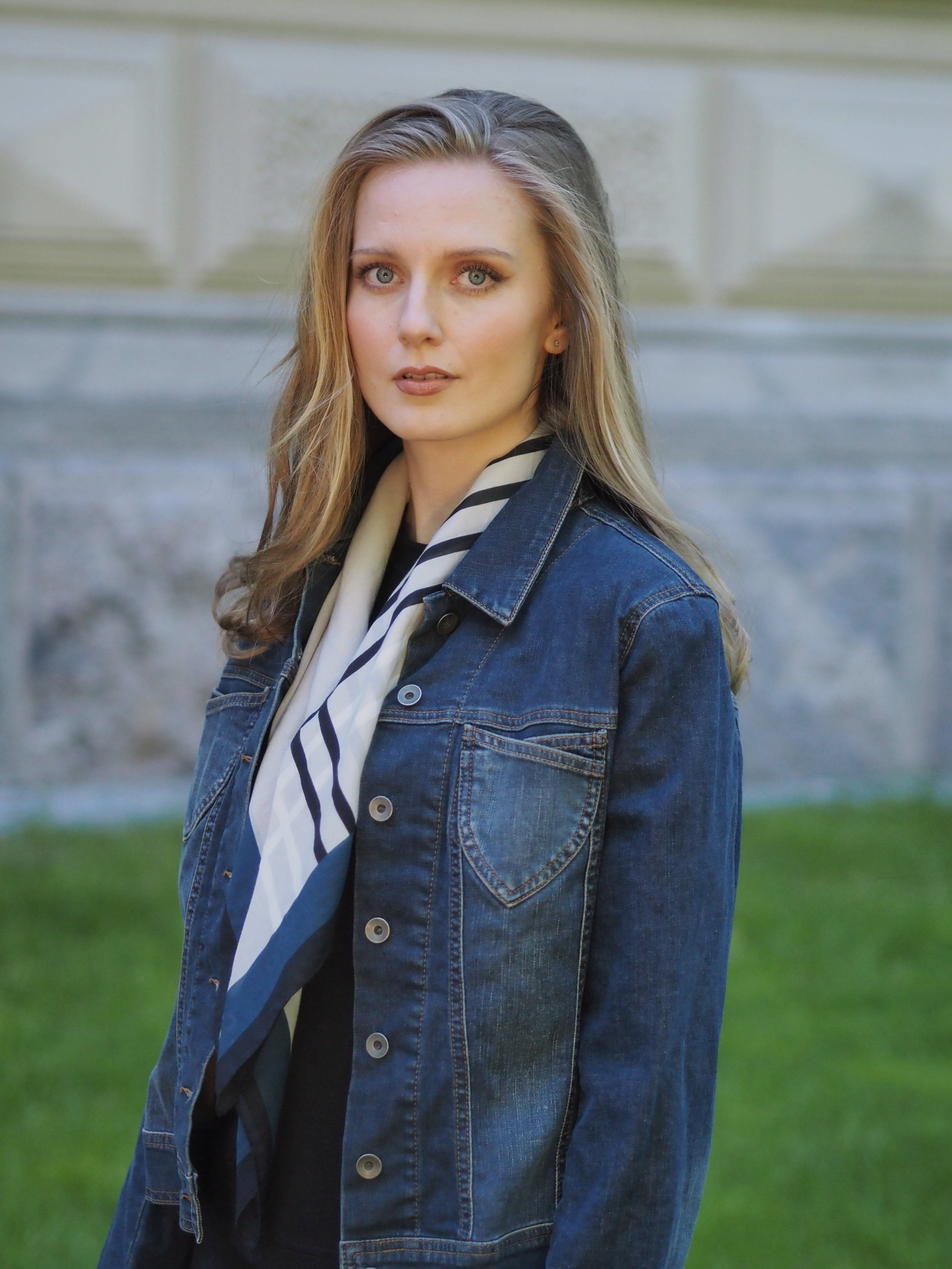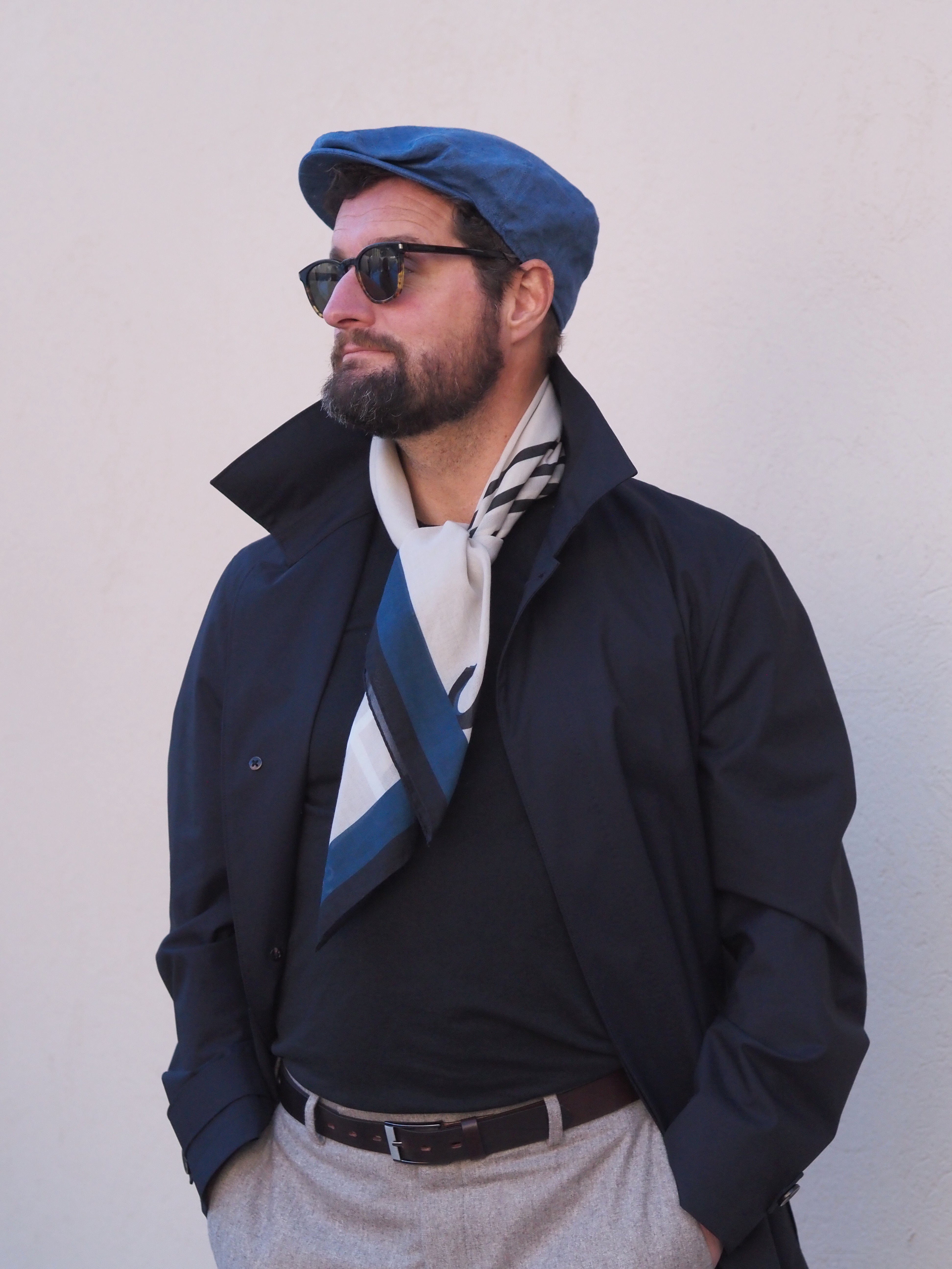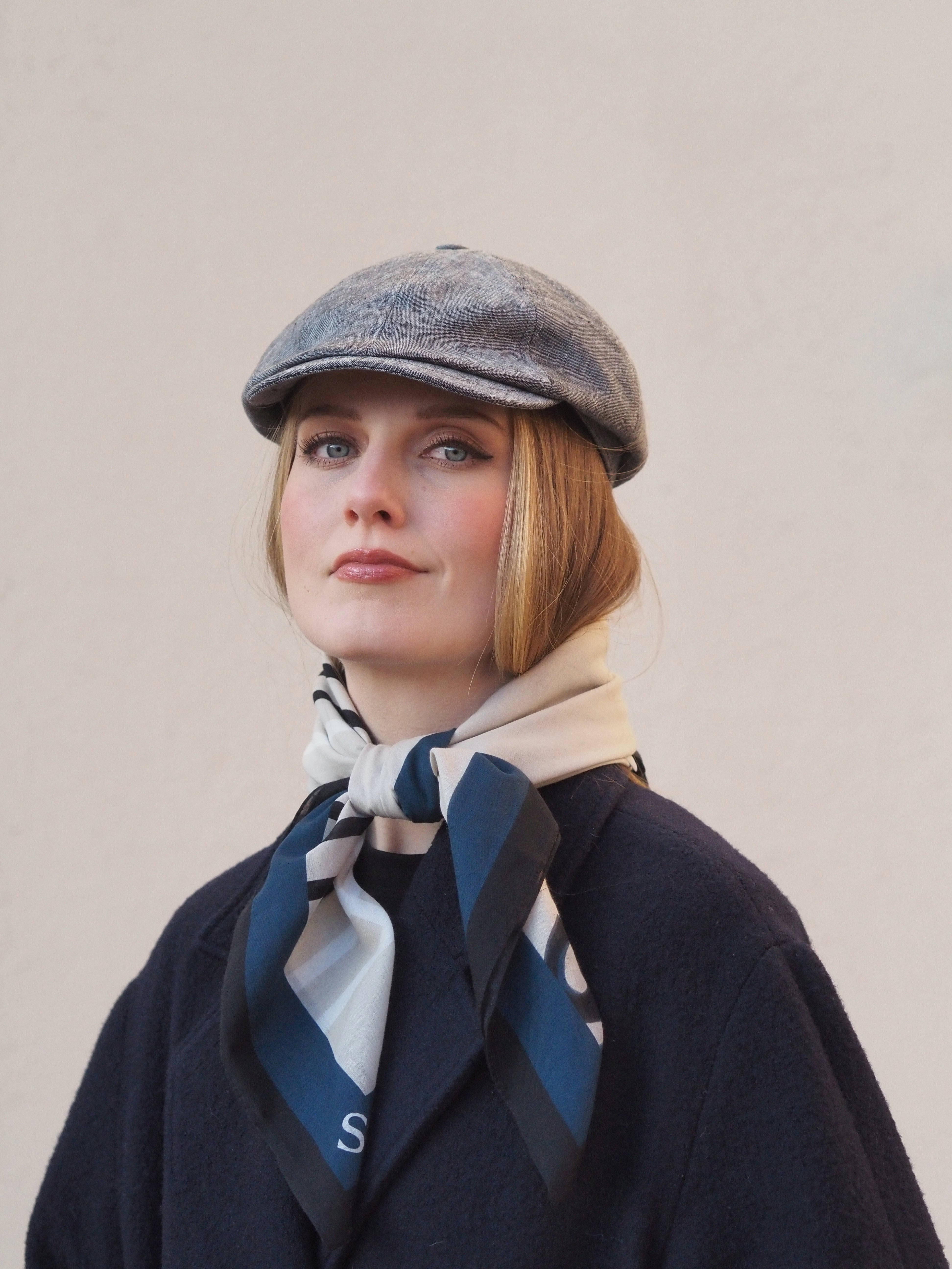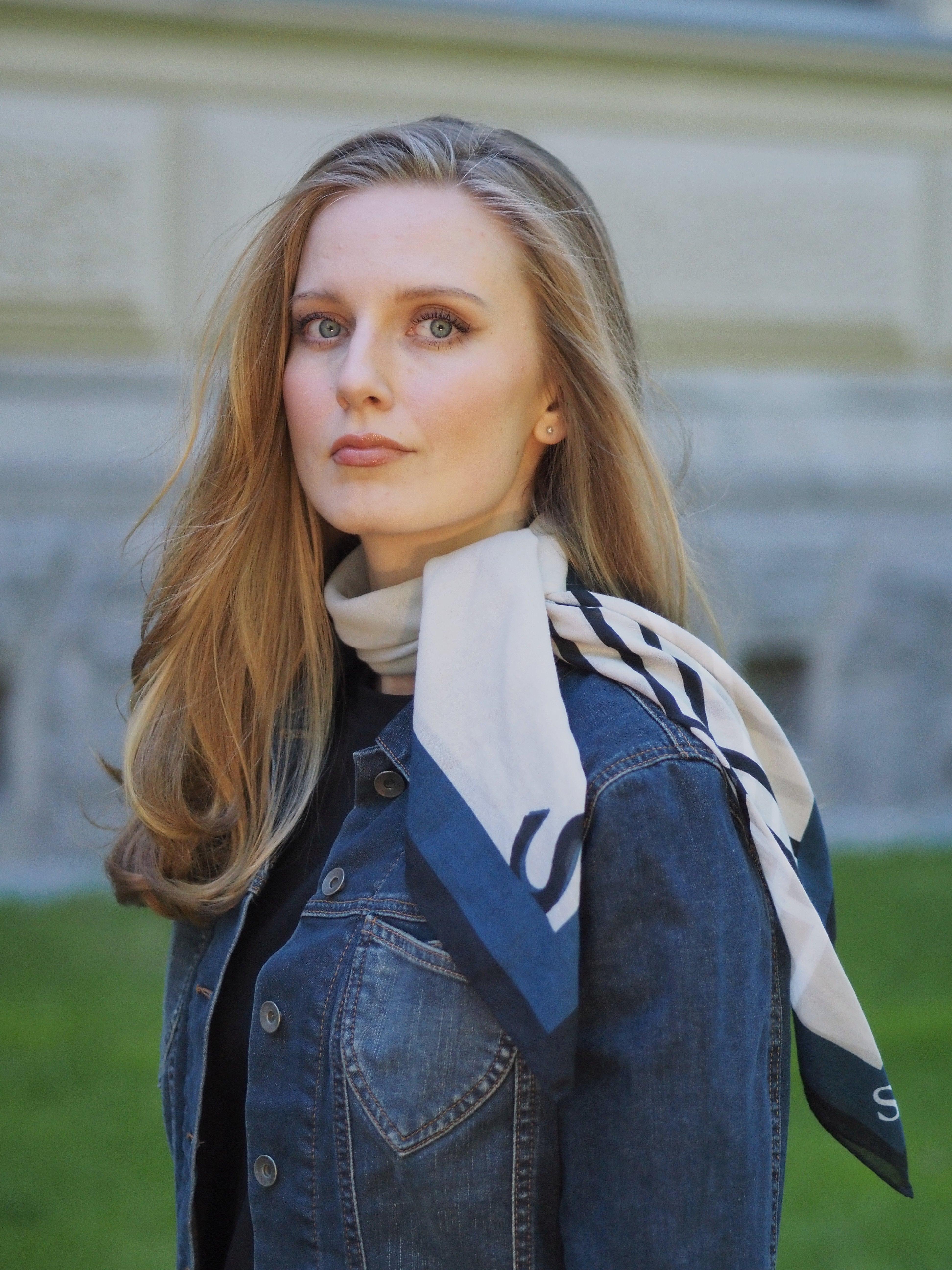 Italiassa tehty, pehmeä ja laadukas puuvillahuivi. Klassinen beige, jossa musta reuna, mustat ja valkeat raidat ja denimin sininen efekti raita. Koko 90x90cm menee kaulalle, päähän, vyötärölle vyöksi ja jopa topiksi. Huivi, jolla luot tyyliä vaikkapa perus T-paidalle tai kauluspaidalle tai suojaat kaulaa tai päätä tuulelta. Huivi, joka ei ole tukala ja vie tilaa kaulalla, mutta antaa paljon tyylikästä ilmettä ja suojaa. Italialainen puuvillakangas on ihanan pehmeä ihoa vasten.