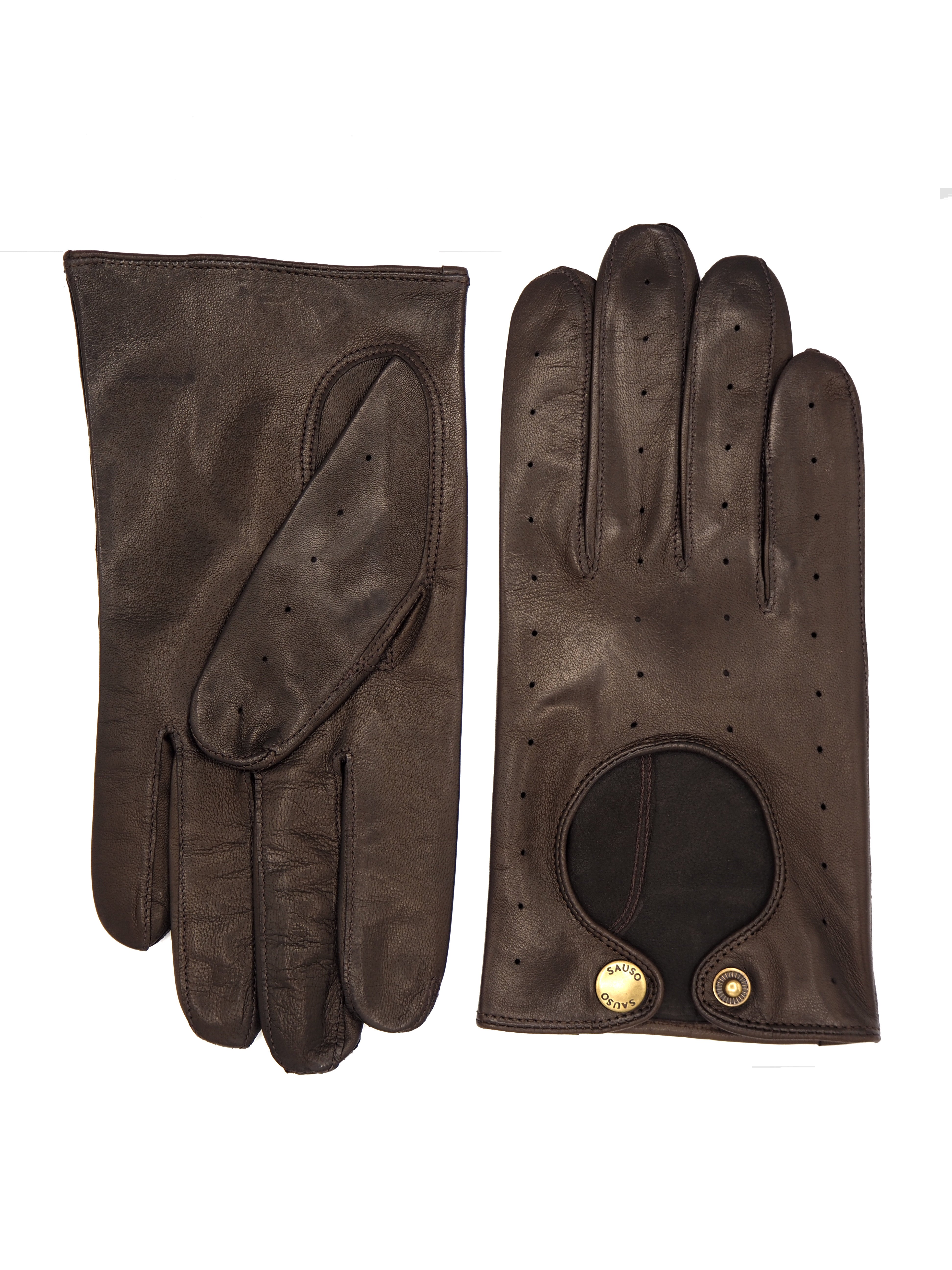 Erkki on klassinen miesten ajokäsine. Käsineessä on koristeellisena funktiona perforointeja ja nappikiinnitys.