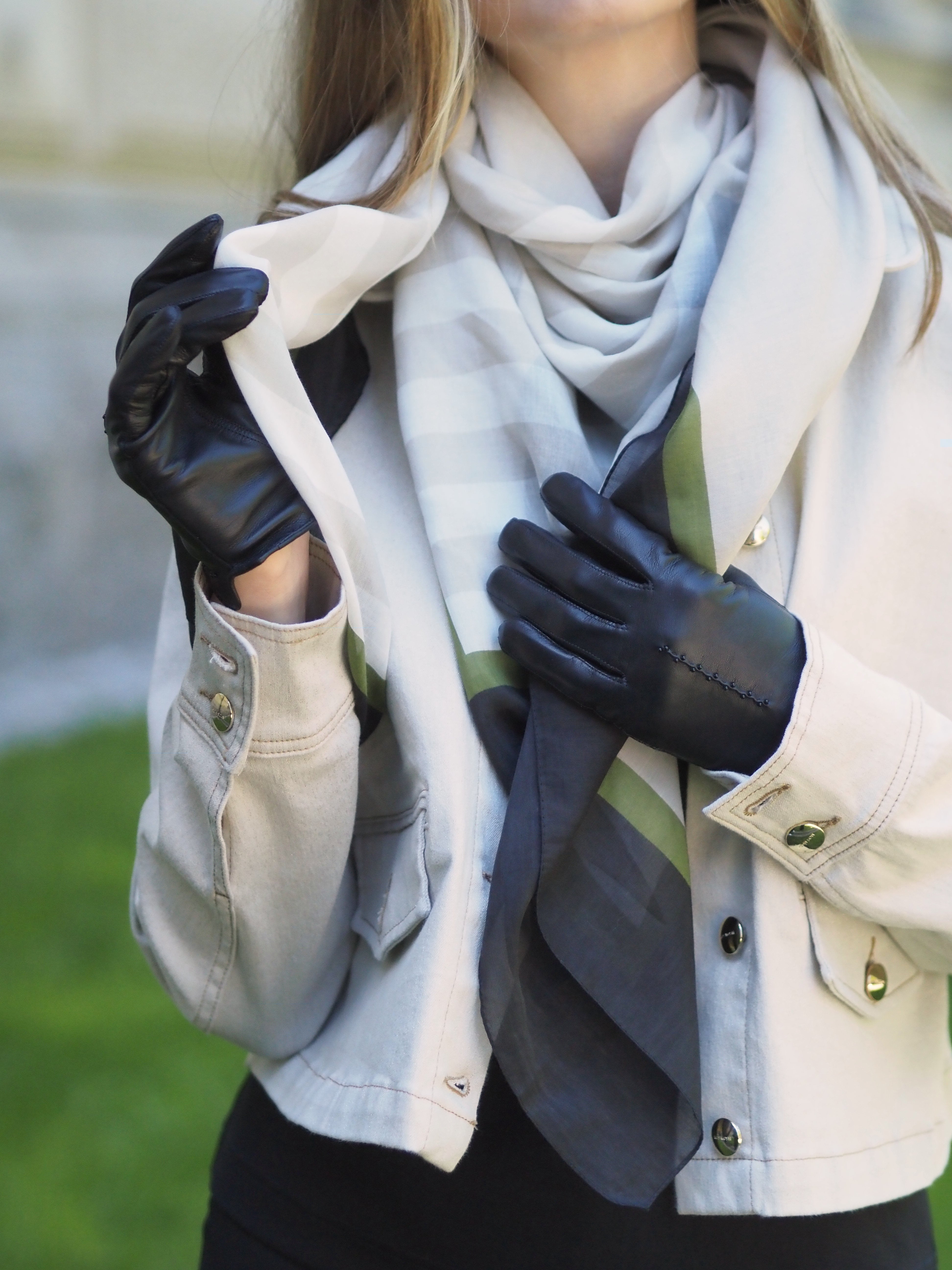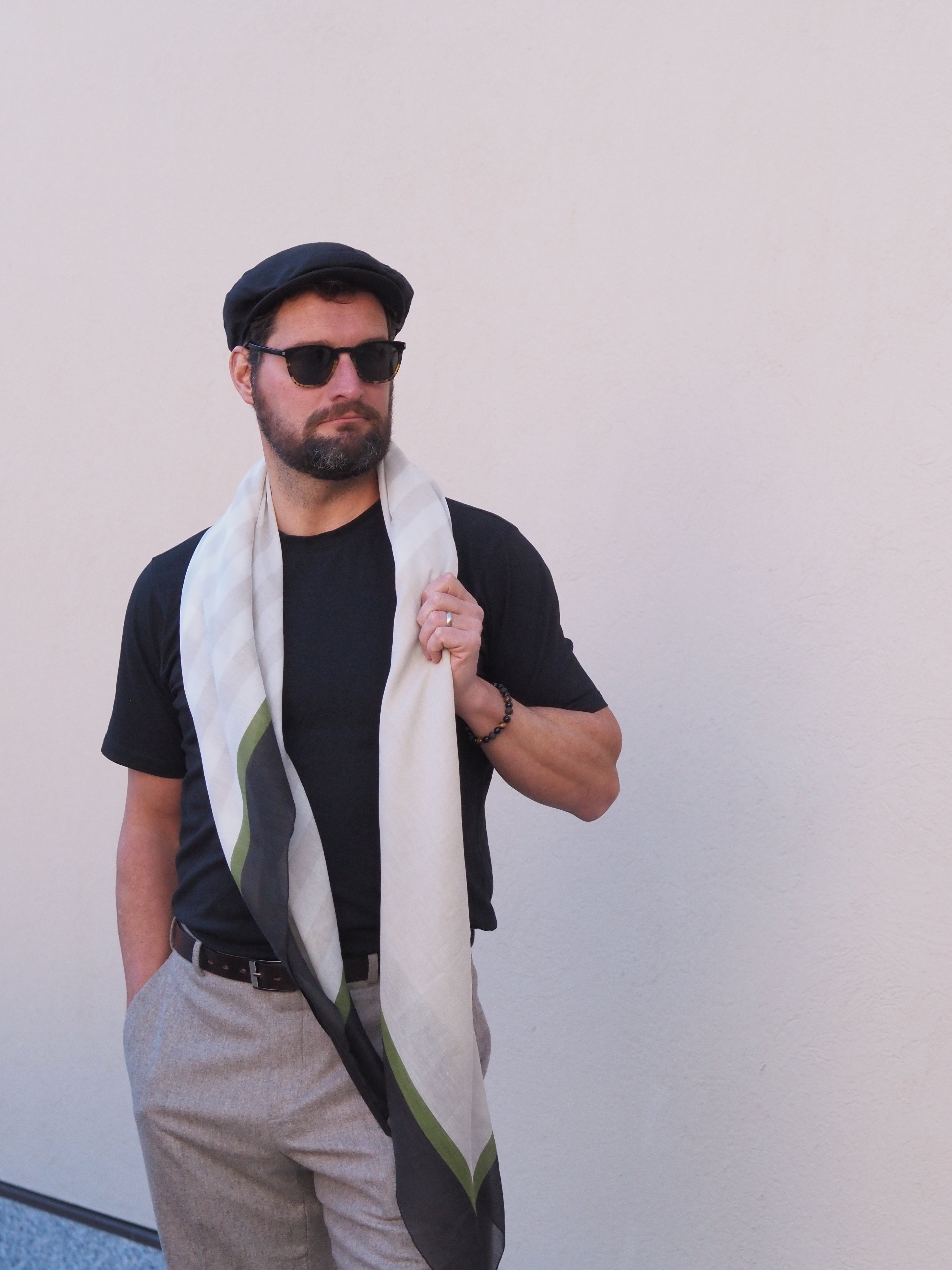 Materiaalin ollessa kevyt, huivi ei tunnu tukalalle kaulalla, vaikka sen pyöräyttäisi useaankin kertaan kaulan ympäri. Suuri unisex shaali sopii niin poplarin, farkkutakin, kuin nahkatakinkin kanssa tai T-paidan tai neuleen asusteeksi. Huivin voi taitella eri tavoin joko kulmista vastakkain, jolloin huivi saa volyymia ja näyttävyyttä tai reunat vastakkain, jolloin huivista saa pienemmän ja se mahtuu esimerkiksi takin kauluksen sisään.