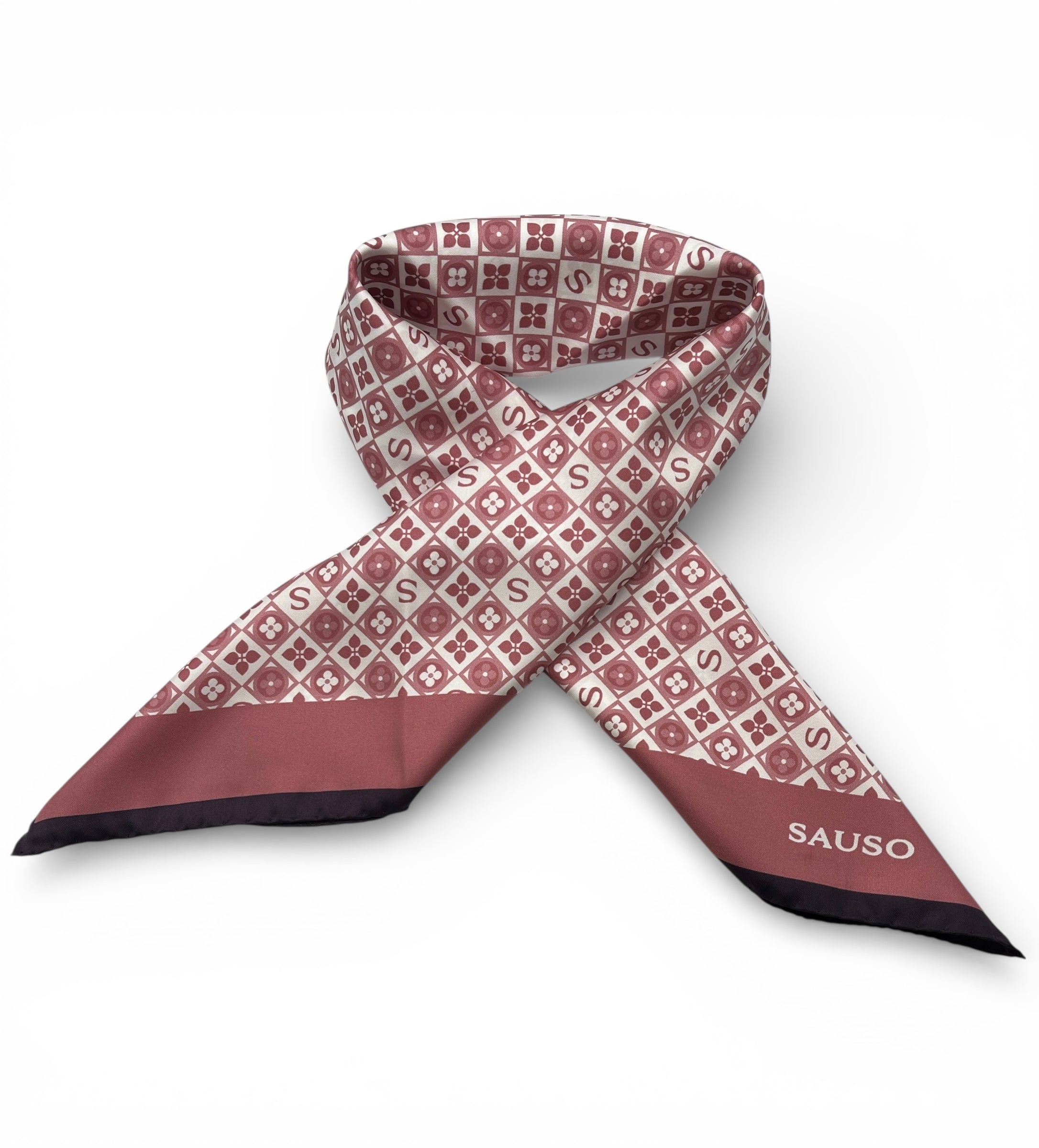 - Klassinen silkkihuivi, jossa hienovarainen kuviointi.