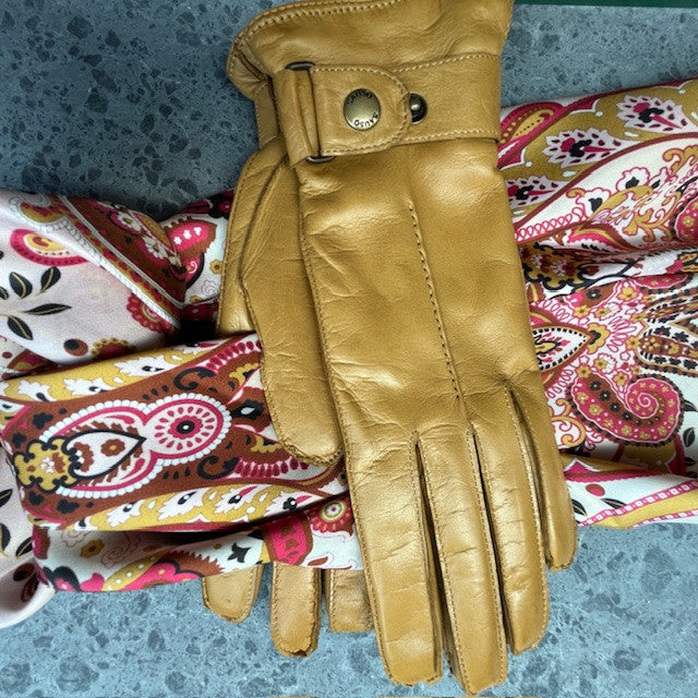 Alma on vuodesta toiseen yksi suosituimmista käsineistämme. Vastasauma antaa tilaa sormille ja tekee hansikkaista hieman sporttisemmat. Vuori on kasmiirin ja villan sekoitetta. Ranteessa on painonapilla kiinnitettävä ja säädettävä vyö. Ranneosa on tiivis, pitää viiman ja kylmän loitolla ja toimii hyvin tiukempienkin takkien hihansuiden kanssa.  Hiekan väristen käsineiden kanssa sopivat esimerkiksi Columba huivin gold väri tai Gaia huivin red/gold.